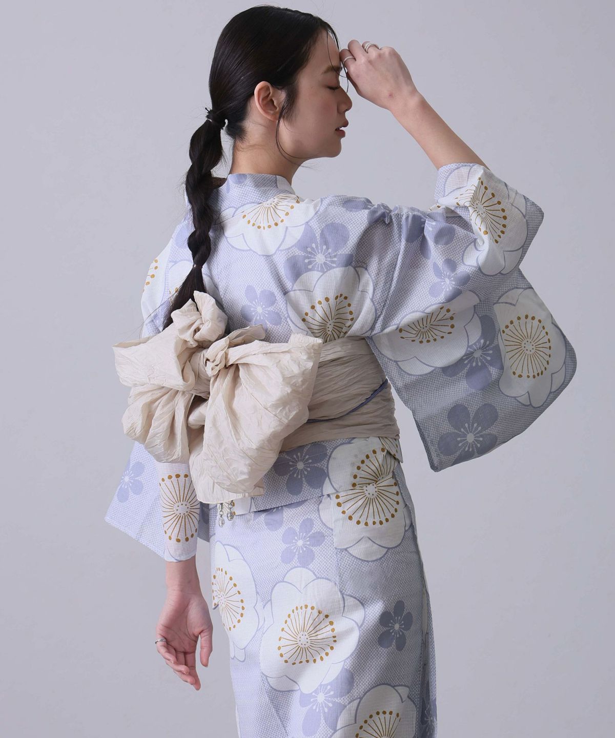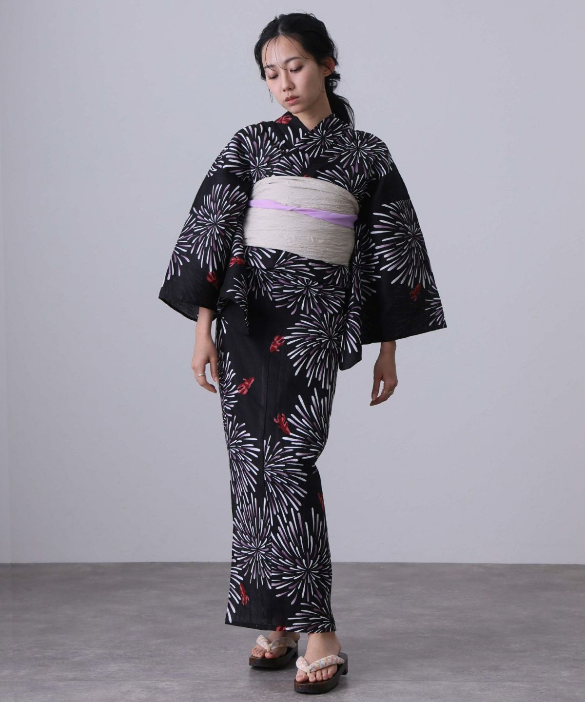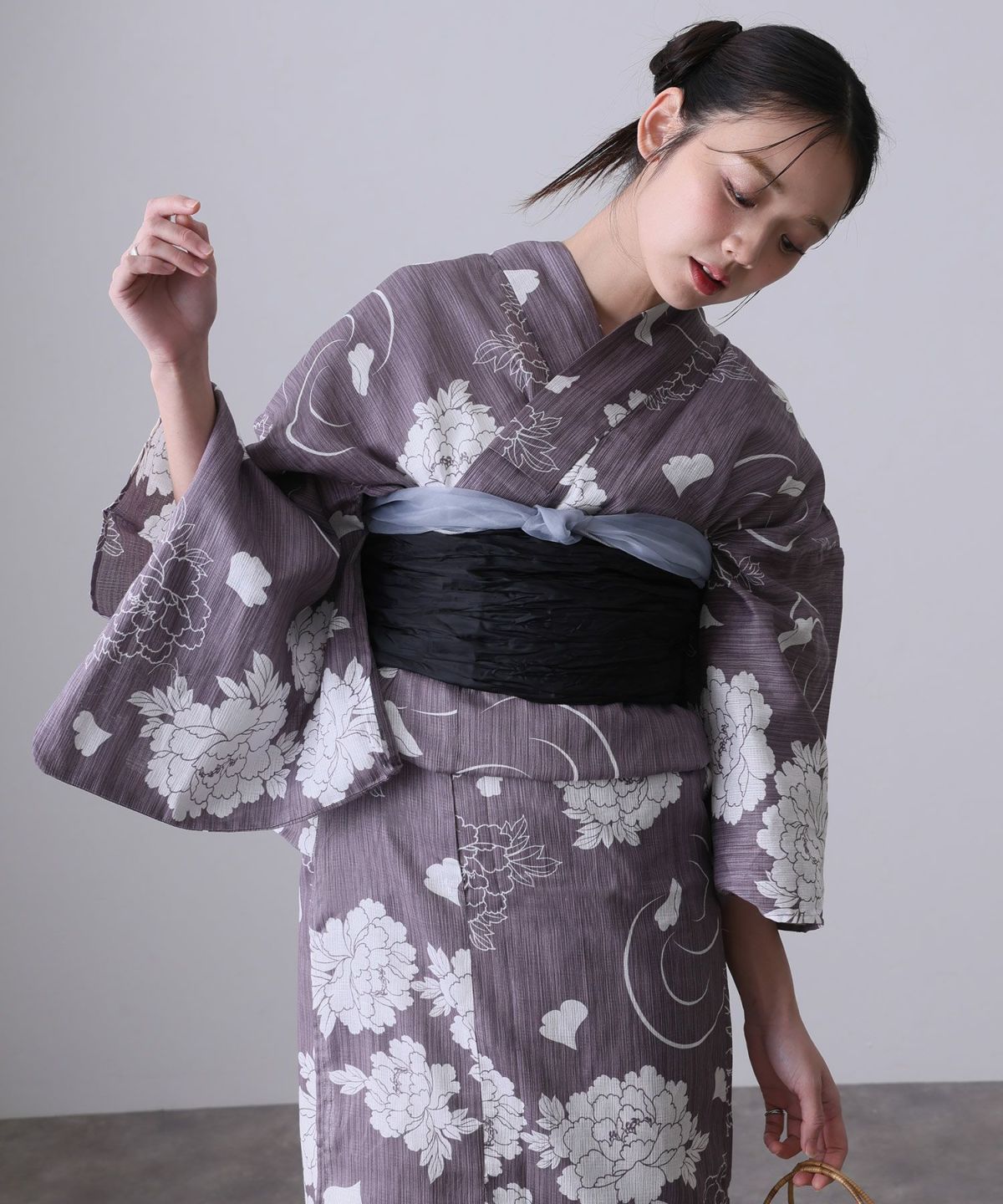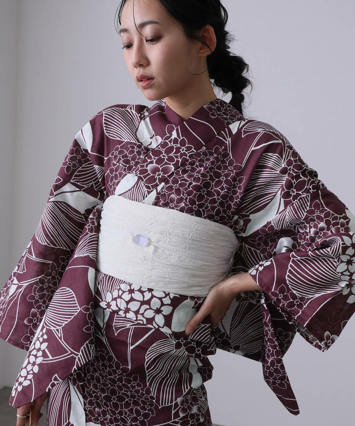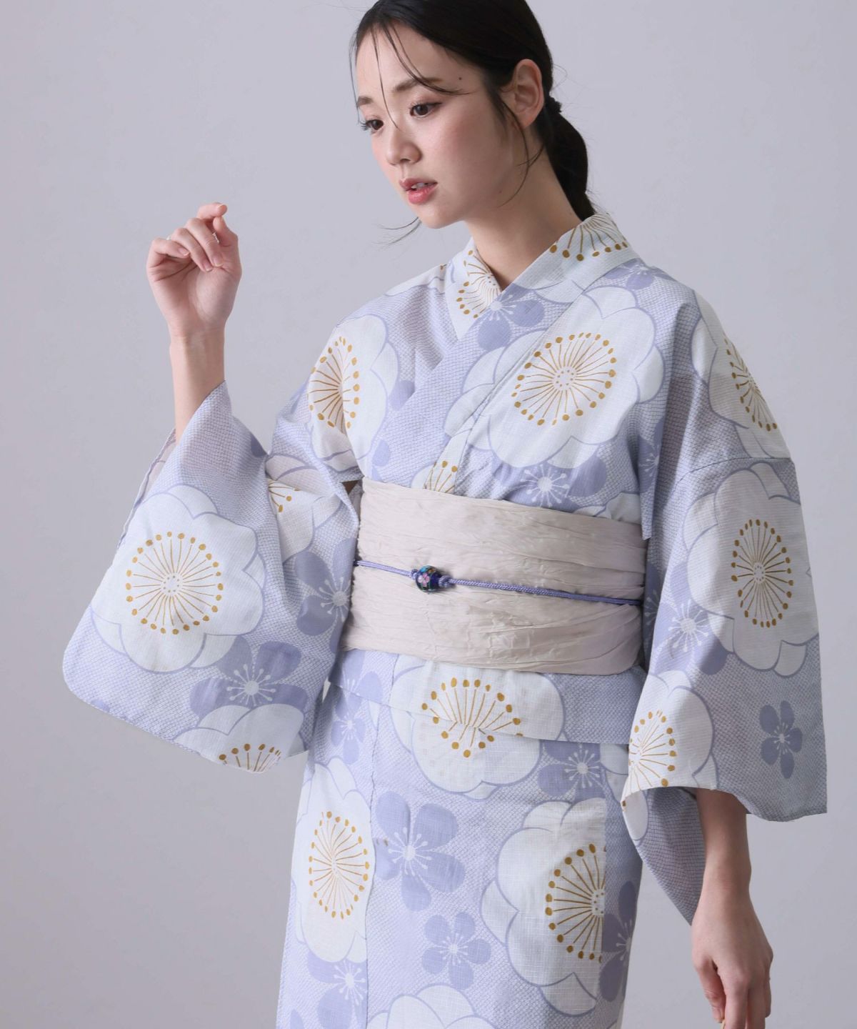 今年のトレンドカラーとしても注目の「紫」。そんな紫の浴衣は、甘すぎず、クールすぎない、絶妙な「大人かわいい」スタイルを叶えてくれる優秀アイテムです。特に人気なのが、淡いラベンダーやくすみカラーの紫。ふんわりとした優しい色合いに、小花柄やレースのデザインが加われば、透明感あふれるフェミニンな印象に仕上がります。 ピンクやクリーム色の帯を合わせればとことん可愛く、白系の帯なら爽やかで清楚な雰囲気に。また、レトロモダンな幾何学模様や大きめの花柄も、紫なら派手になりすぎず、おしゃれに着こなせます。帯締めや髪飾りにリボンモチーフを取り入れるのもおすすめ。みんなが着ている定番カラーもいいけれど、今年はトレンド感と個性を両立できる紫の浴衣で、一歩先行く夏のおしゃれを楽しんで。