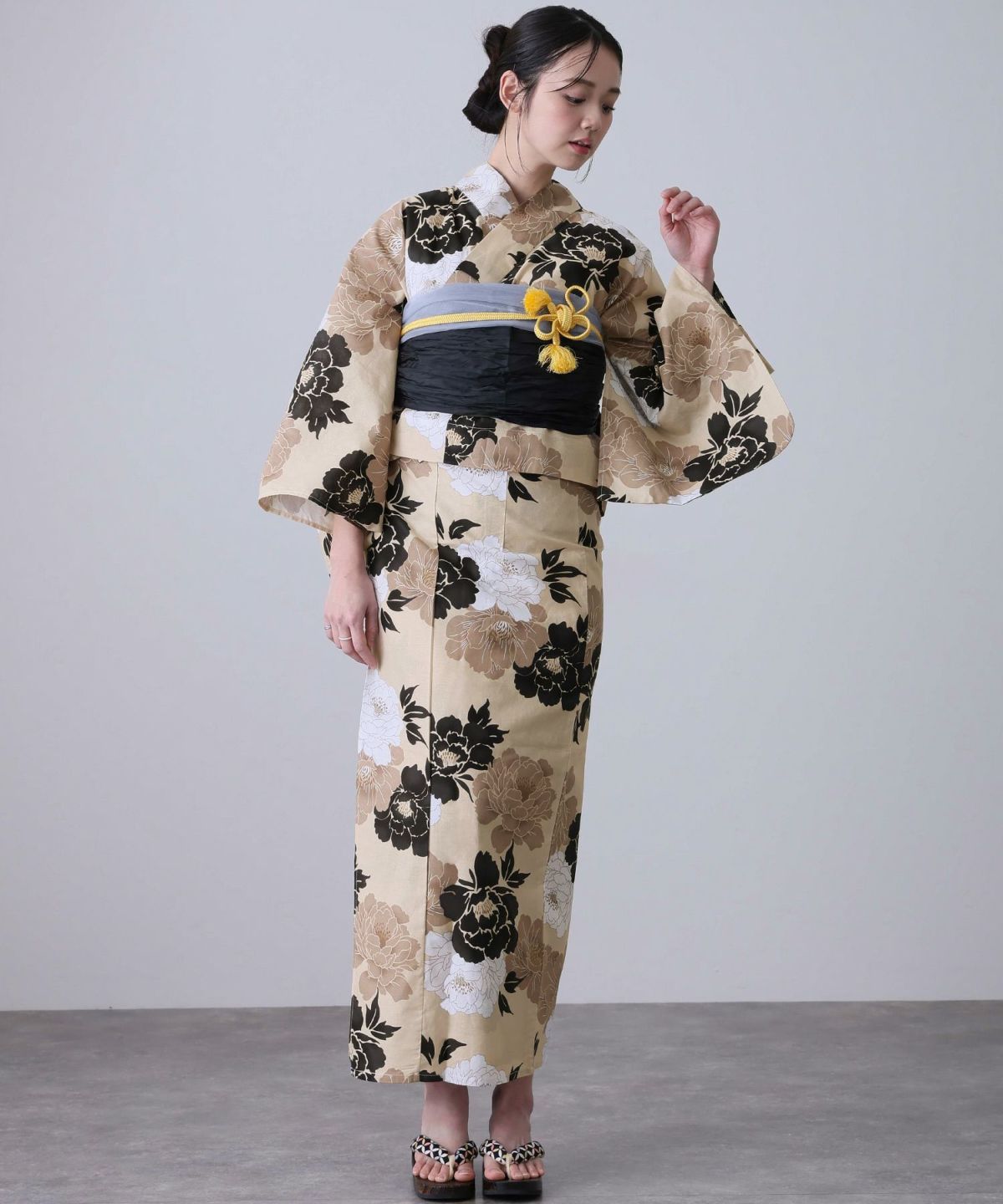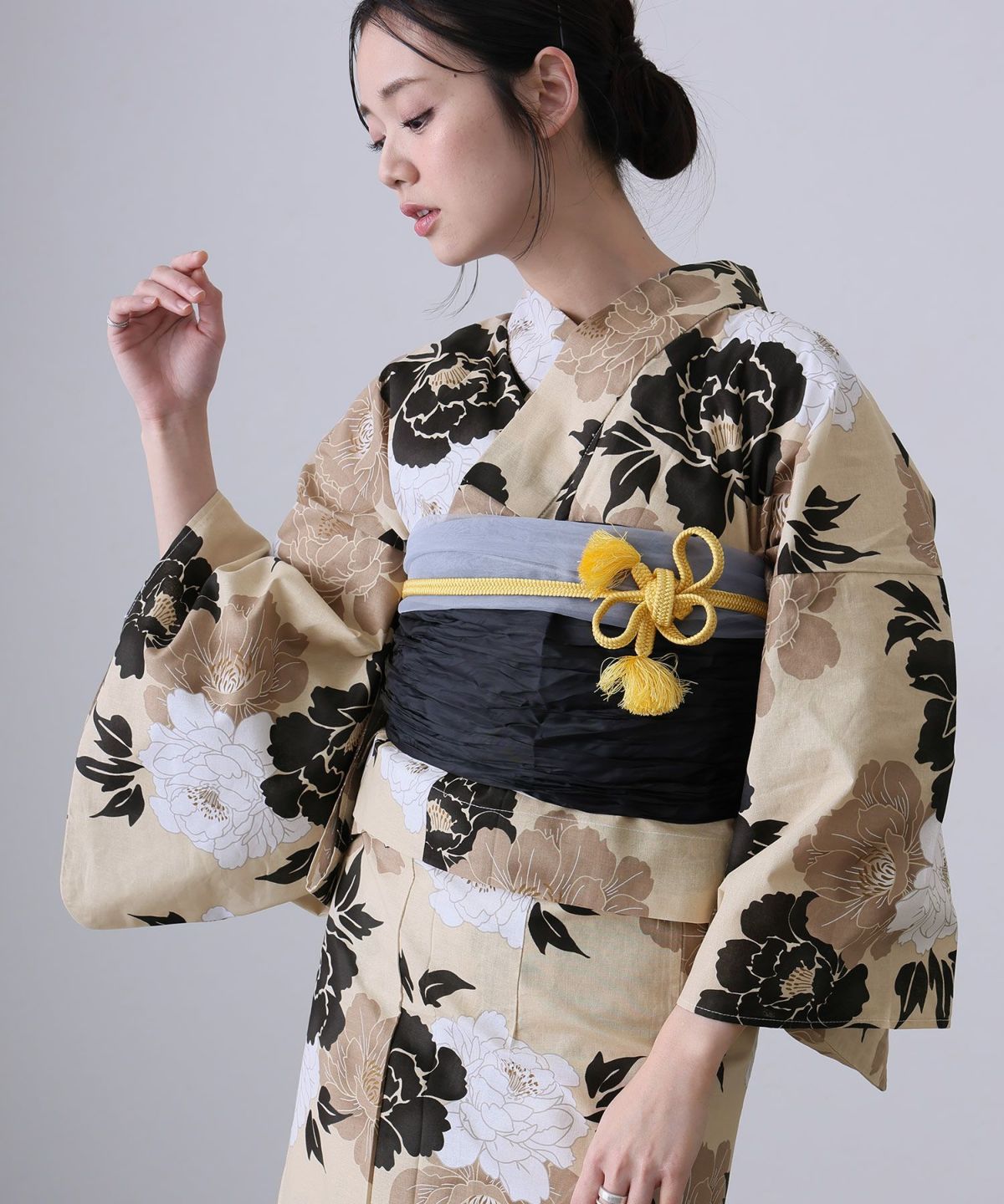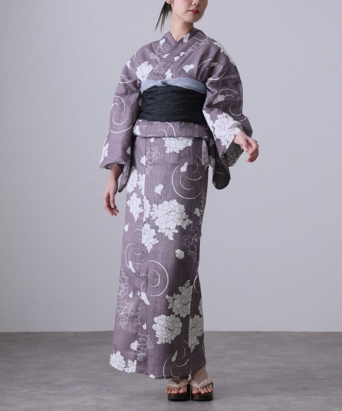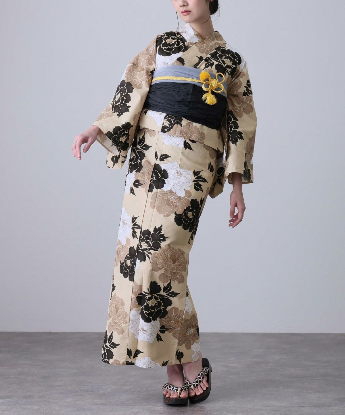 華のある牡丹咲く 凛として咲く牡丹 浴衣4点セット(半巾帯)