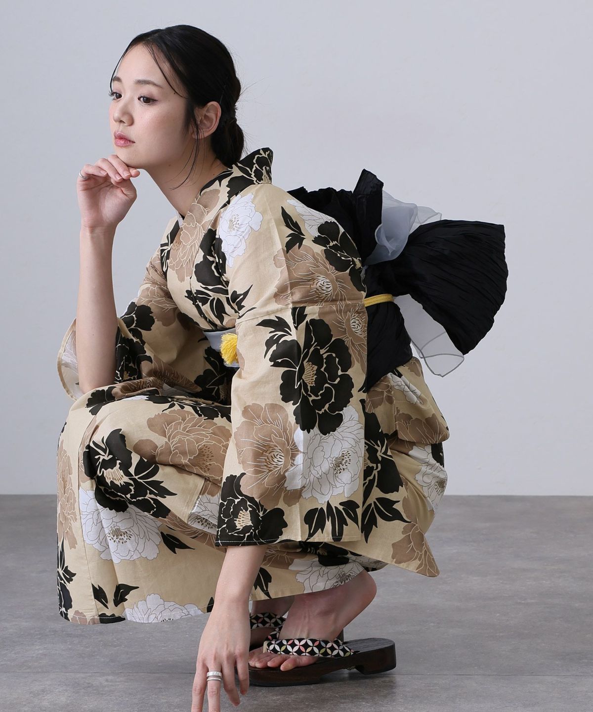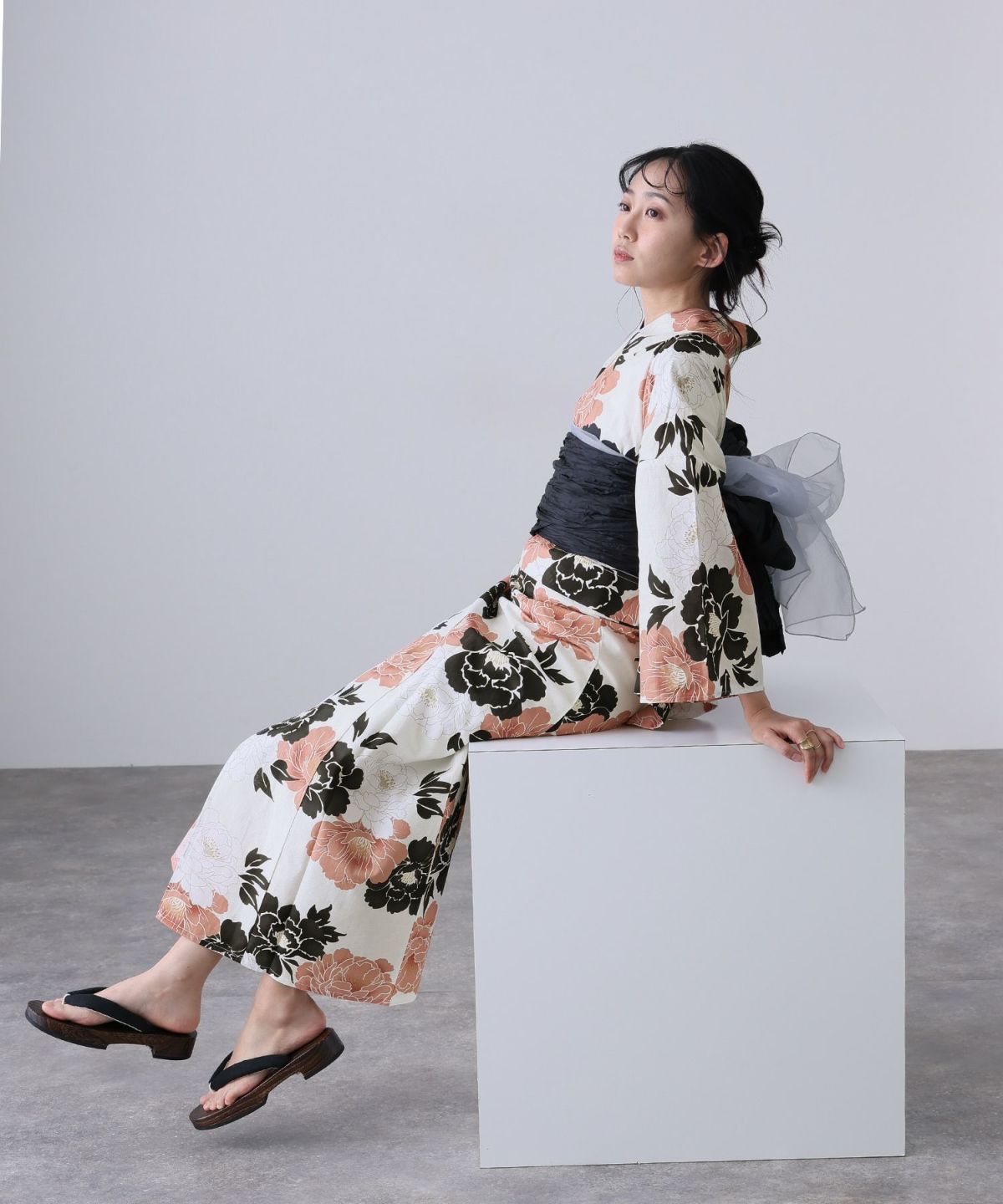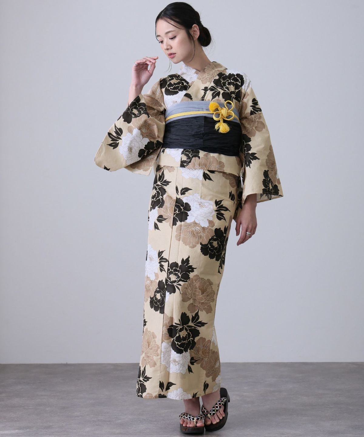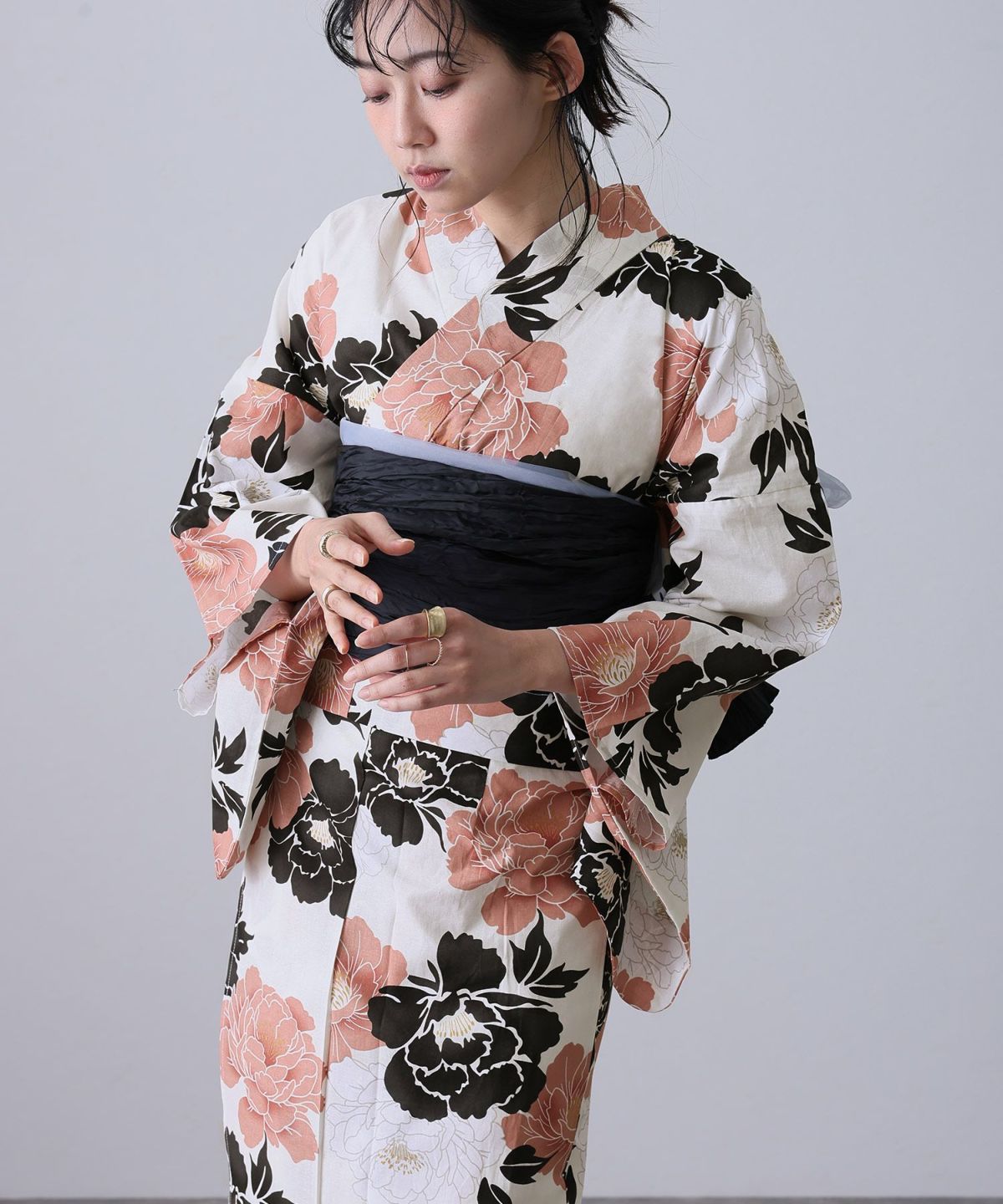 華のある牡丹咲く 凛として咲く牡丹 浴衣4点セット(半巾帯)