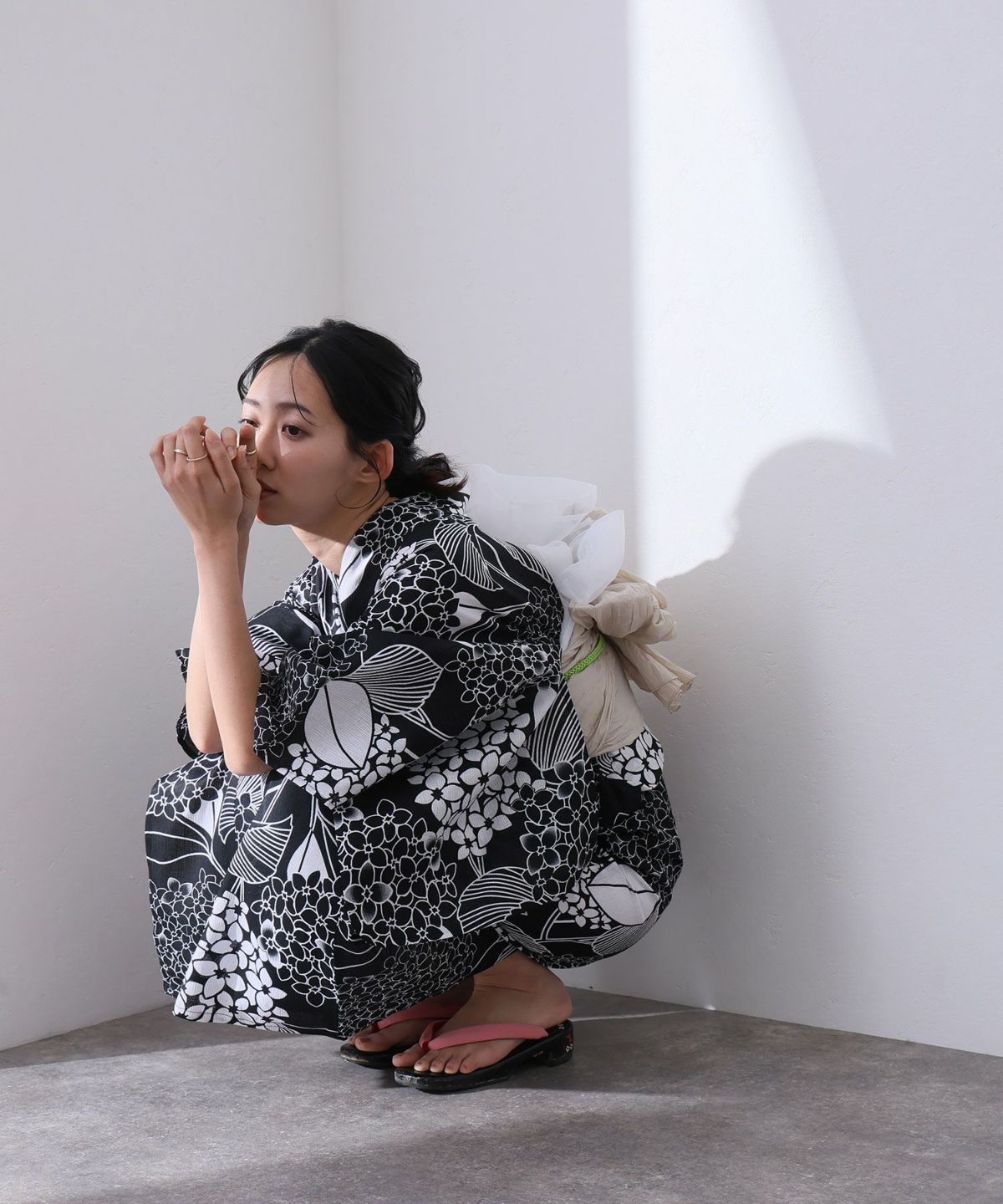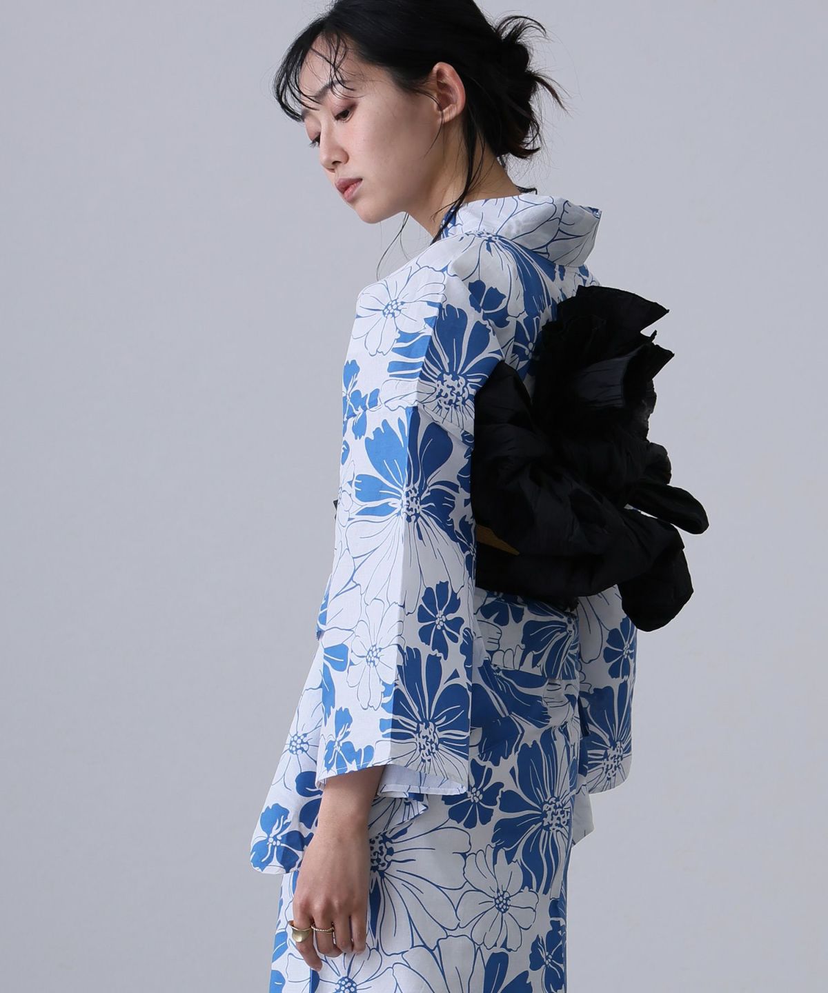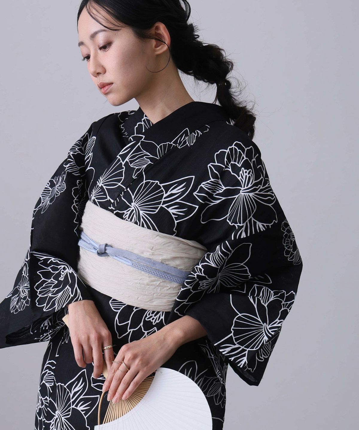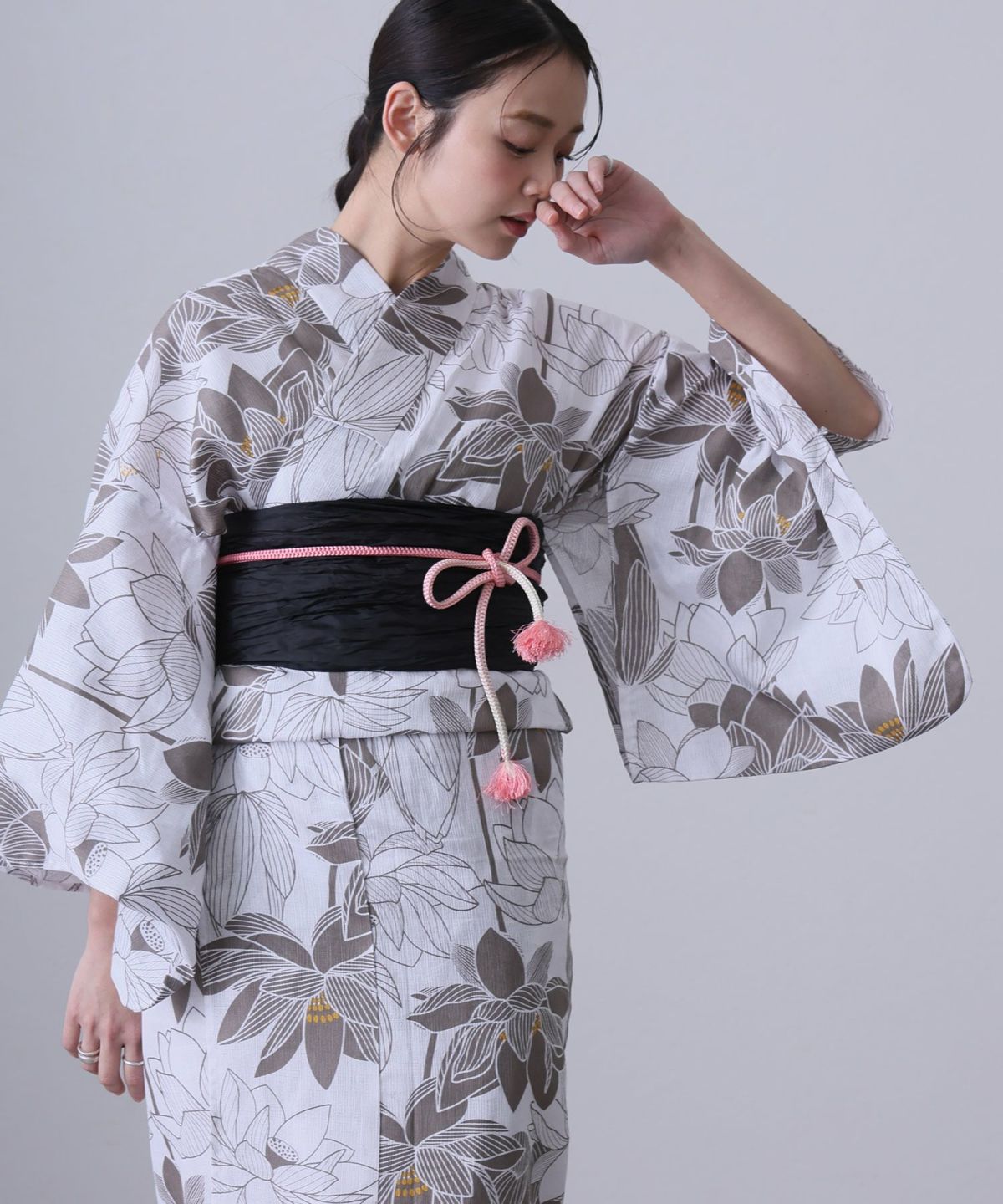 黒系の浴衣と聞くと、少しクールで大人っぽい印象を持たれがちですが、実はデザインや合わせ方次第で、とっても可愛く着こなせる万能カラーです。 特に30代女性には、シンプルな中に甘さや華やかさをプラスした「大人かわいい」コーディネートがよく似合います。例えば、黒地に小花柄が散りばめられた浴衣は、程よい可愛らしさがありつつも落ち着いた印象。ピンクや白、ベージュ系の帯を合わせることで、やさしい雰囲気に仕上がります。 また、金魚や桜、朝顔など、季節感のあるモチーフを取り入れた黒の浴衣は、夏らしさも出せて写真映えも◎です。レースやリボンがさりげなく使われたデザインも人気で、甘すぎず大人の可愛さを引き出してくれます。帯に少し光沢感のある素材を選んだり、ヘアアクセをプラスすることで、より女性らしい印象に。黒は引き締め効果もあるので、スタイルをすっきり見せたい方にもおすすめです。甘くなりすぎず、それでいてちゃんと“かわいい”。そんなバランスが取れるのが、黒系浴衣の魅力です。この夏は、大人の魅力を残しつつ、ほんのり可愛さを感じる黒の浴衣で、いつもとはちょっと違う自分を楽しんで。