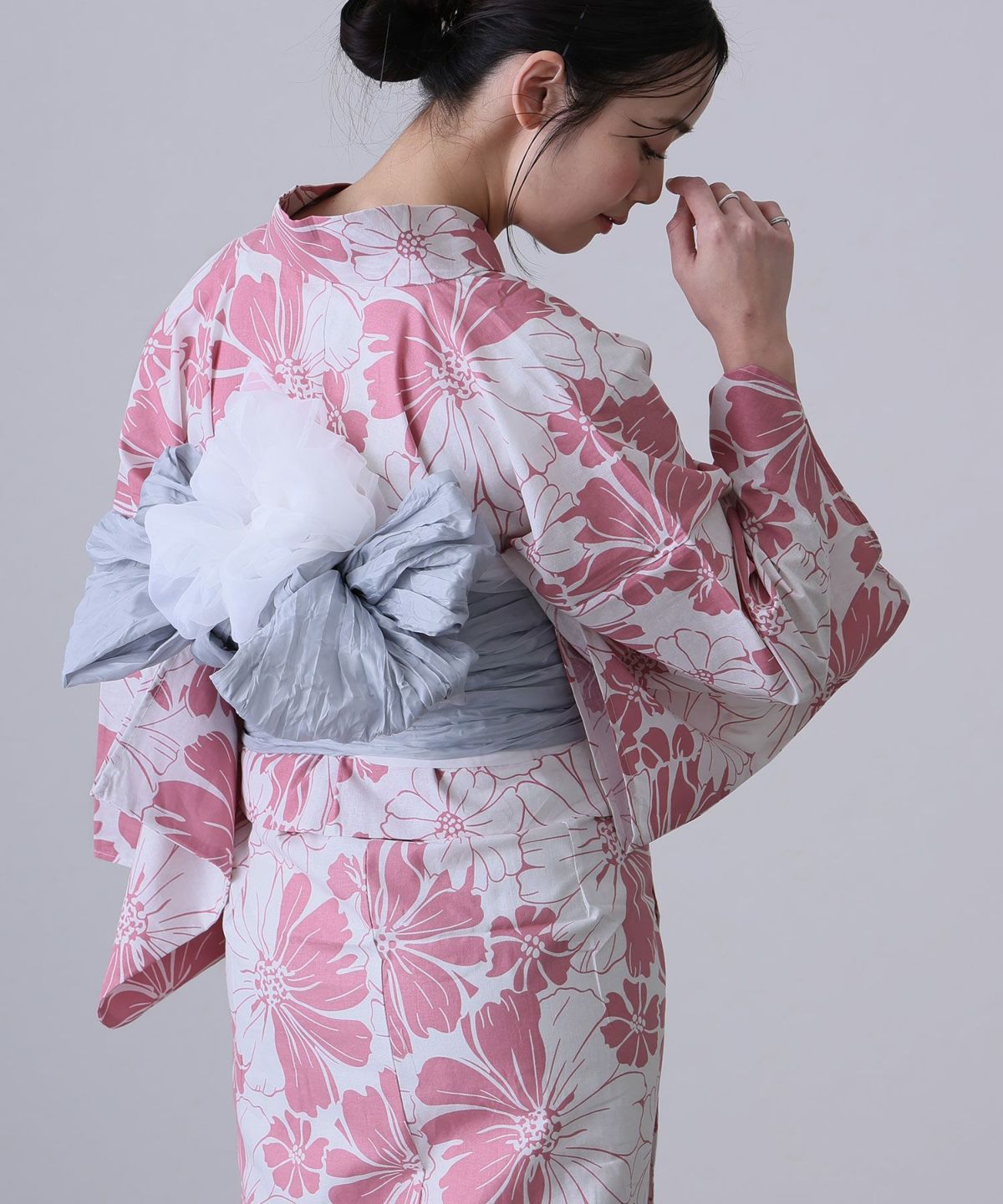 女性らしい優美な魅力を引き立てる「ピンクの浴衣」。身に纏うだけでお顔周りを明るく彩り、晴れやかな印象を演出してくれる特別なカラーです。夏祭りや花火大会など、特別な一日を、より一層華やかに引き立てます。 「ピンクは可愛らしすぎるのでは」と感じる方にも、自信を持っておすすめできるのが近年のデザインです。例えば、肌なじみの良い落ち着いたトーンのピンクや、繊細な古典柄をあしらったものは、甘さを抑えた上品な「大人かわいい」着こなしを叶えます。また、白地にピンクの小花柄や、洗練されたレトロモダンなデザインは、トレンド感がありながらも清楚な雰囲気を演出します。