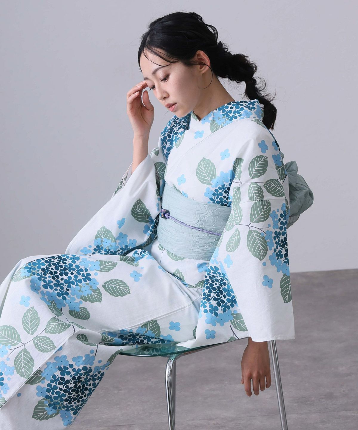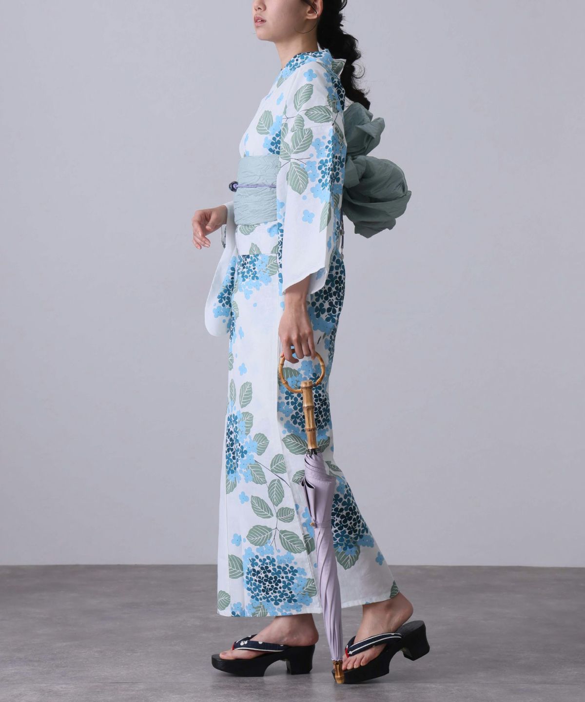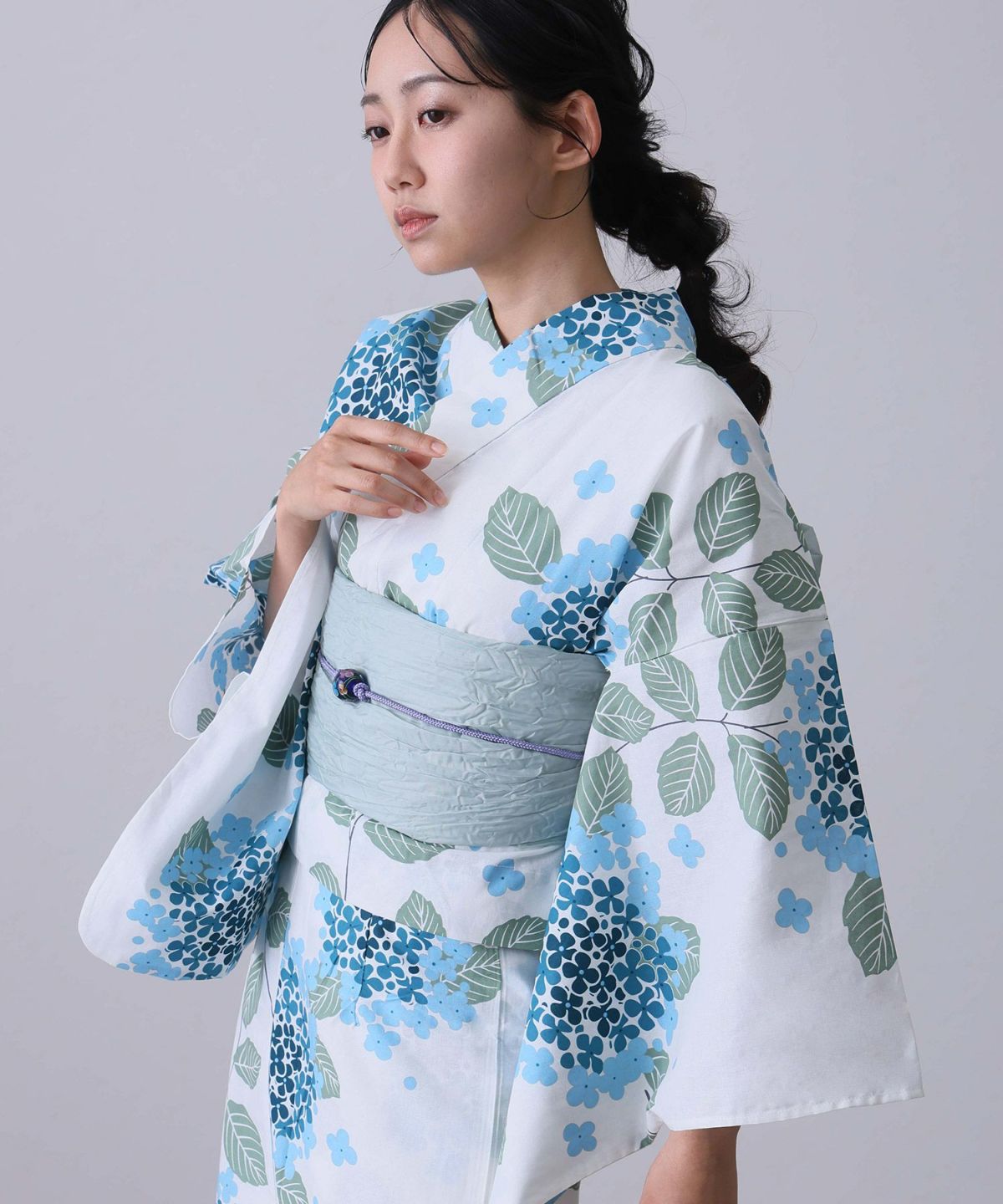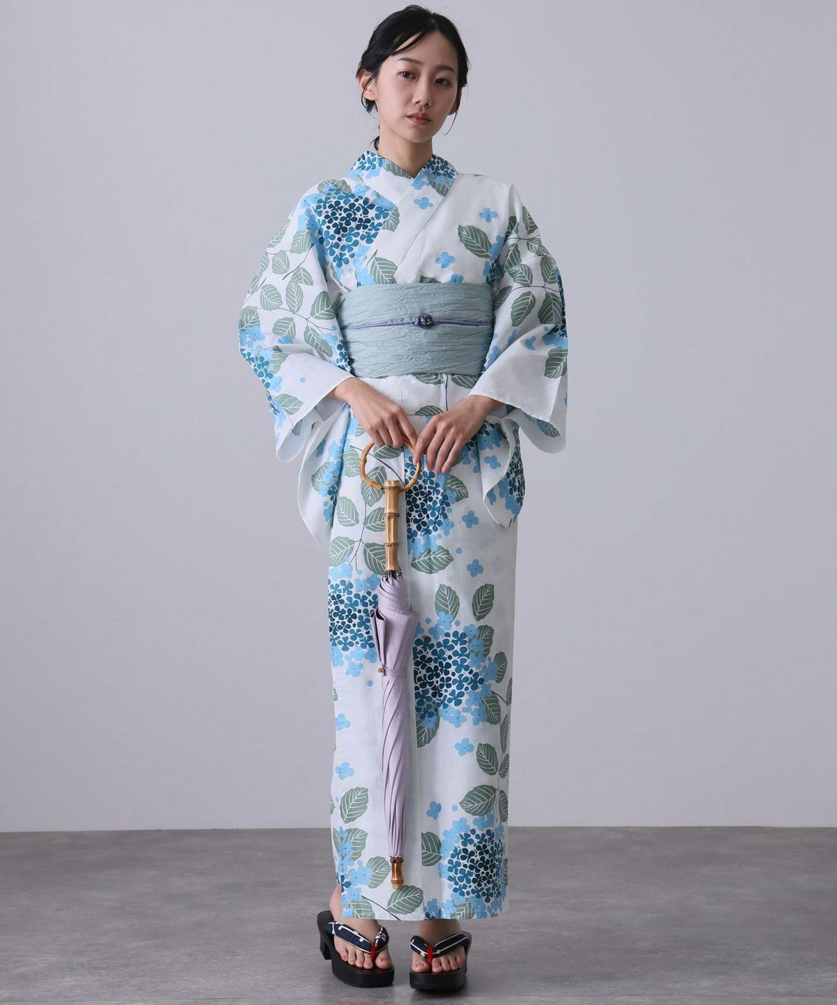 清楚なあじさい柄 あじさい雨模様 浴衣4点セット(半巾帯)