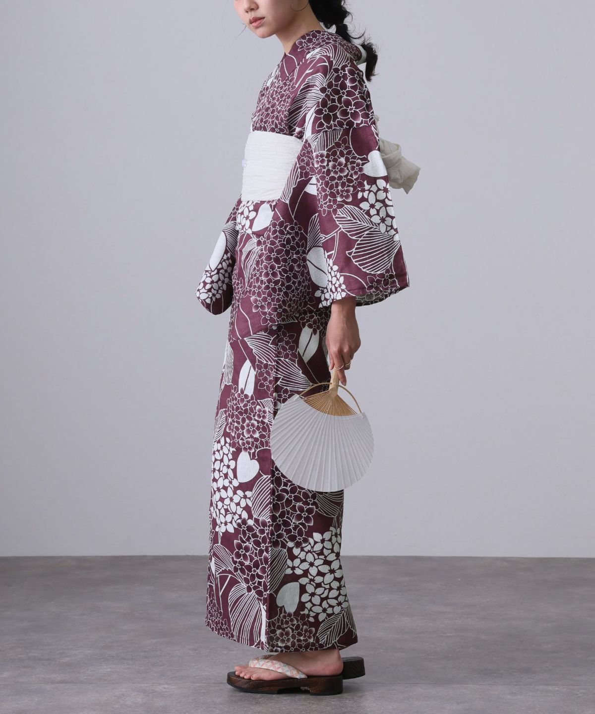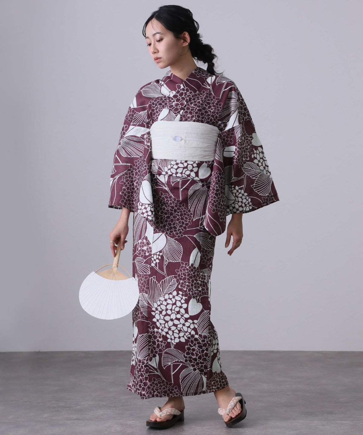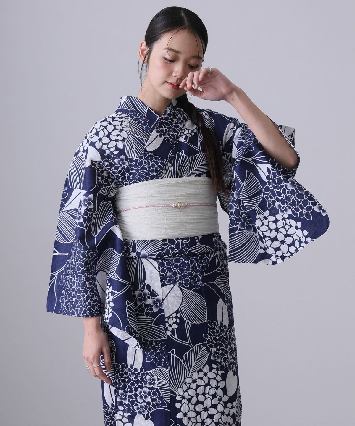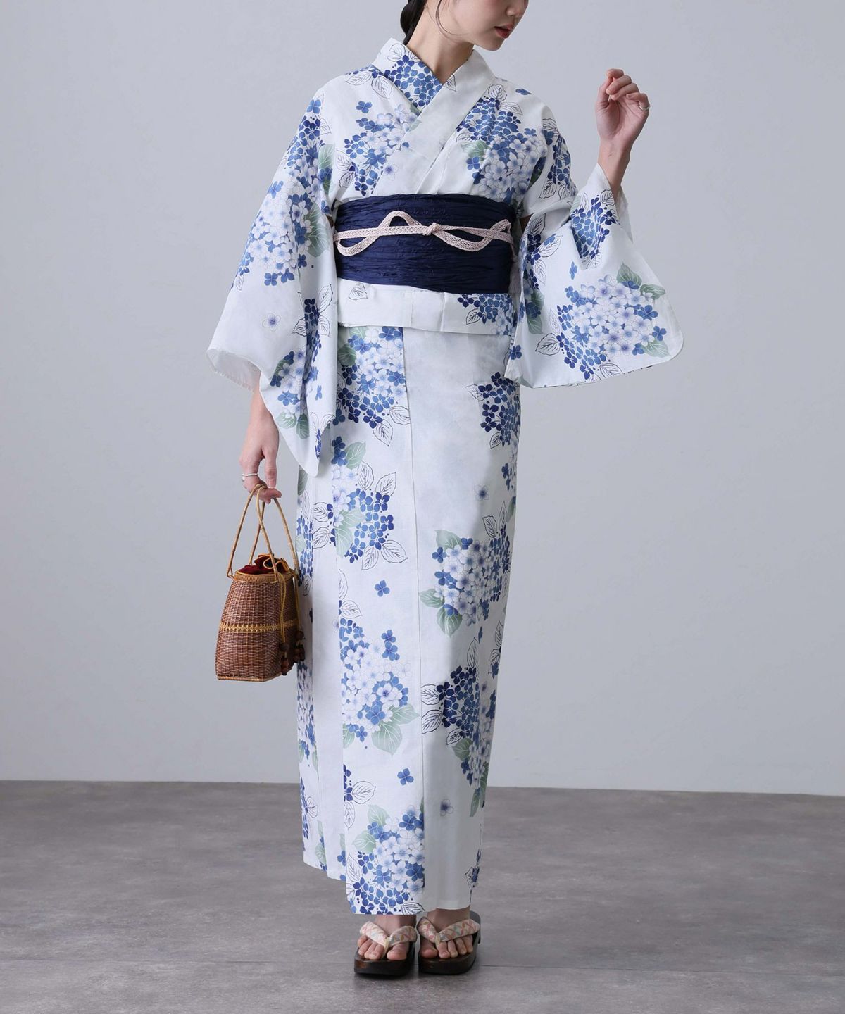 清楚なあじさい柄 あじさい雨模様 浴衣4点セット(半巾帯)
