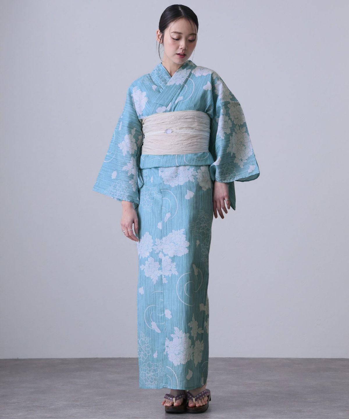 爽やかな淡い色合い 大正浪漫 浴衣4点セット(兵児帯)
