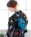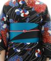 オシャレなターコイズ×黒の帯は、アレンジ自在の半巾帯となっています。