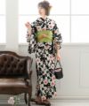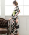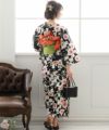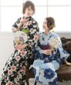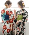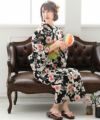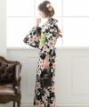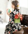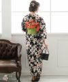 モノトーンと市松に華やかな椿と桜が咲く上品な大人の浴衣です。