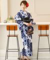 ◆4点セット(浴衣/着付け本/作り帯/下駄:フリーサイズ23cm~25cm)