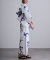 爽やかな白地に、大胆な青椿が咲き誇る浴衣。