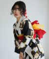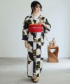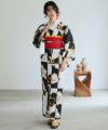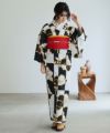 モダン幾何学×牡丹 モダン牡丹 浴衣2点セット(兵児帯)