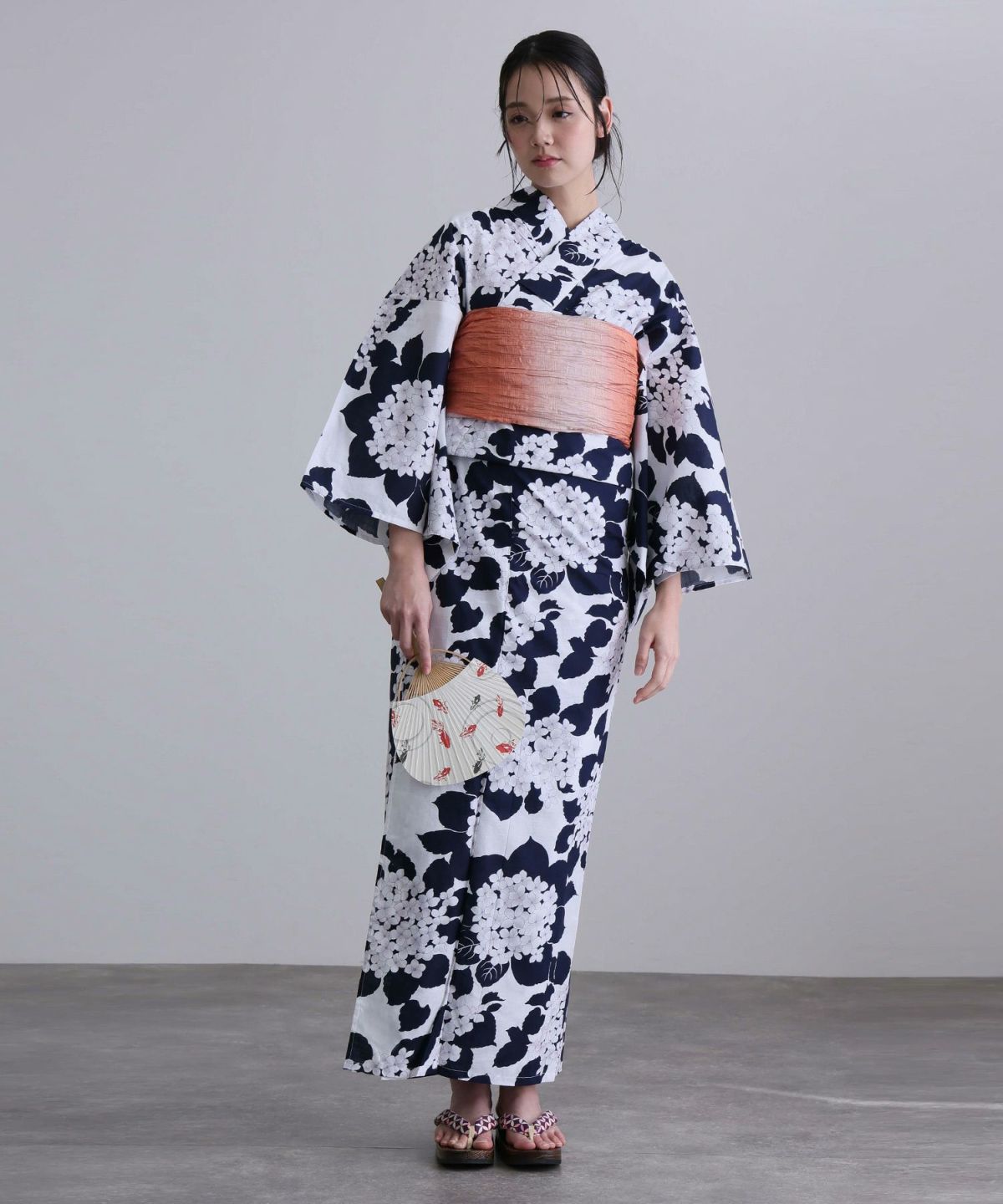 少し深みのあるボルドーやローズレッドを基調とした浴衣は、落ち着きの中に華やかさがあり、洗練された印象を与えてくれます。椿や梅、桔梗などの和柄をあしらったデザインなら、季節感と上品さを両立できます。帯は生成りやくすみピンク、ラベンダーなどを合わせると、トレンド感のある大人かわいいコーディネートに仕上がります。