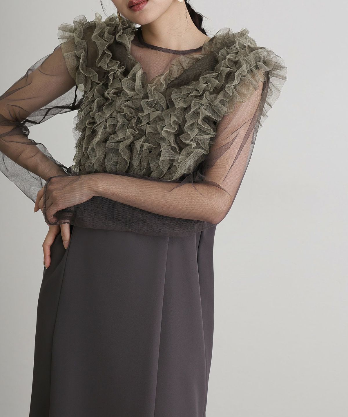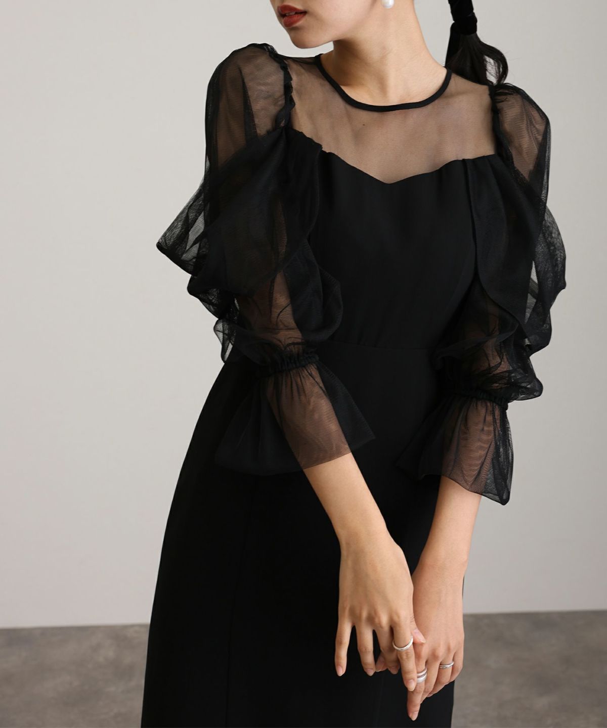 他の画像を見る ほどよいドレープが生み出す立体感あるシルエット シアーラッフルドレス 即日発送 販売価格 ¥ 19,800 税込 会員特別価格 ¥ 18,800 税込 カートに入れる お気に入りに登録する