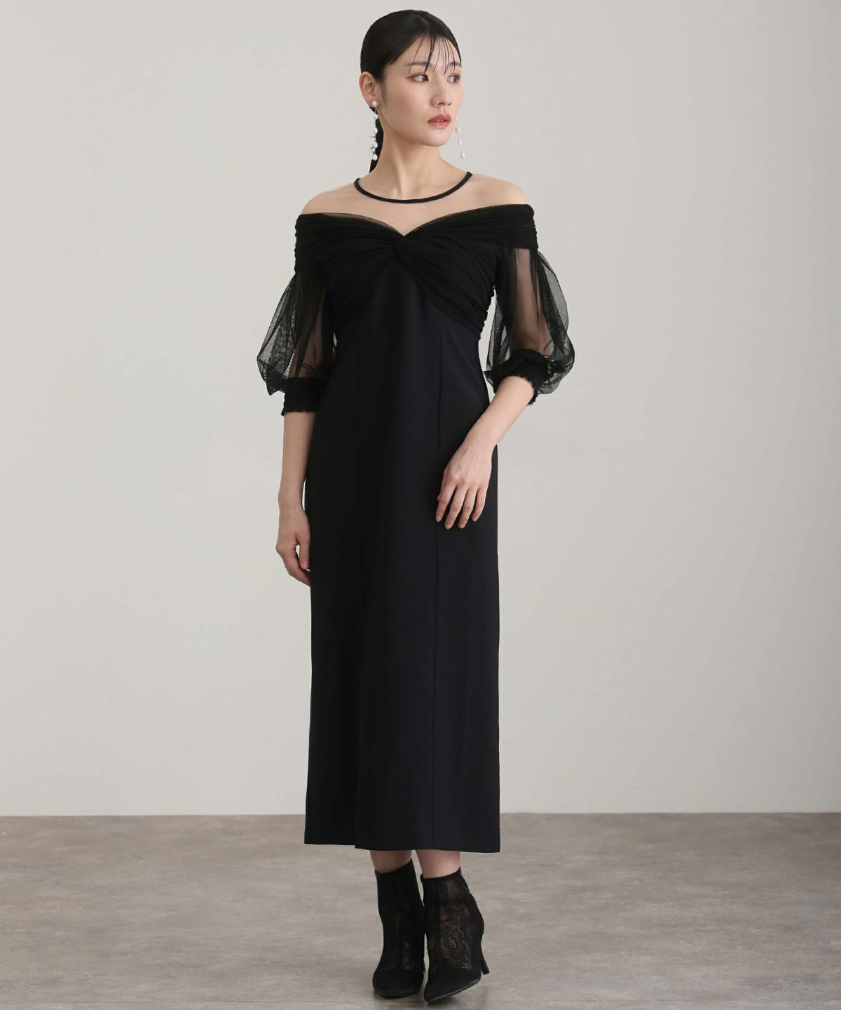 他の画像を見る デコルテから袖にかけての透け感がフェミニンな印象 チュールオフショルダードレス 即日発送 販売価格 ¥ 15,800 税込 会員特別価格 ¥ 13,500 税込 カートに入れる お気に入りに登録する