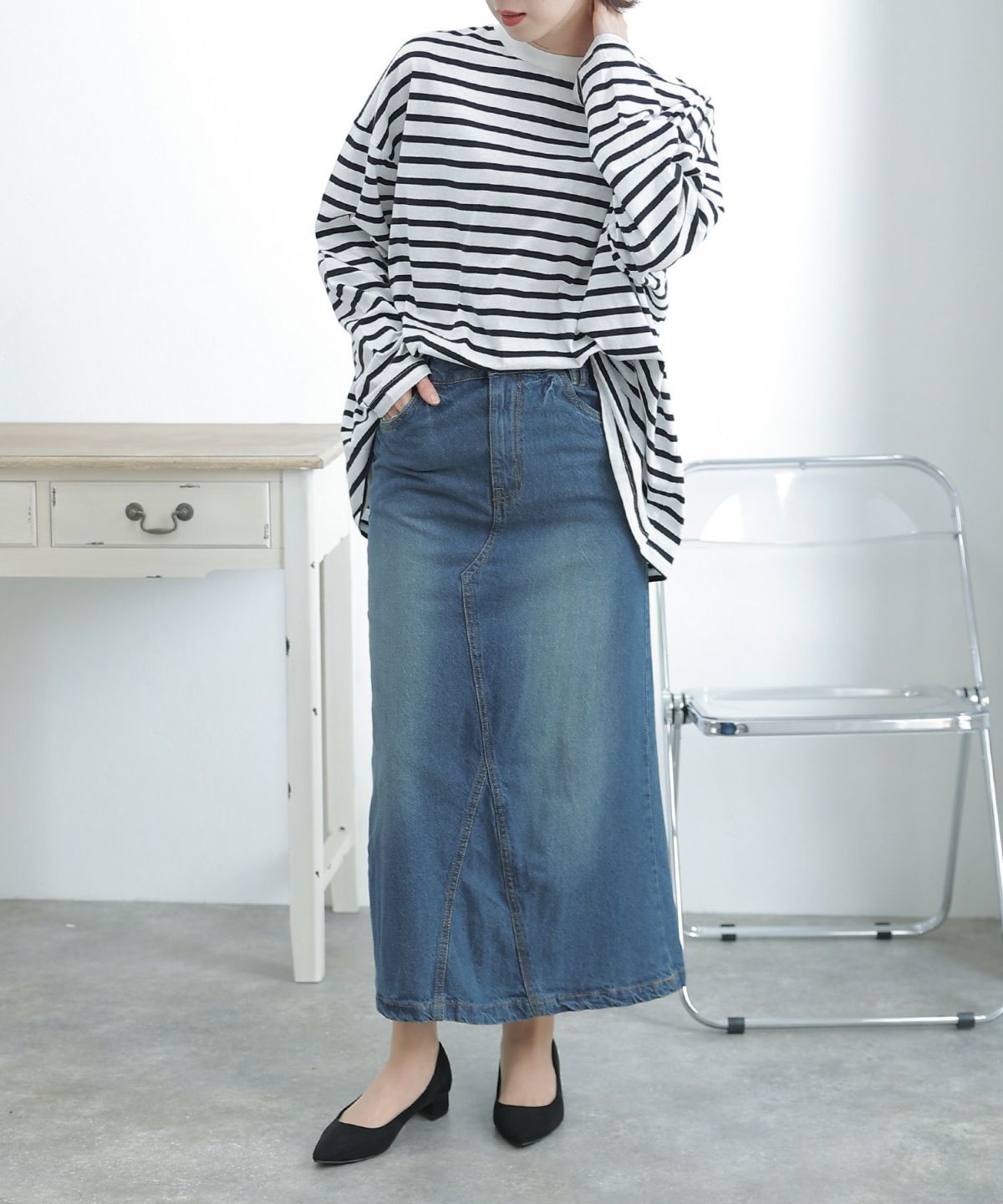 他の画像を見る シルエットがきれいで大人女性にぴったり セミタイトデニムマキシスカート 大きいサイズ 1~3営業日以内発送 販売価格 ¥ 7,900 税込 会員特別価格 ¥ 7,400 税込 カートに入れる お気に入りに登録する