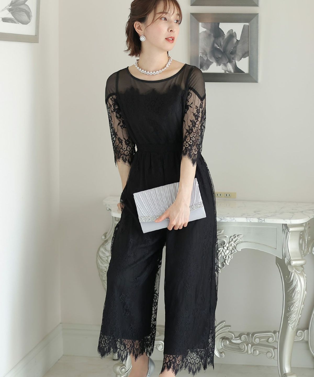 他の画像を見る 袖と裾に施されたスカラップレースで華やかな雰囲気に フラワーレースパンツドレス 即日発送 SALE 定価 ¥ 15,800 販売価格 ¥ 7,260 税込 カートに入れる お気に入りに登録する