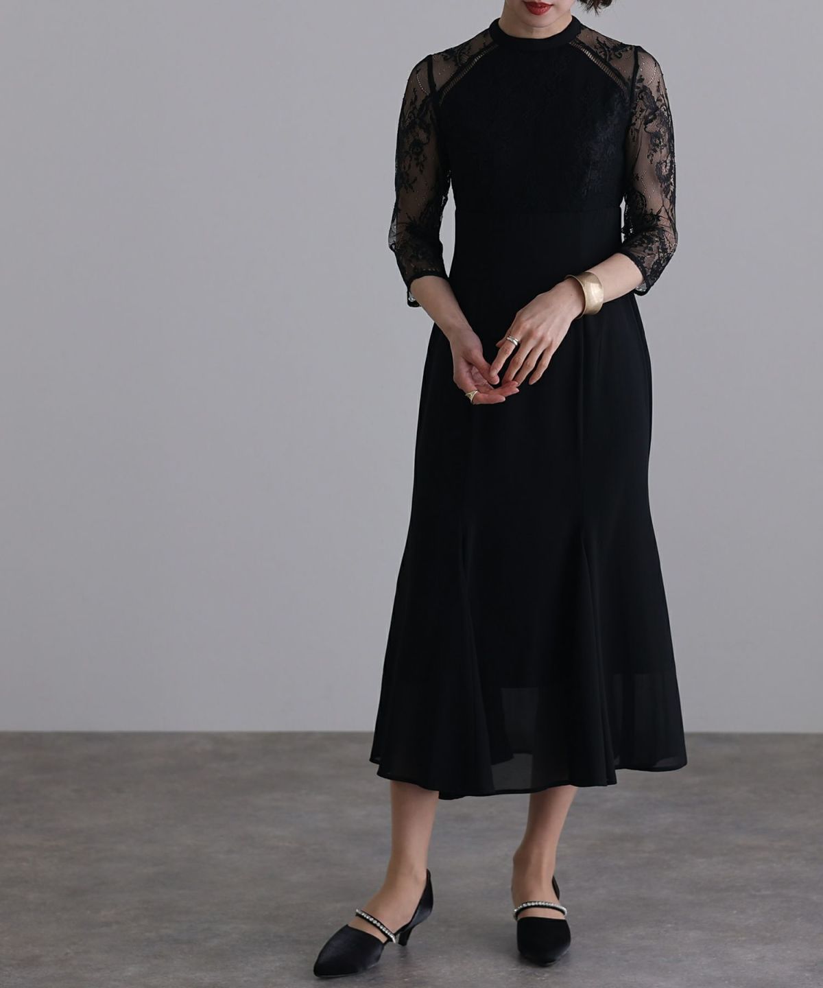 他の画像を見る 袖の程よい透け感で上品な印象に レースハイウエスト切替えマーメイドワンピース 即日発送 SALE 定価 ¥ 14,799 販売価格 ¥ 7,980 税込 カートに入れる お気に入りに登録する