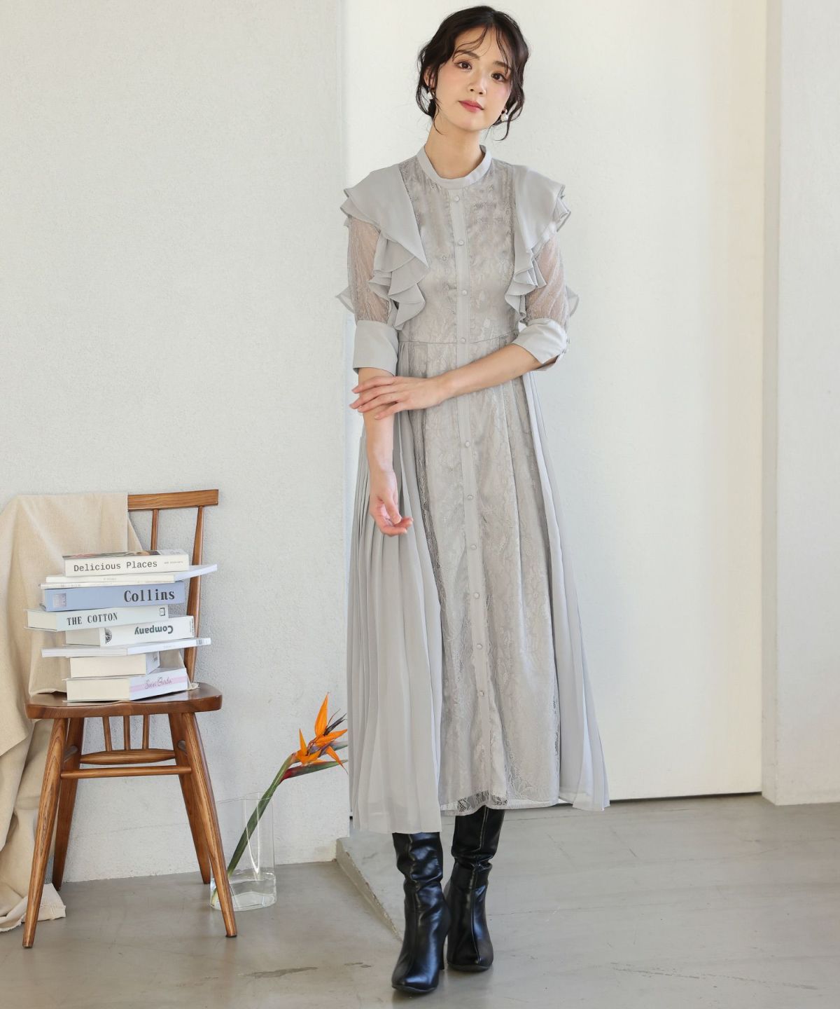 他の画像を見る 胸元の立体的なフリルがフェミニンな印象に レース切替クラシカルドレス 1~3営業日以内発送 販売価格 ¥ 18,800 税込 会員特別価格 ¥ 17,800 税込 カートに入れる お気に入りに登録する