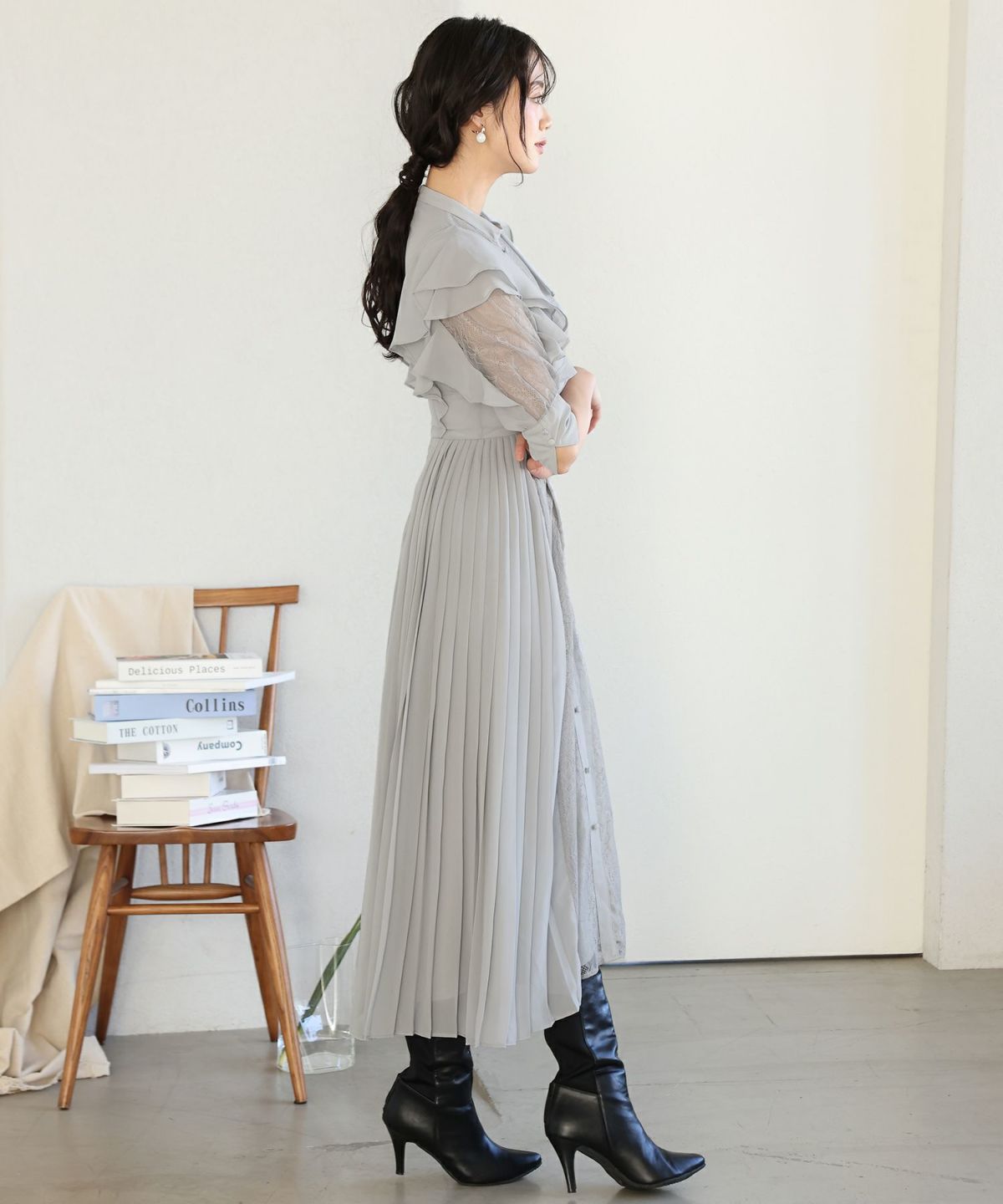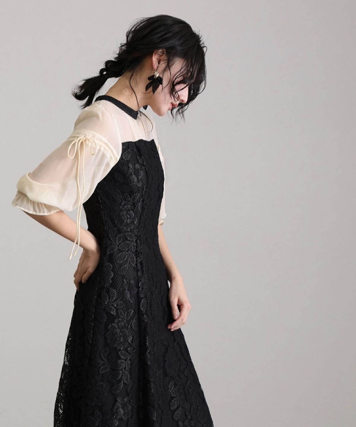 他の画像を見る プリーツ&レースの切り替えデザインで華やかに シアーレースフレアドレス SALE 2~4営業日以内発送 定価 ¥ 20,900 販売価格 ¥ 10,000 税込 カートに入れる お気に入りに登録する