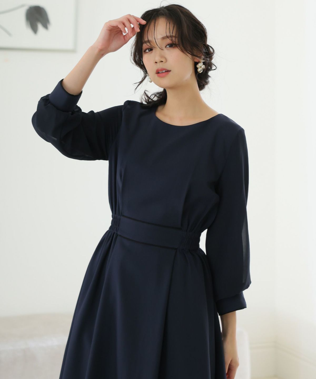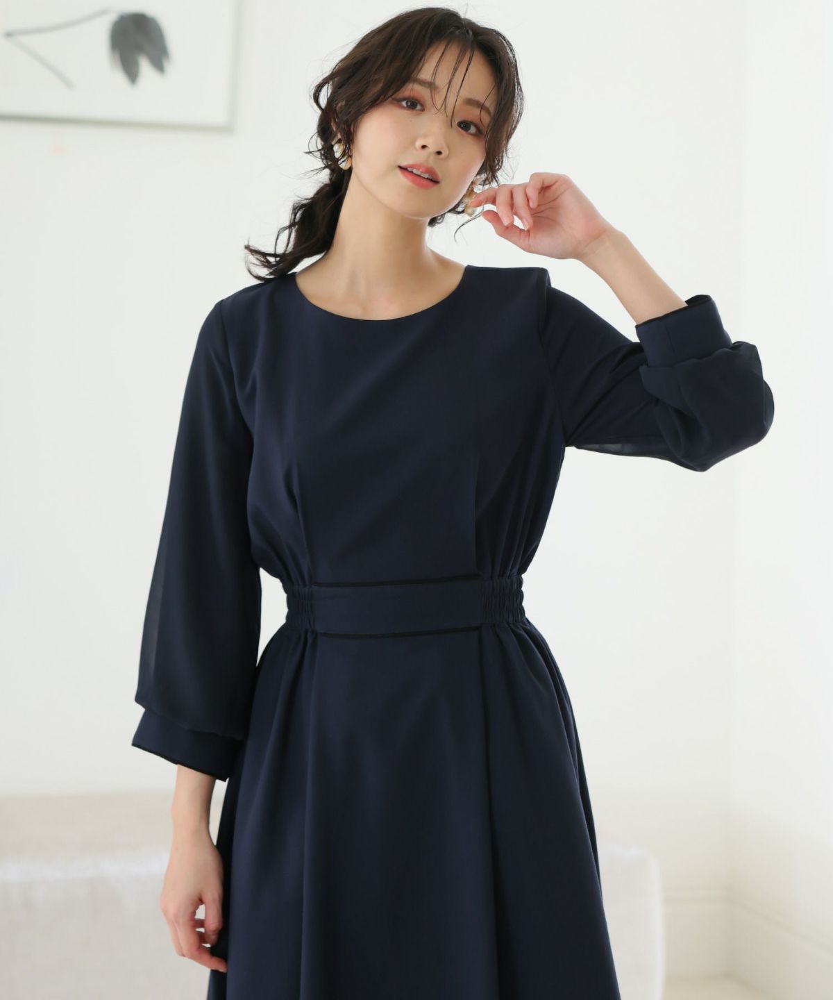 他の画像を見る カフス袖とシフォンの組み合わせが上品 フィット&フレアサイドゴムワンピース 即日発送 SALE 定価 ¥ 16,800 販売価格 ¥ 10,920 税込 カートに入れる お気に入りに登録する