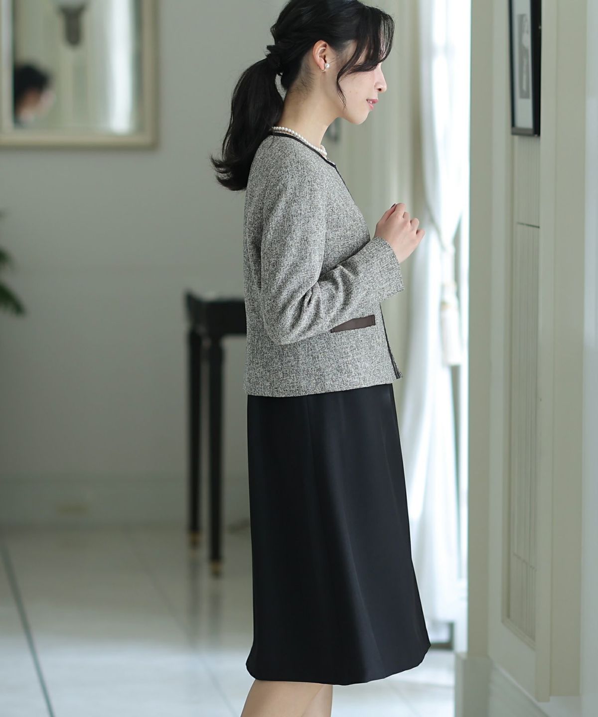 他の画像を見る コンパクトなシルエットが女性らしい印象に ブラックフォーマルジャケットワンピースセット 大きいサイズ 1~3営業日以内発送 販売価格 ¥ 25,800 税込 会員特別価格 ¥ 24,800 税込 カートに入れる お気に入りに登録する