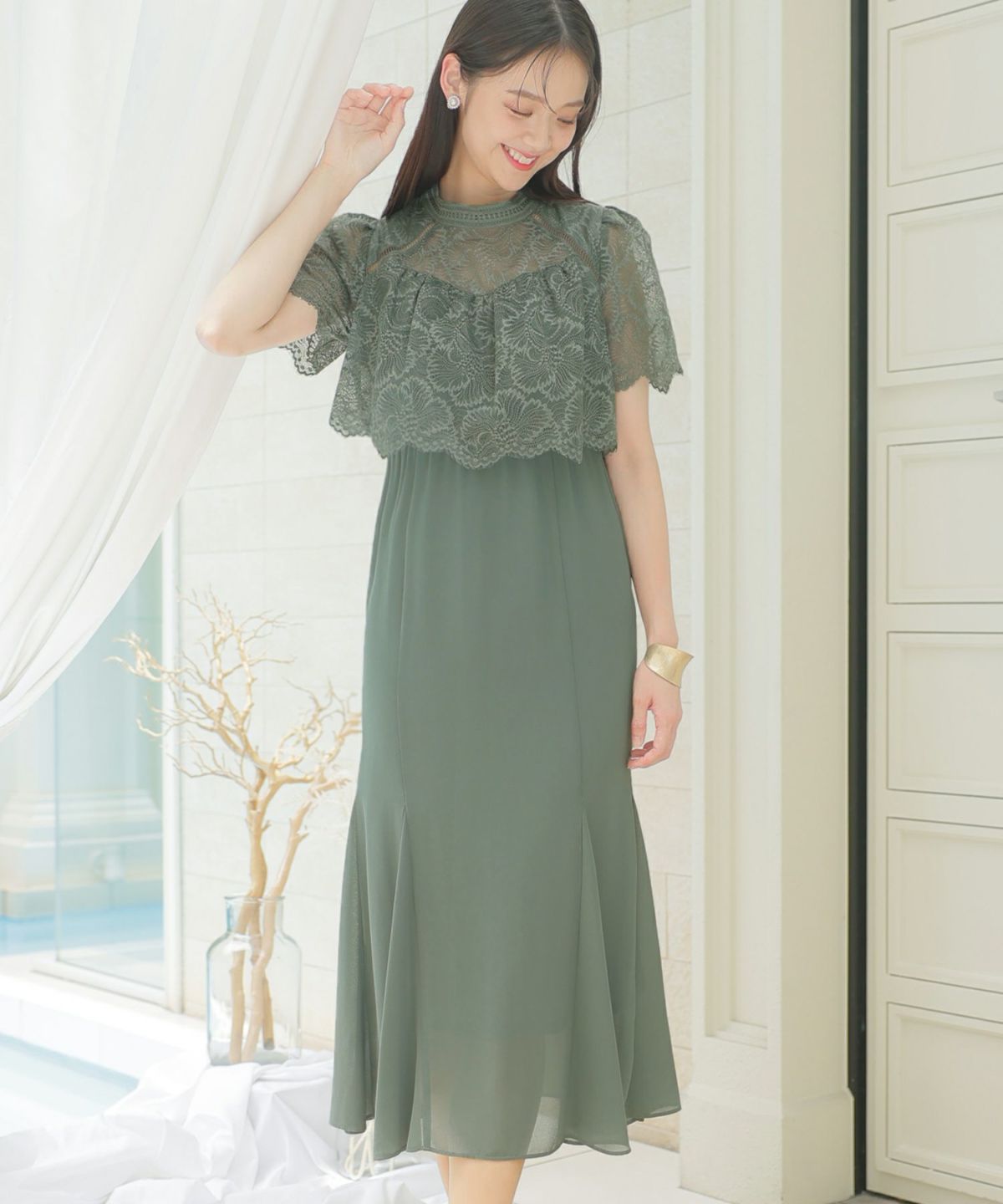 他の画像を見る シフォン部分のマーメイドシルエットは上品で大人っぽい 微配色レース×シフォンマーメイドワンピース 即日発送 販売価格 ¥ 18,700 税込 会員特別価格 ¥ 17,700 税込 カートに入れる お気に入りに登録する