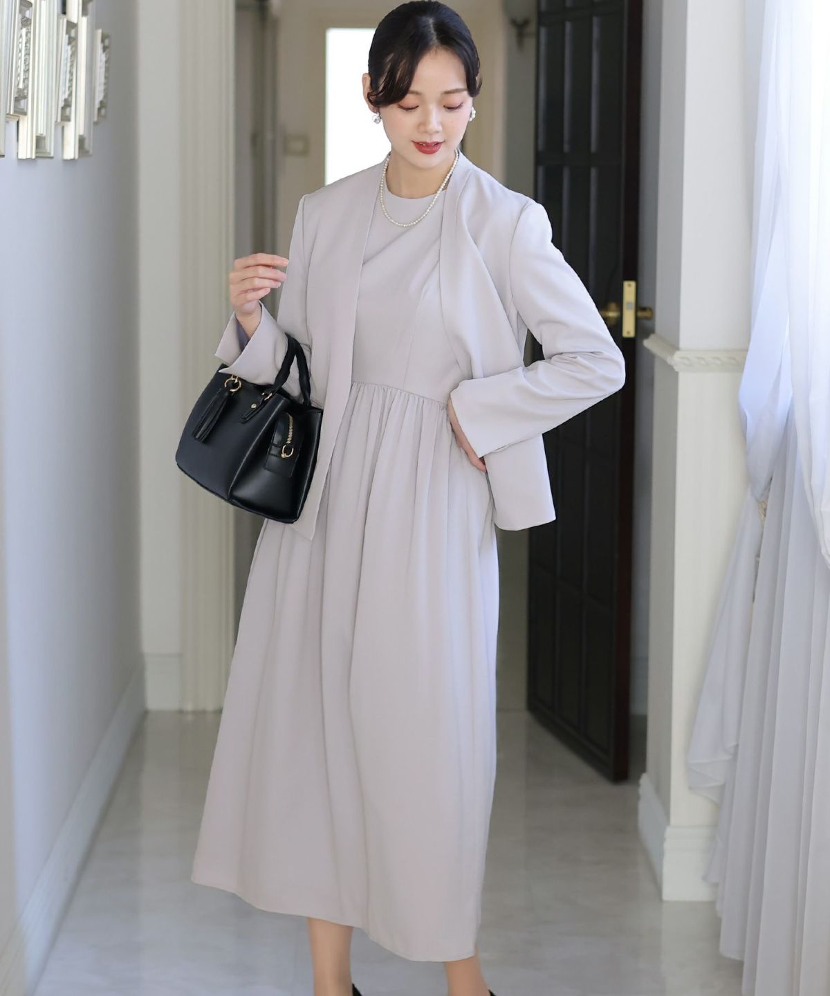 他の画像を見る ラウンドネックで女性らしい印象に ノーカラージャケットワンピースフォーマルセット 大きいサイズ SALE 1~3営業日以内発送 販売価格 ¥ 26,999 税込 会員特別価格 ¥ 26,000 税込 カートに入れる お気に入りに登録する