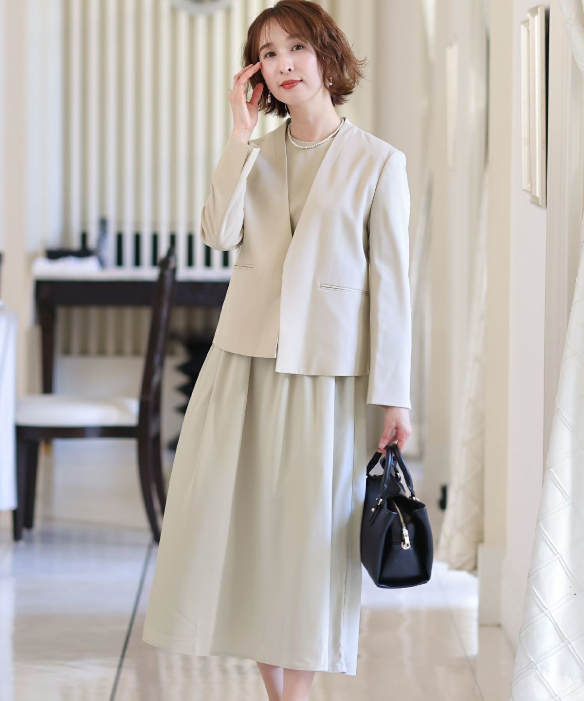 他の画像を見る ラウンドネックで女性らしい印象に ノーカラージャケットワンピースフォーマルセット 大きいサイズ SALE 1~3営業日以内発送 販売価格 ¥ 26,999 税込 会員特別価格 ¥ 26,000 税込 カートに入れる お気に入りに登録する