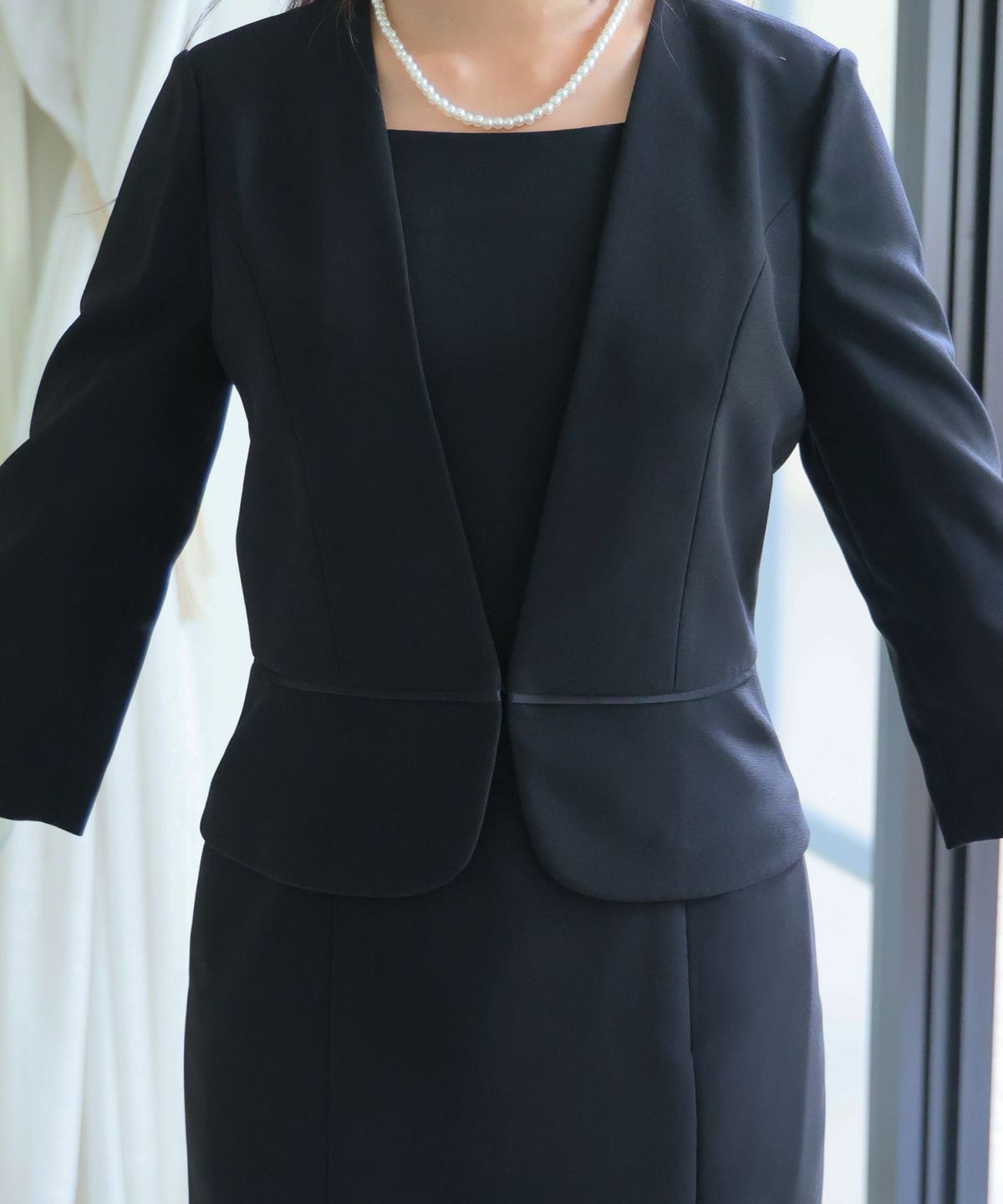 他の画像を見る コンパクトなシルエットが女性らしい印象に ブラックフォーマルジャケットワンピースセット 大きいサイズ 1~3営業日以内発送 販売価格 ¥ 25,800 税込 会員特別価格 ¥ 24,800 税込 カートに入れる お気に入りに登録する