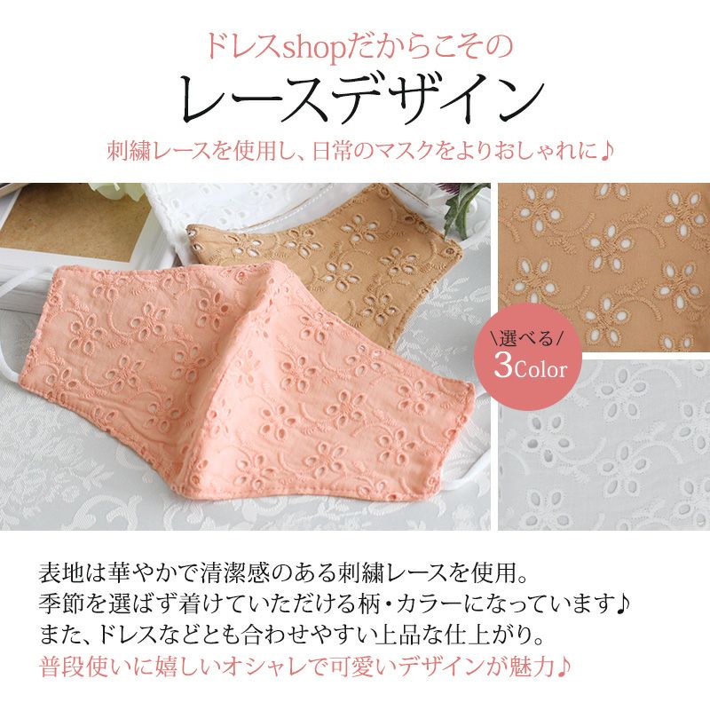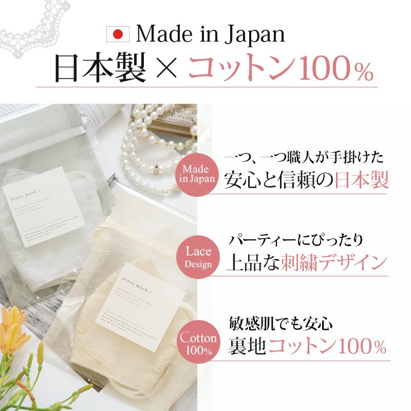 他の画像を見る 嬉しい日本製♪大人可愛いおしゃれな刺繍レース ドレスレースマスク(巾着付き) 1~3営業日以内発送 販売価格 ¥ 5,500 税込 会員特別価格 ¥ 5,200 税込 カートに入れる お気に入りに登録する