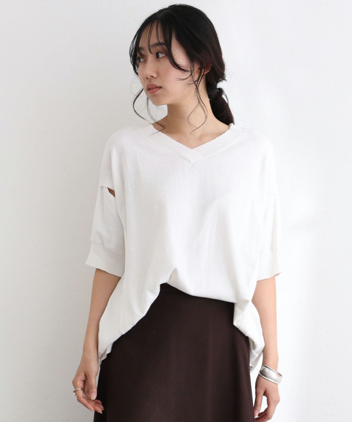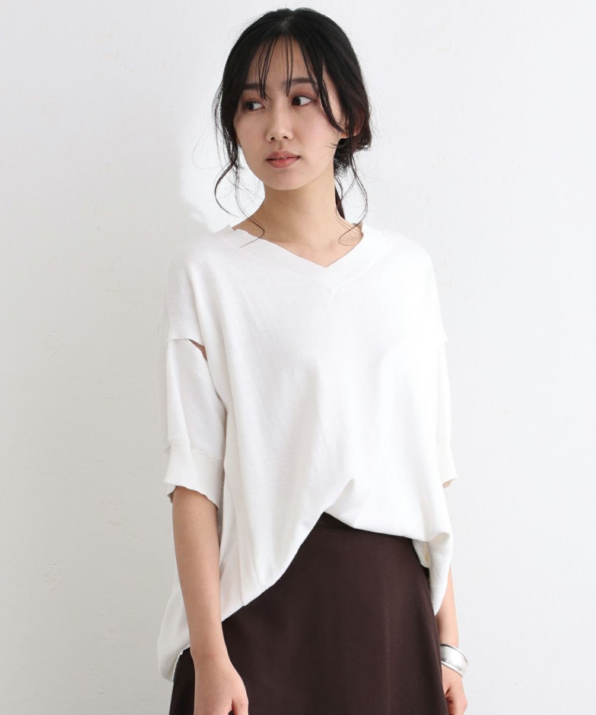 他の画像を見る デコルテラインが綺麗にみえるVネック 袖脇オープンVネック5分袖ニット 大きいサイズ 1~3営業日以内発送 販売価格 ¥ 6,400 税込 会員特別価格 ¥ 6,100 税込 カートに入れる お気に入りに登録する