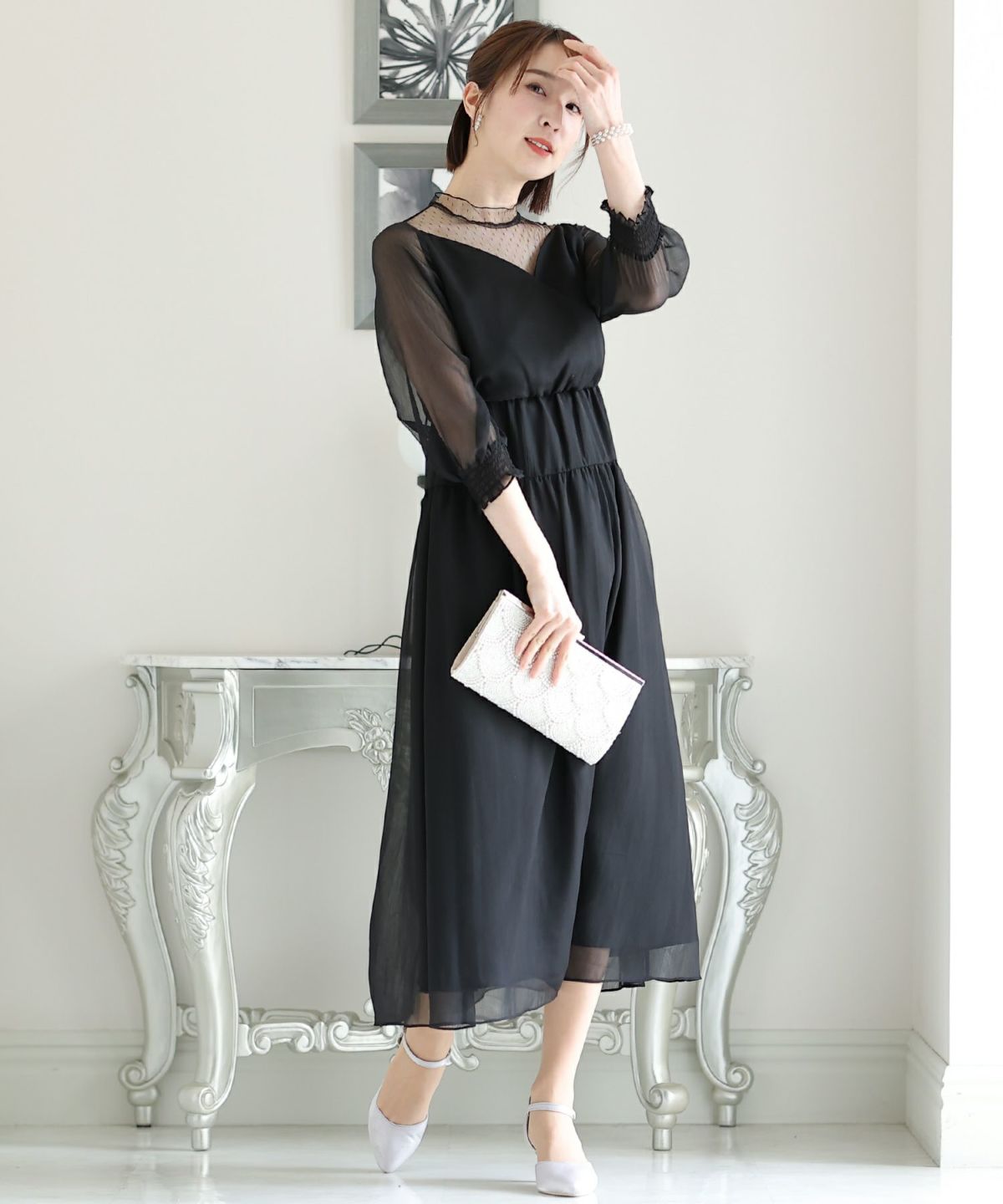 他の画像を見る シフォンによるやわらかなシルエットが女性らしい タックデザインシフォンブラックワンピース 大きいサイズ SALE 1~3営業日以内発送 定価 ¥ 18,899 販売価格 ¥ 4,980 税込 カートに入れる お気に入りに登録する