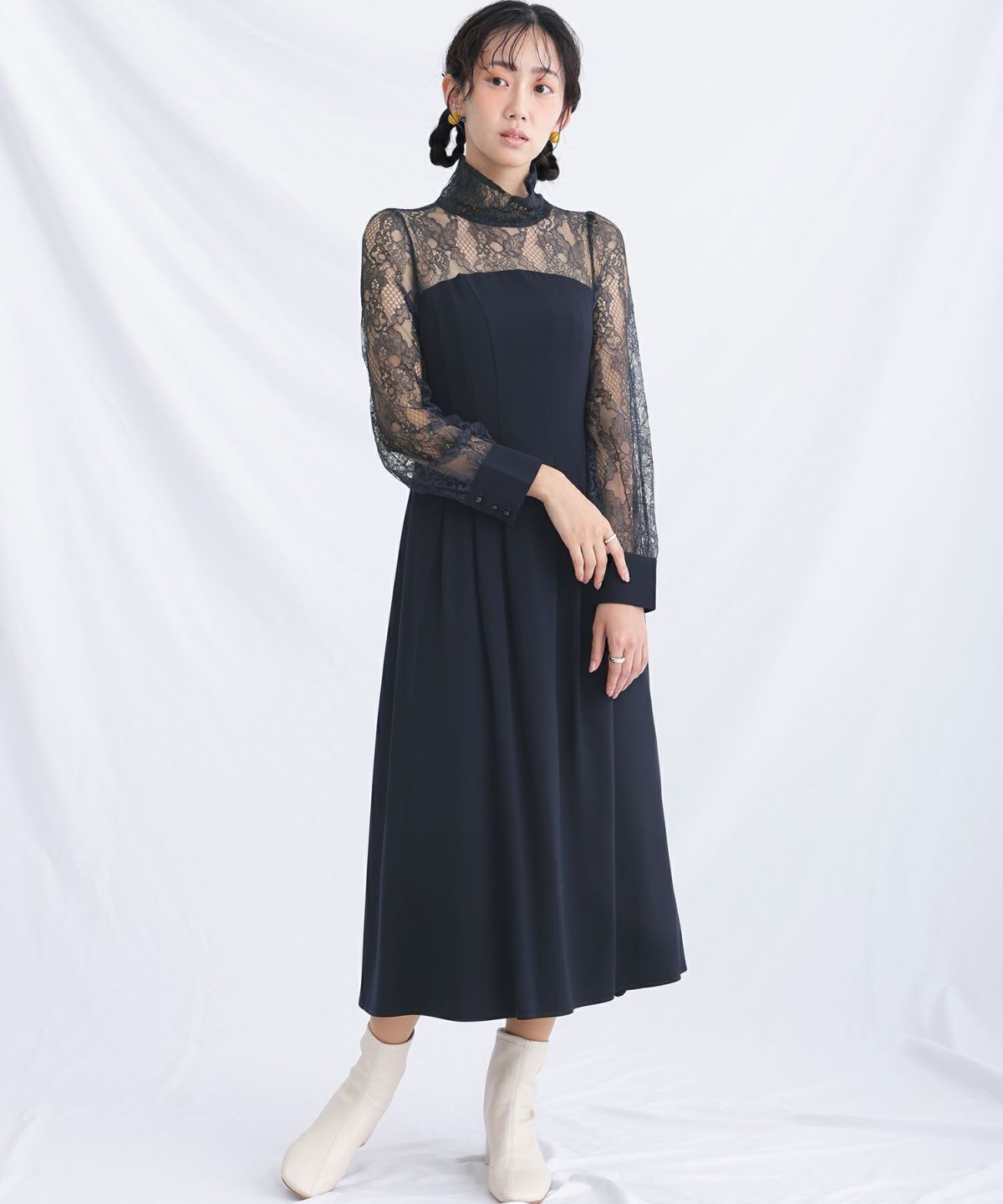 他の画像を見る 無地の生地にレースが施されたフェミニンなドレス ハイネック切替レースドレス 1~3営業日以内発送 定価 ¥ 15,800 販売価格 ¥ 9,510 税込 カートに入れる お気に入りに登録する