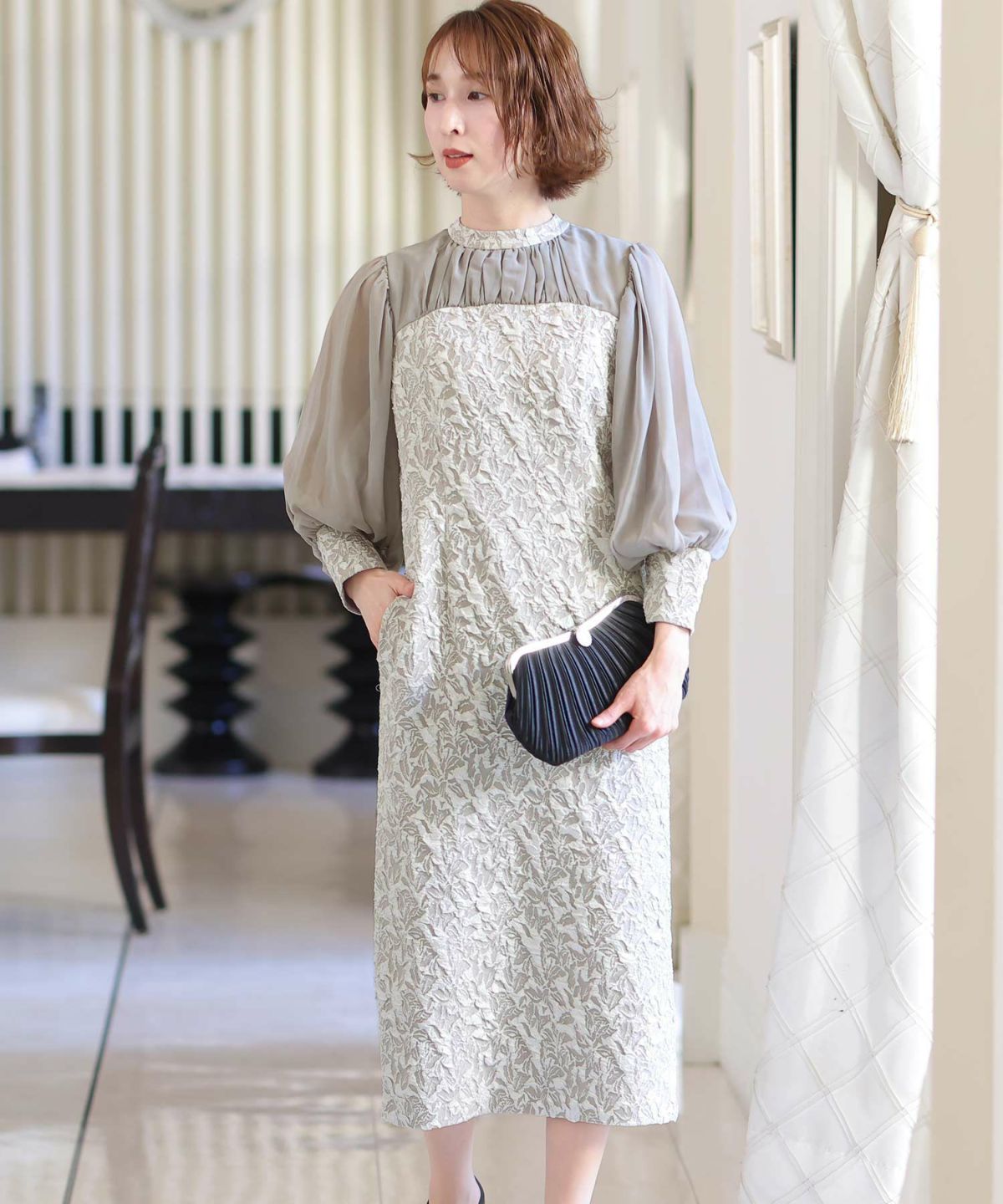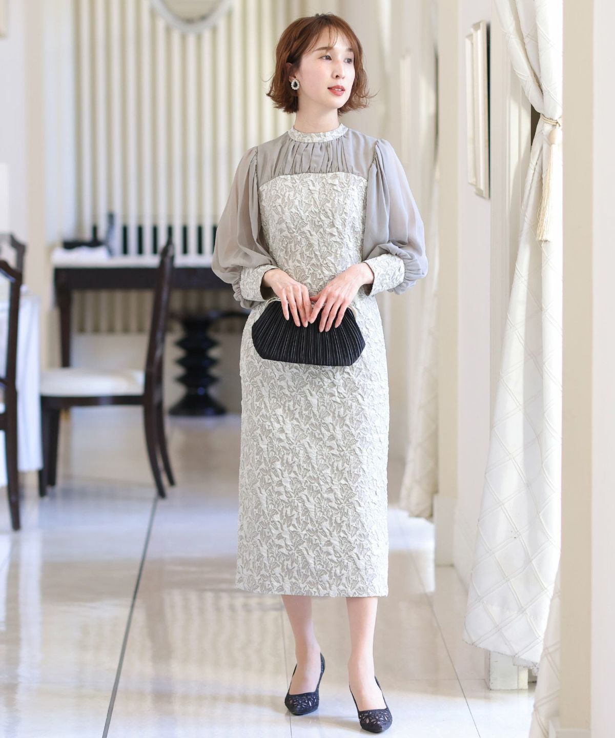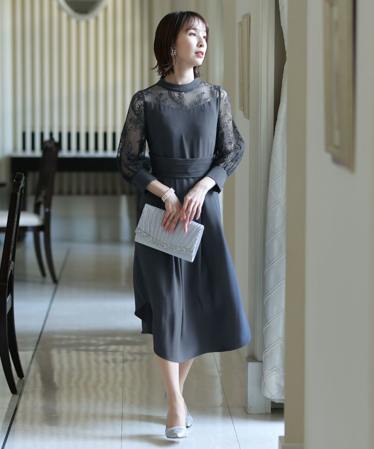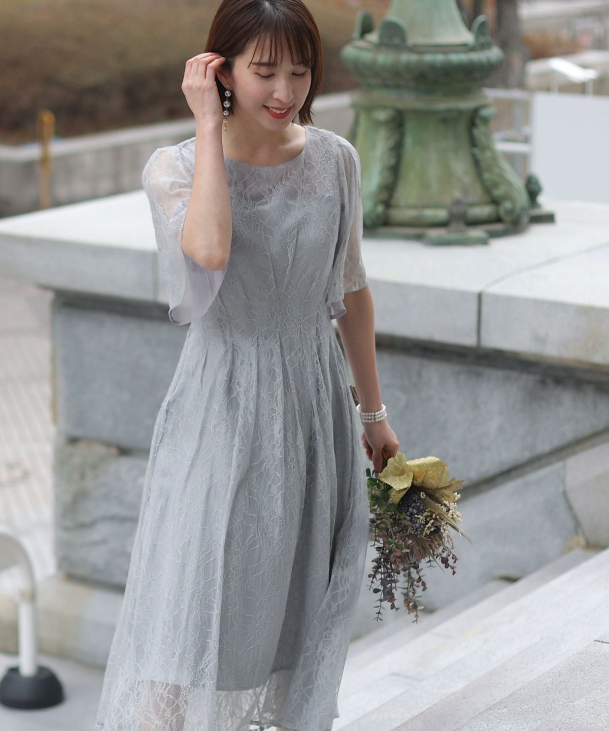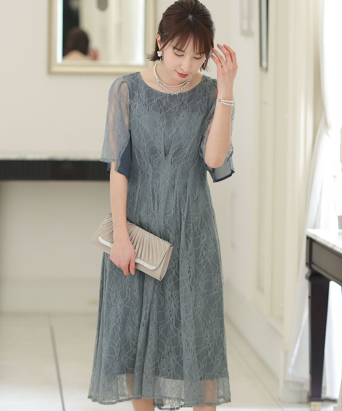 他の画像を見る デコルテの程よい透け感が大人っぽい雰囲気に ジャガードレース切り替えドレス 即日発送 SALE 定価 ¥ 18,800 販売価格 ¥ 9,350 税込 カートに入れる お気に入りに登録する