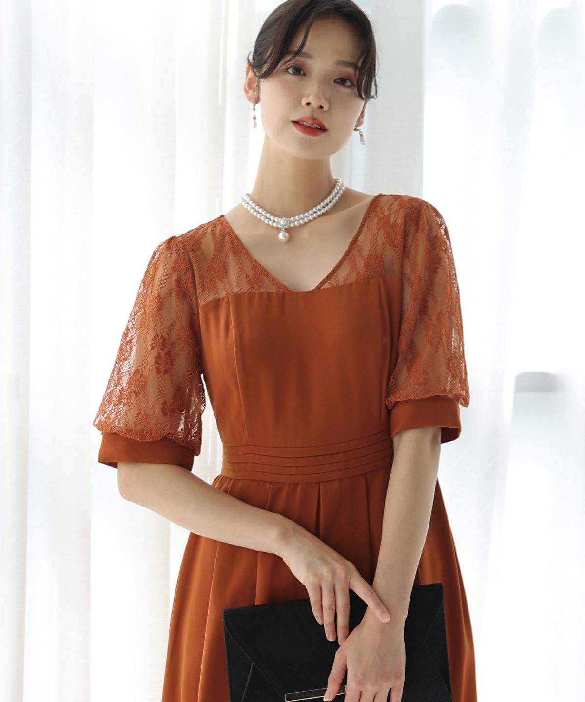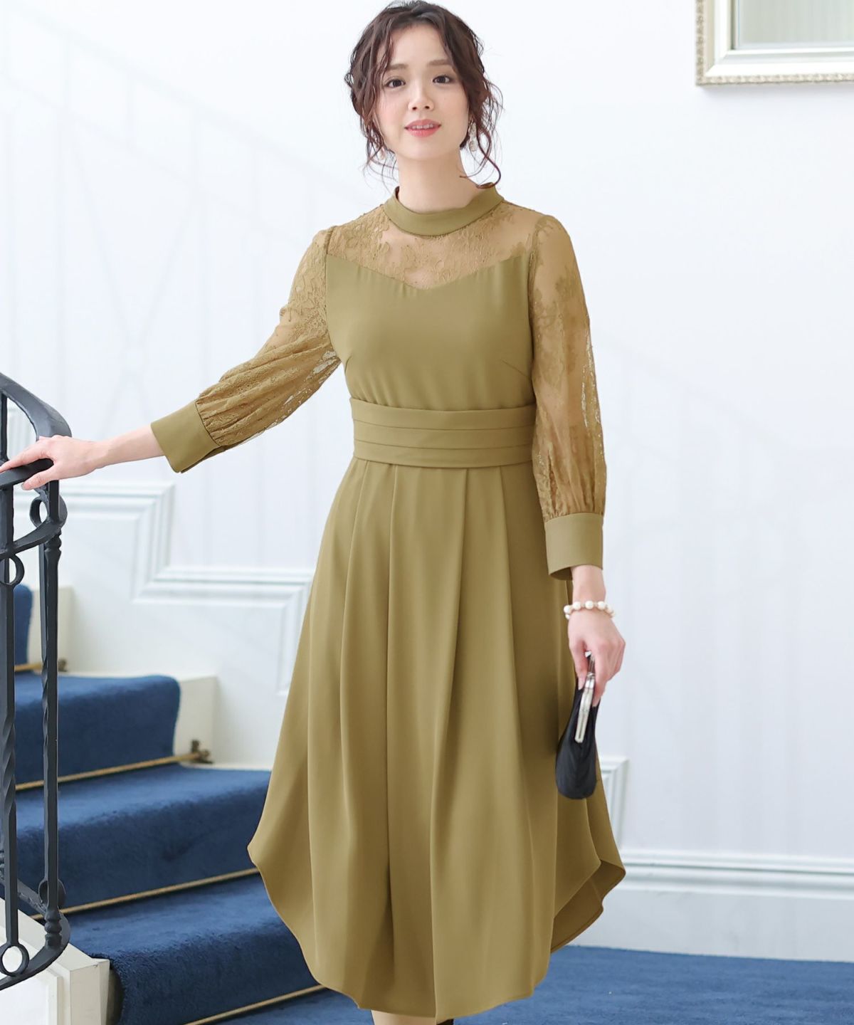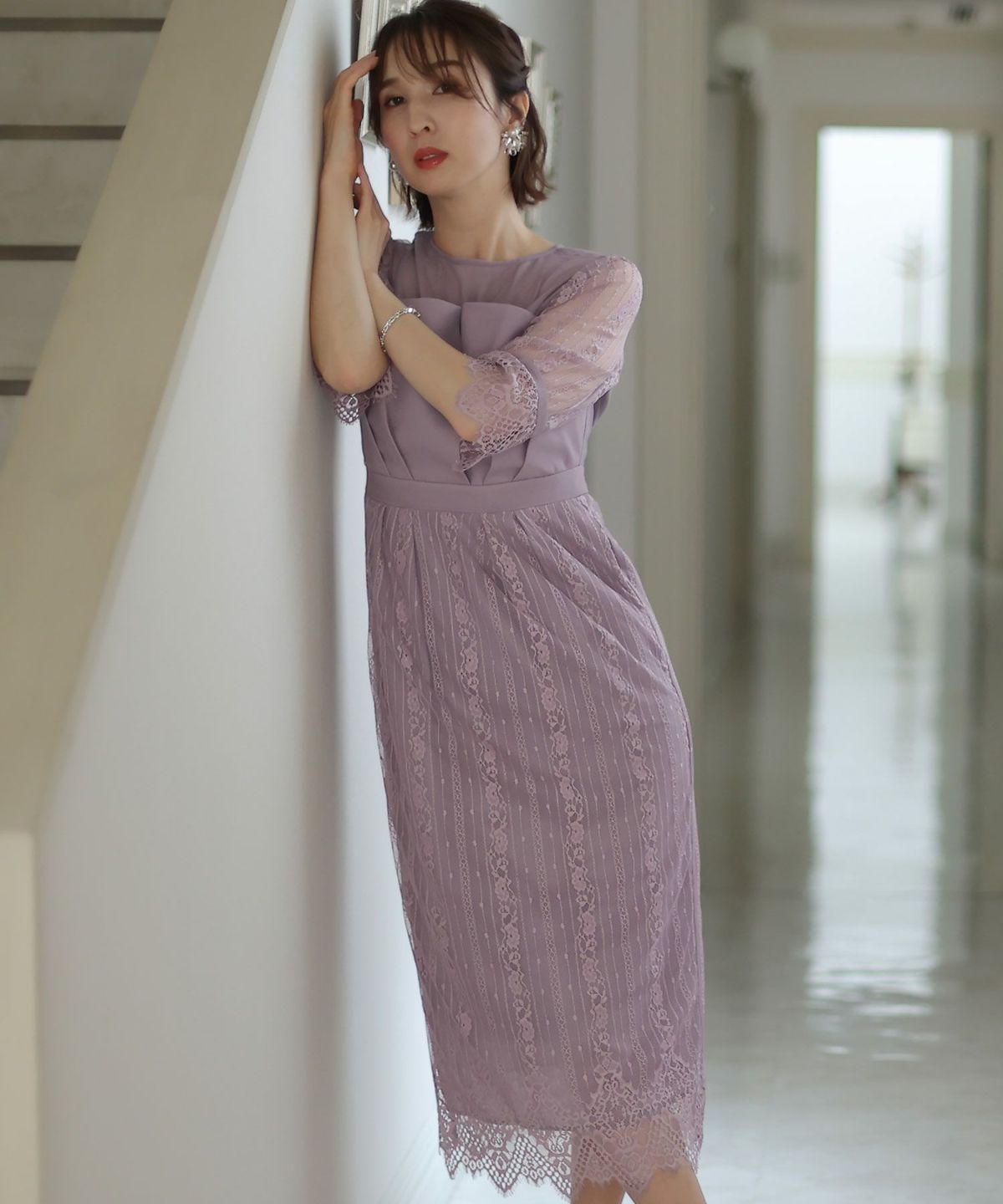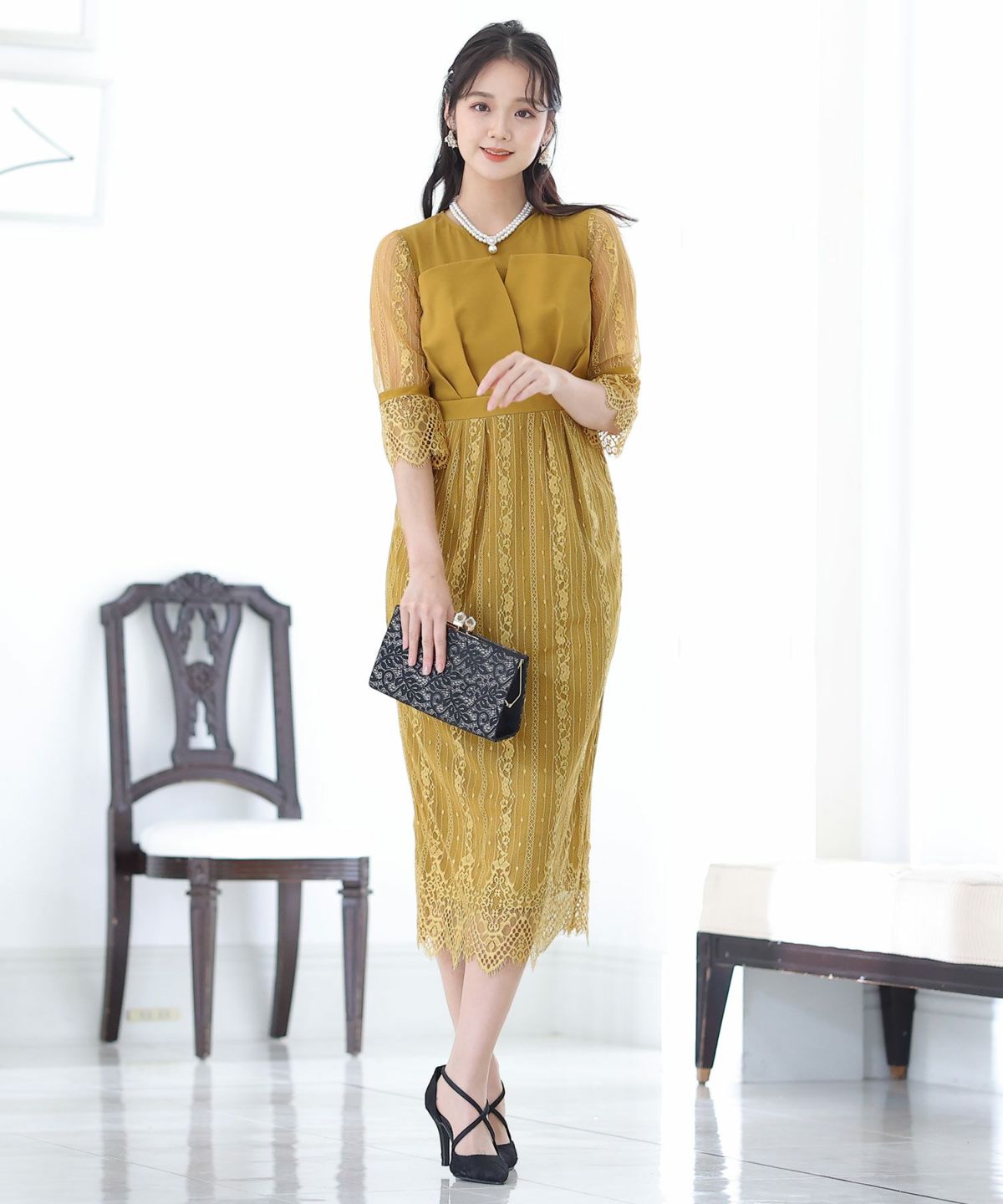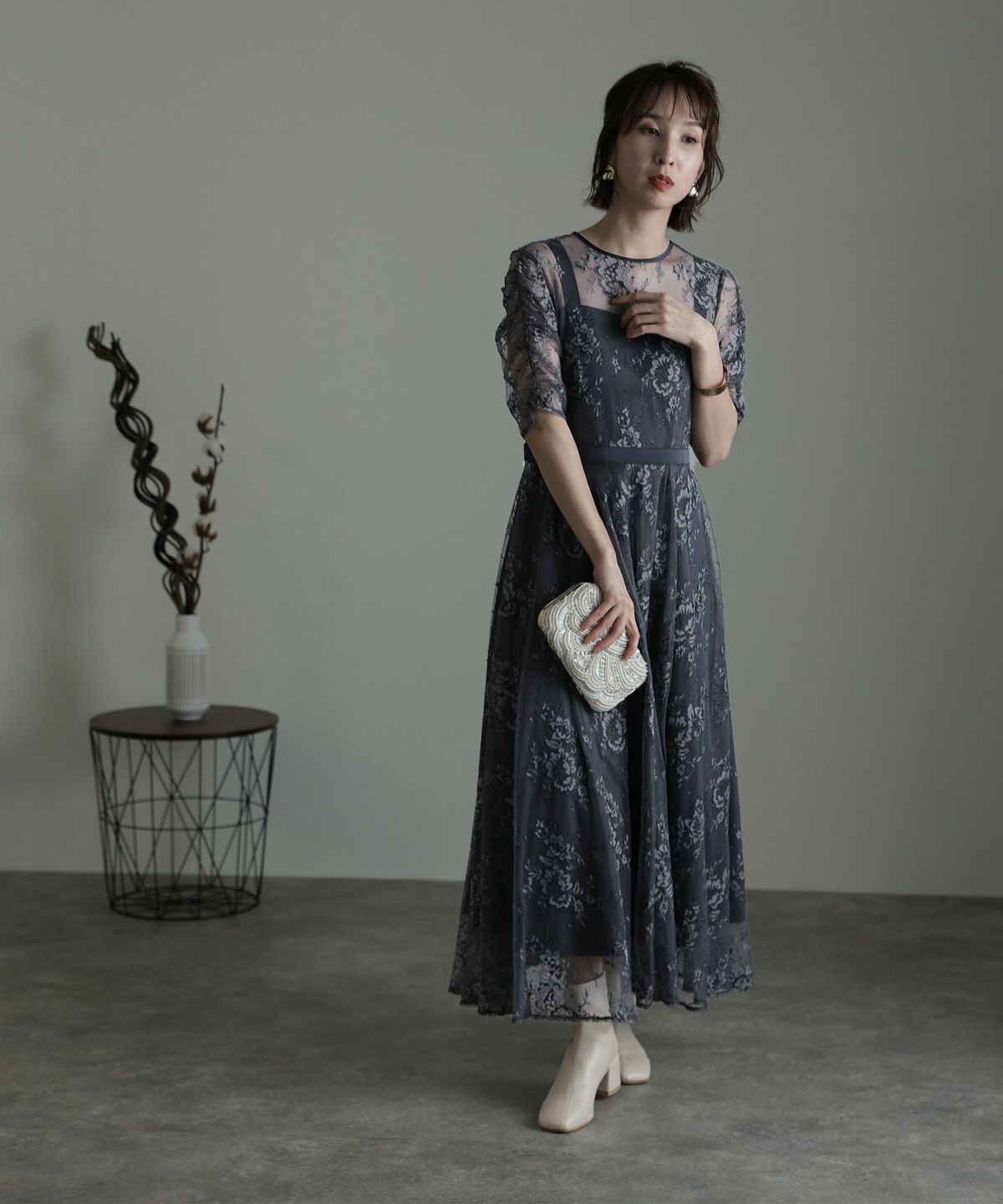 他の画像を見る デコルテの程よい透け感が大人っぽい雰囲気に ジャガードレース切り替えドレス 即日発送 SALE 定価 ¥ 18,800 販売価格 ¥ 9,350 税込 カートに入れる お気に入りに登録する