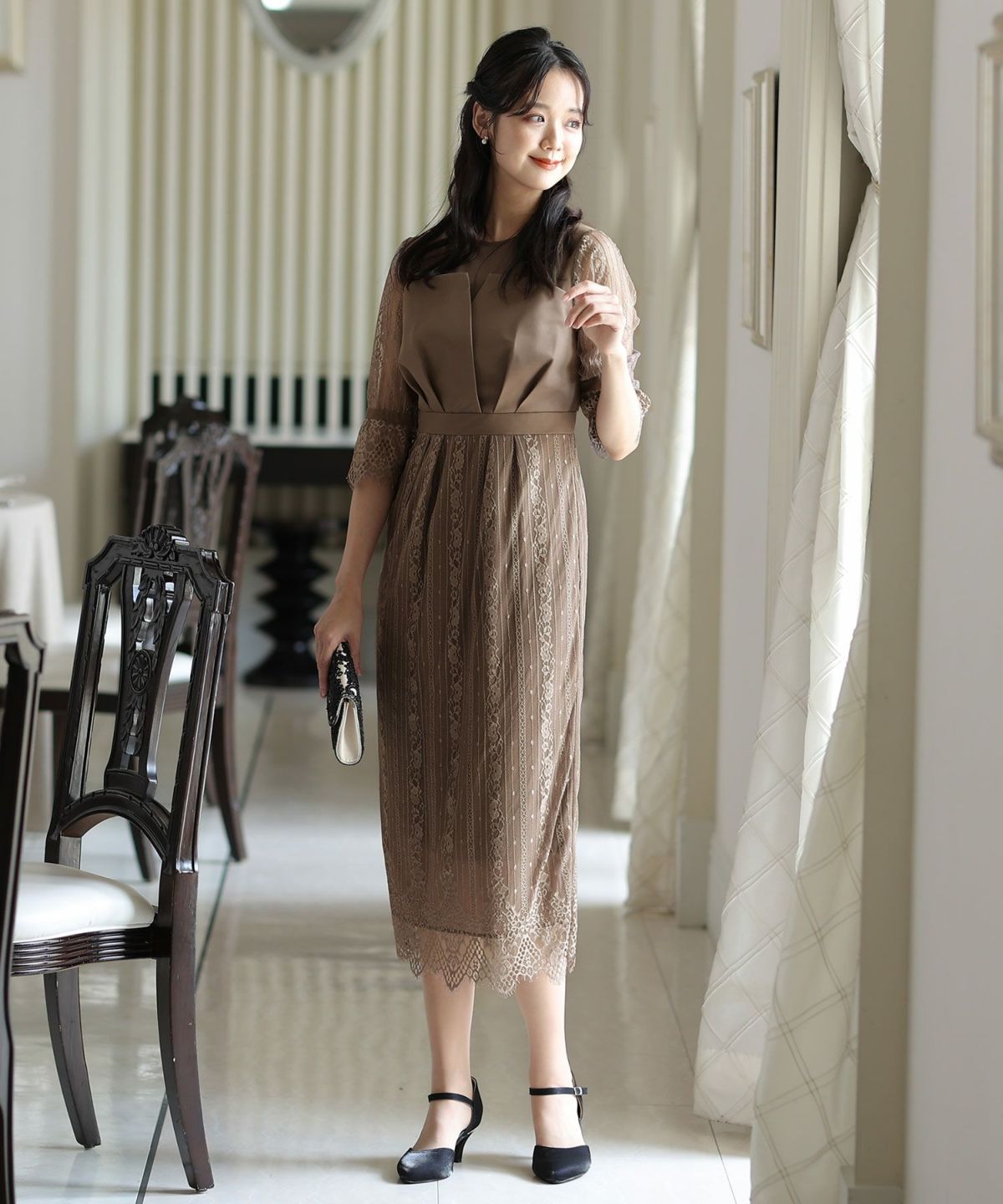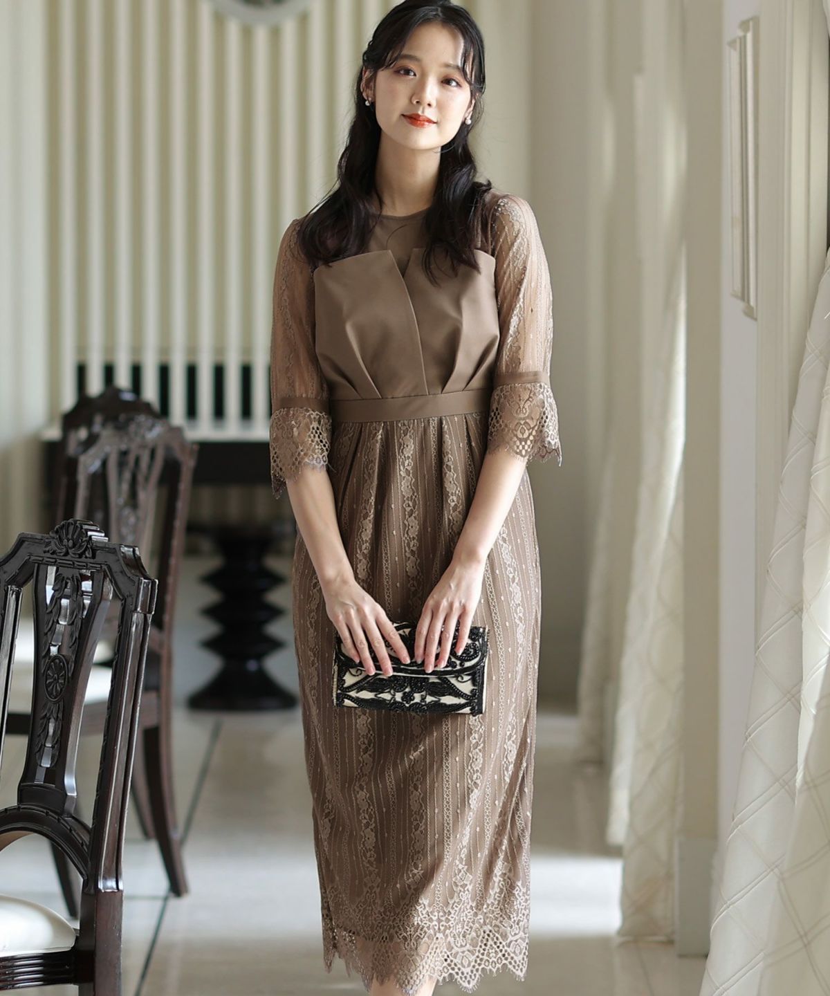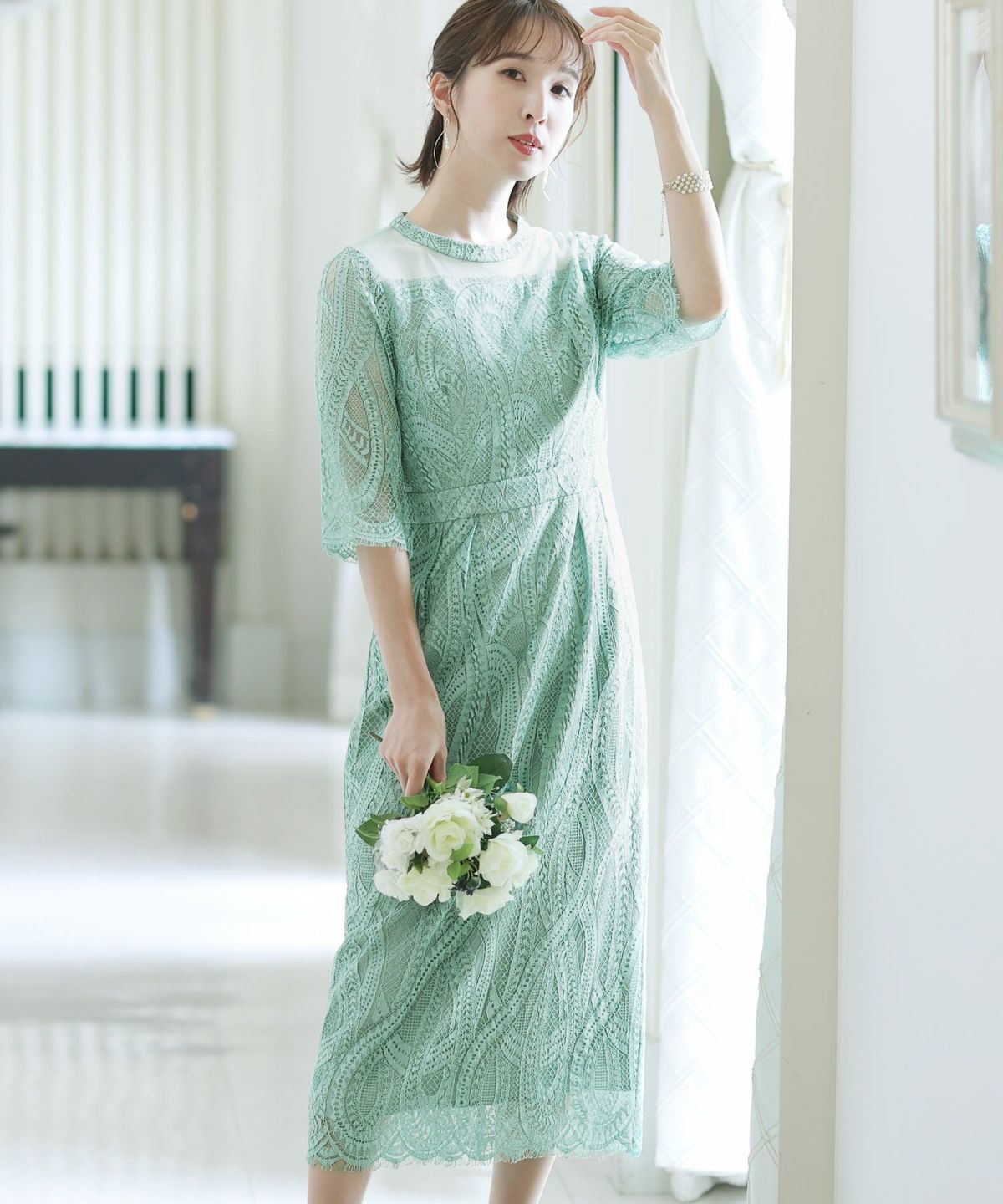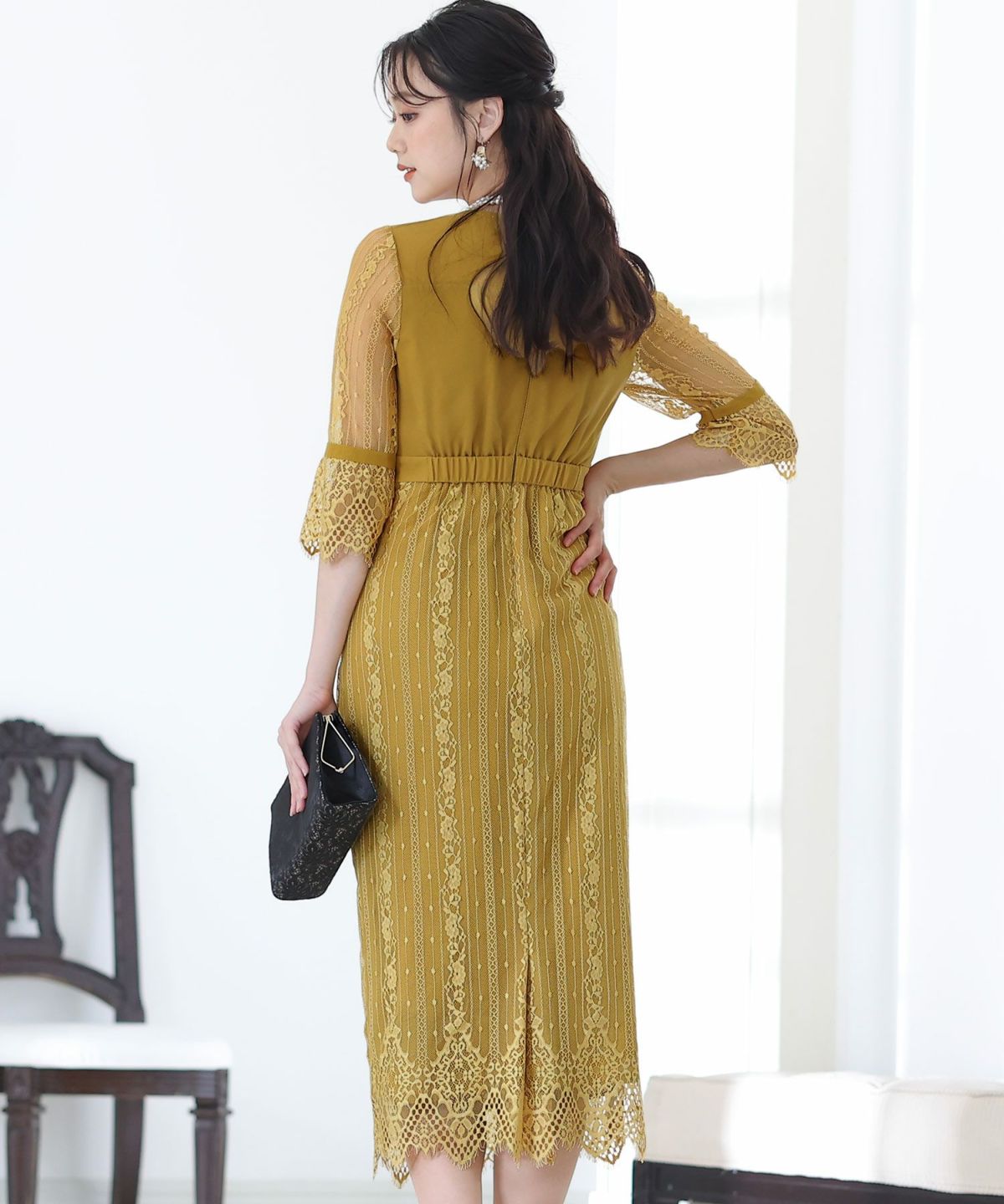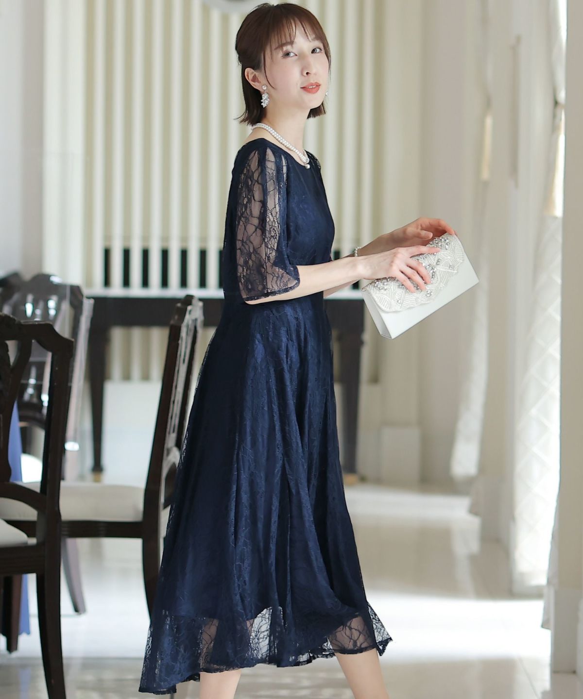 他の画像を見る デコルテの程よい透け感が大人っぽい雰囲気に ジャガードレース切り替えドレス 即日発送 SALE 定価 ¥ 18,800 販売価格 ¥ 9,350 税込 カートに入れる お気に入りに登録する