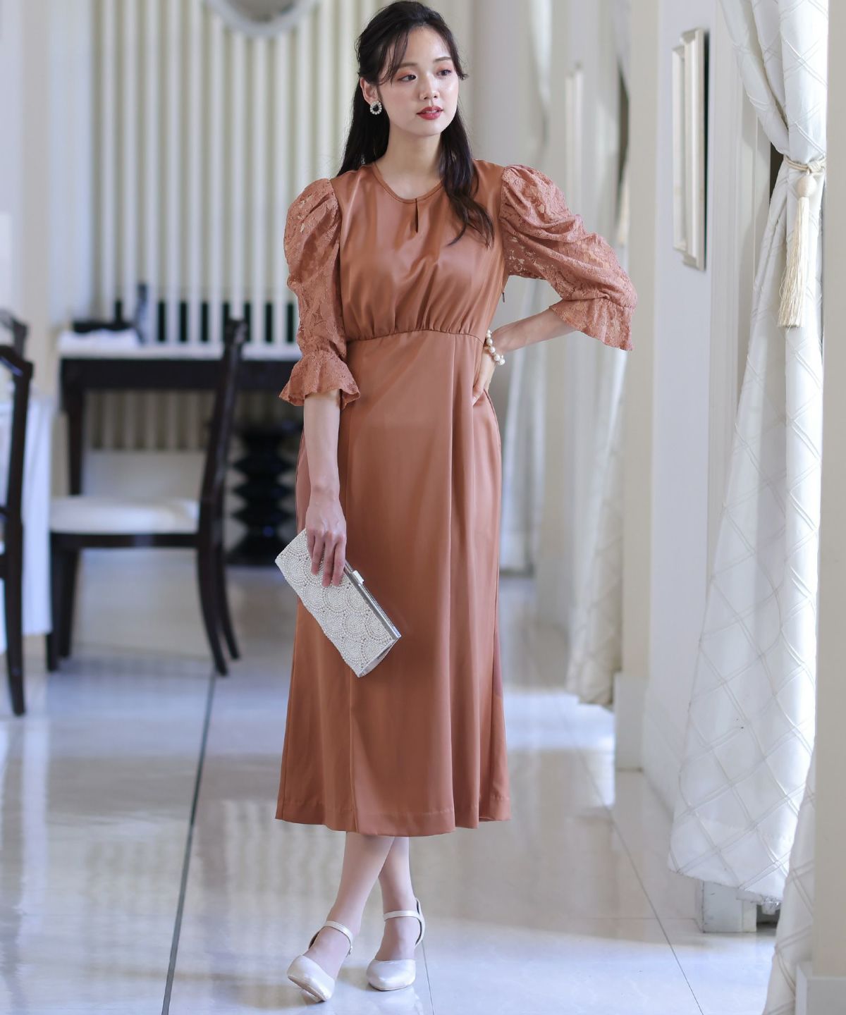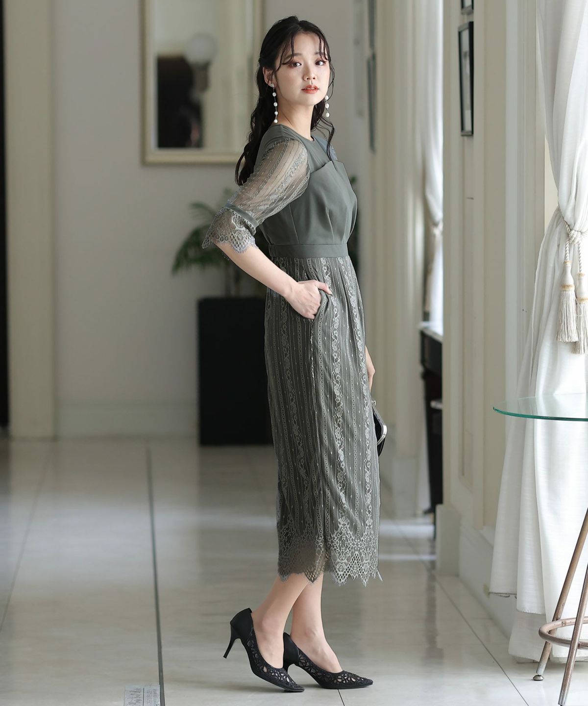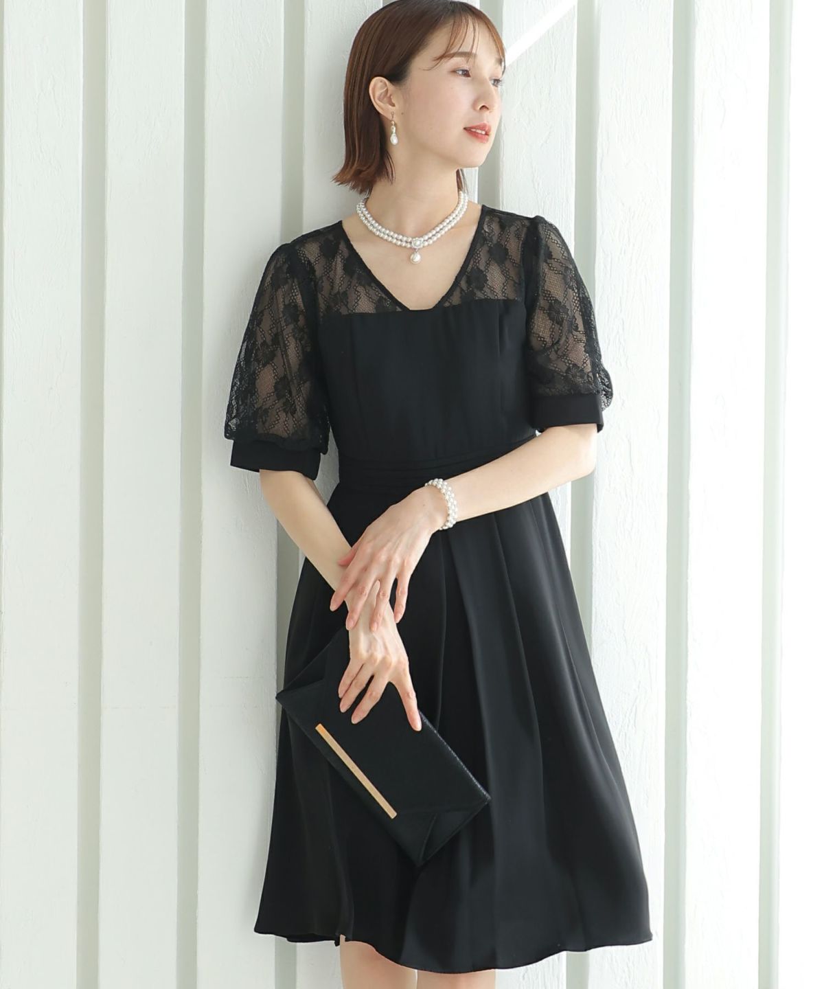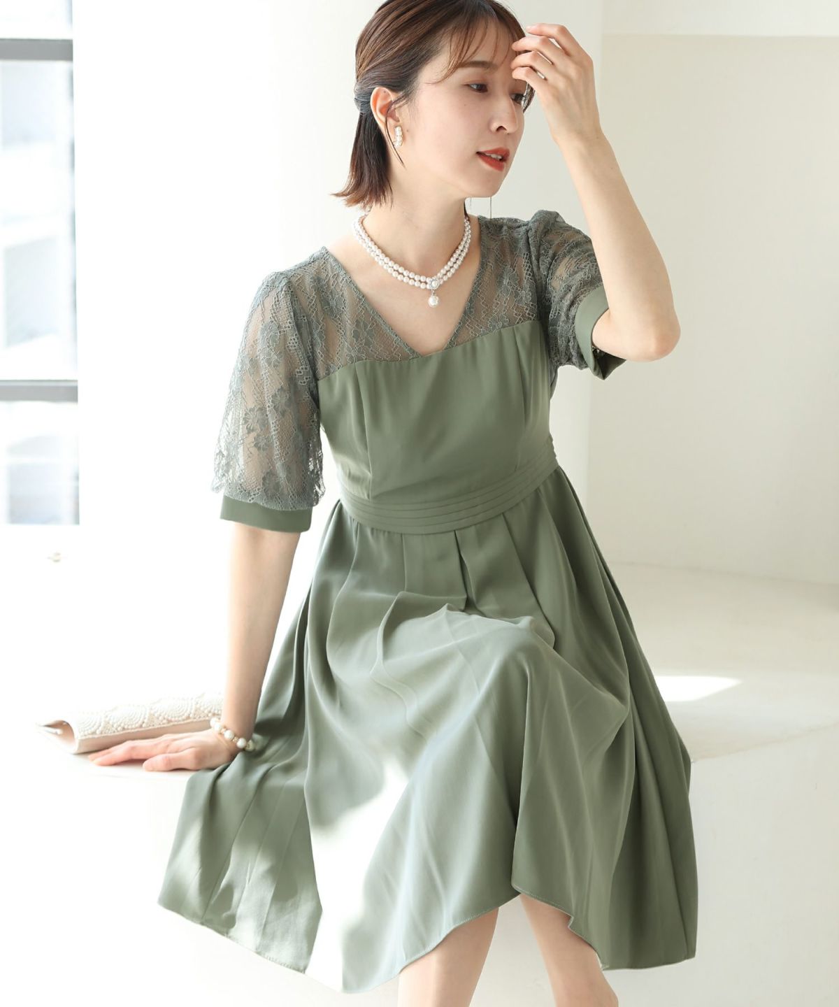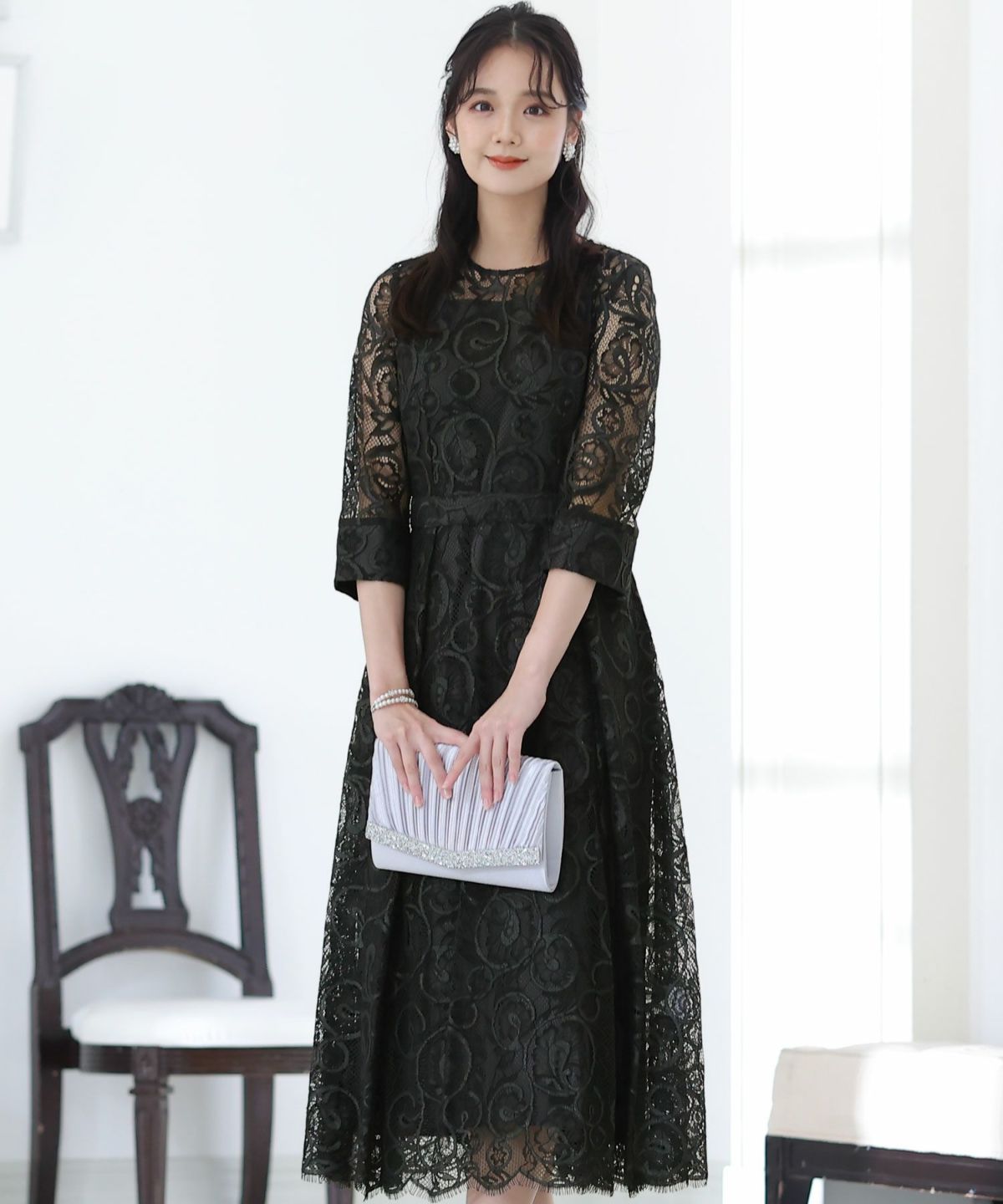 他の画像を見る デコルテの程よい透け感が大人っぽい雰囲気に ジャガードレース切り替えドレス 即日発送 SALE 定価 ¥ 18,800 販売価格 ¥ 9,350 税込 カートに入れる お気に入りに登録する