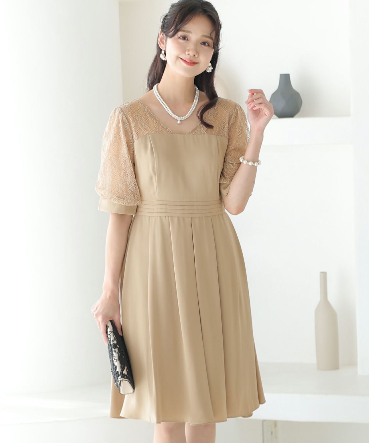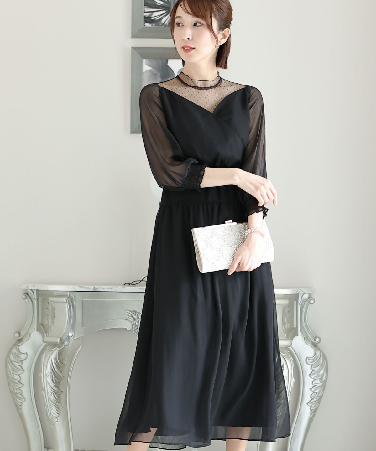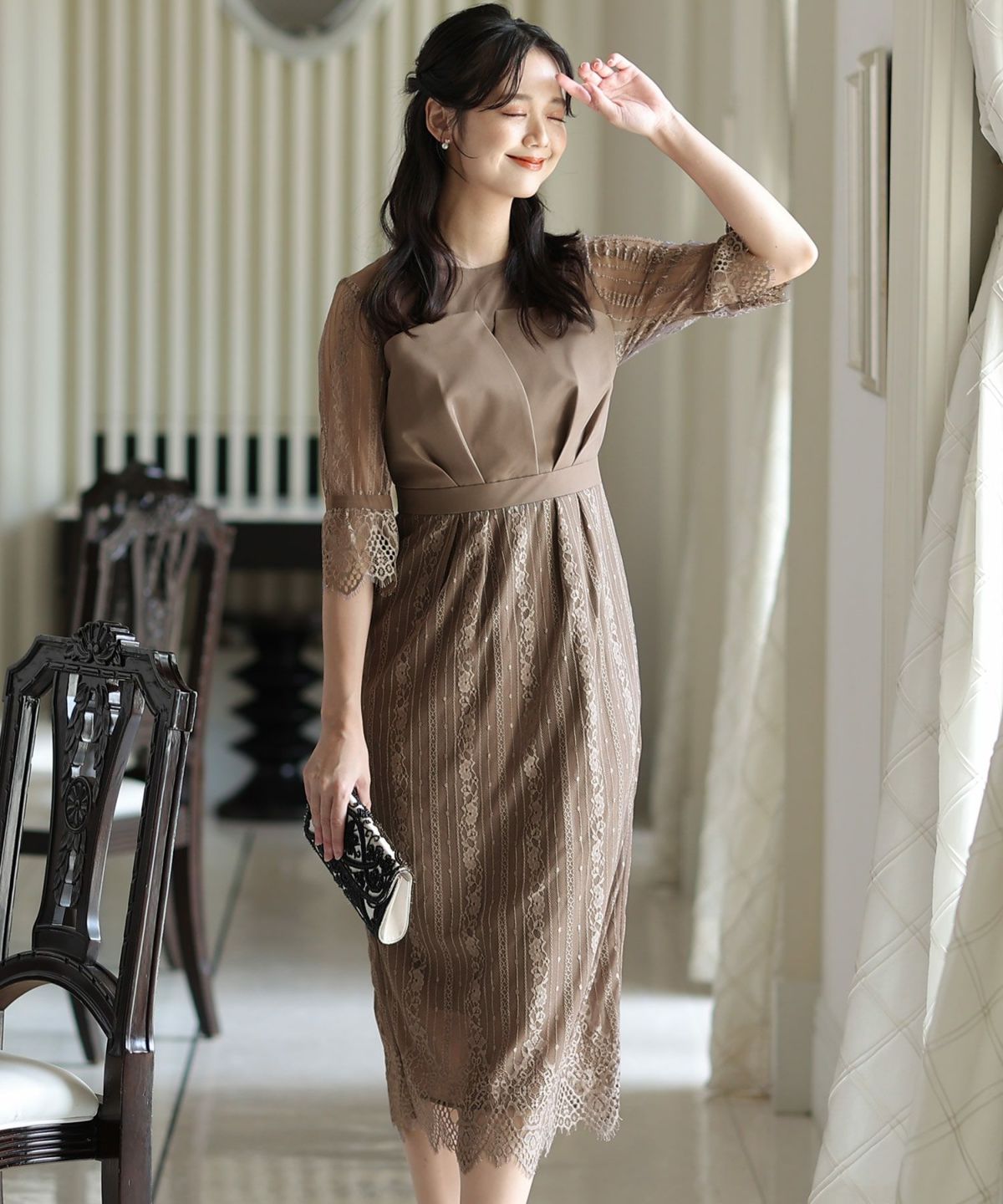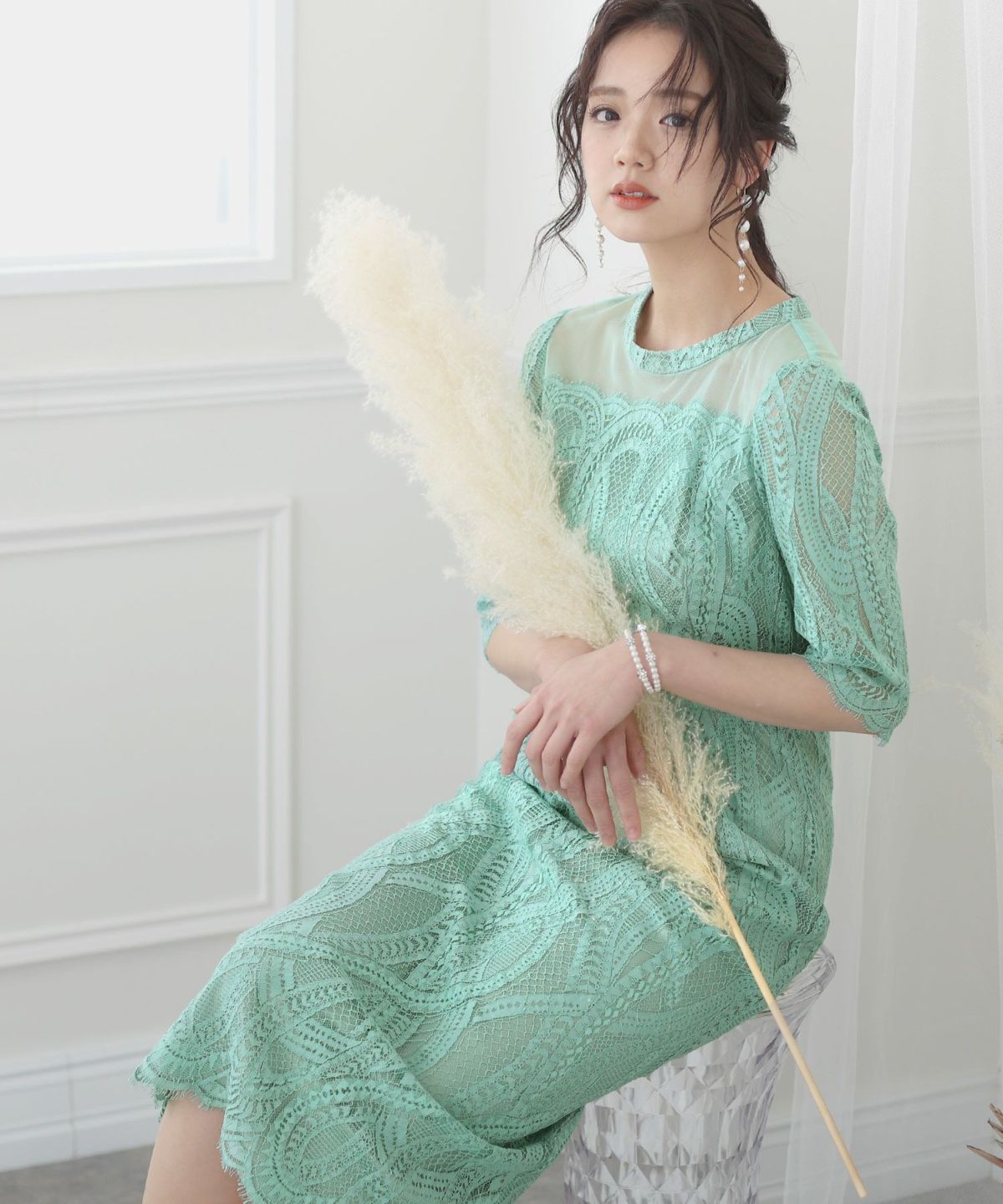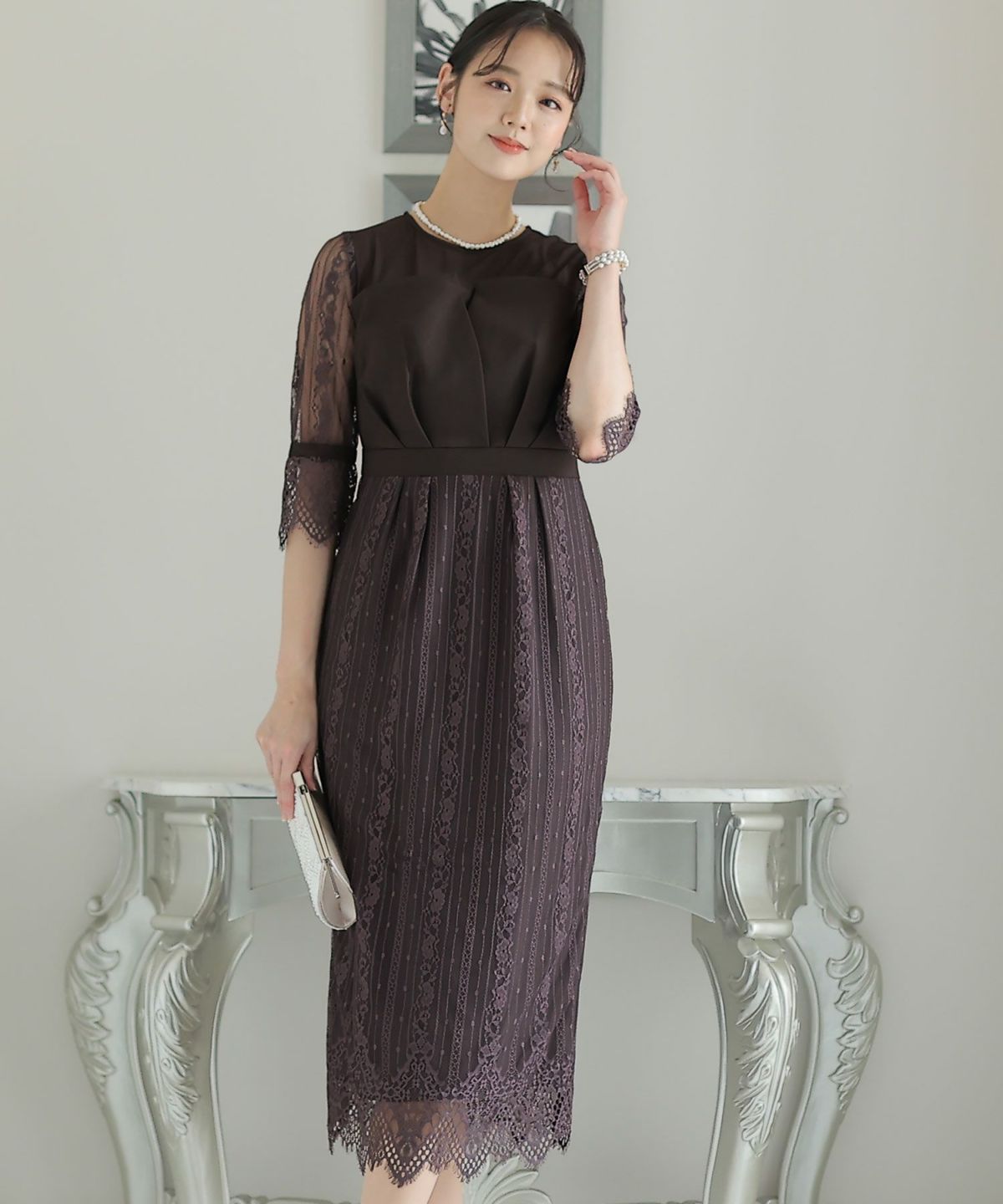 他の画像を見る デコルテの程よい透け感が大人っぽい雰囲気に ジャガードレース切り替えドレス 即日発送 SALE 定価 ¥ 18,800 販売価格 ¥ 9,350 税込 カートに入れる お気に入りに登録する