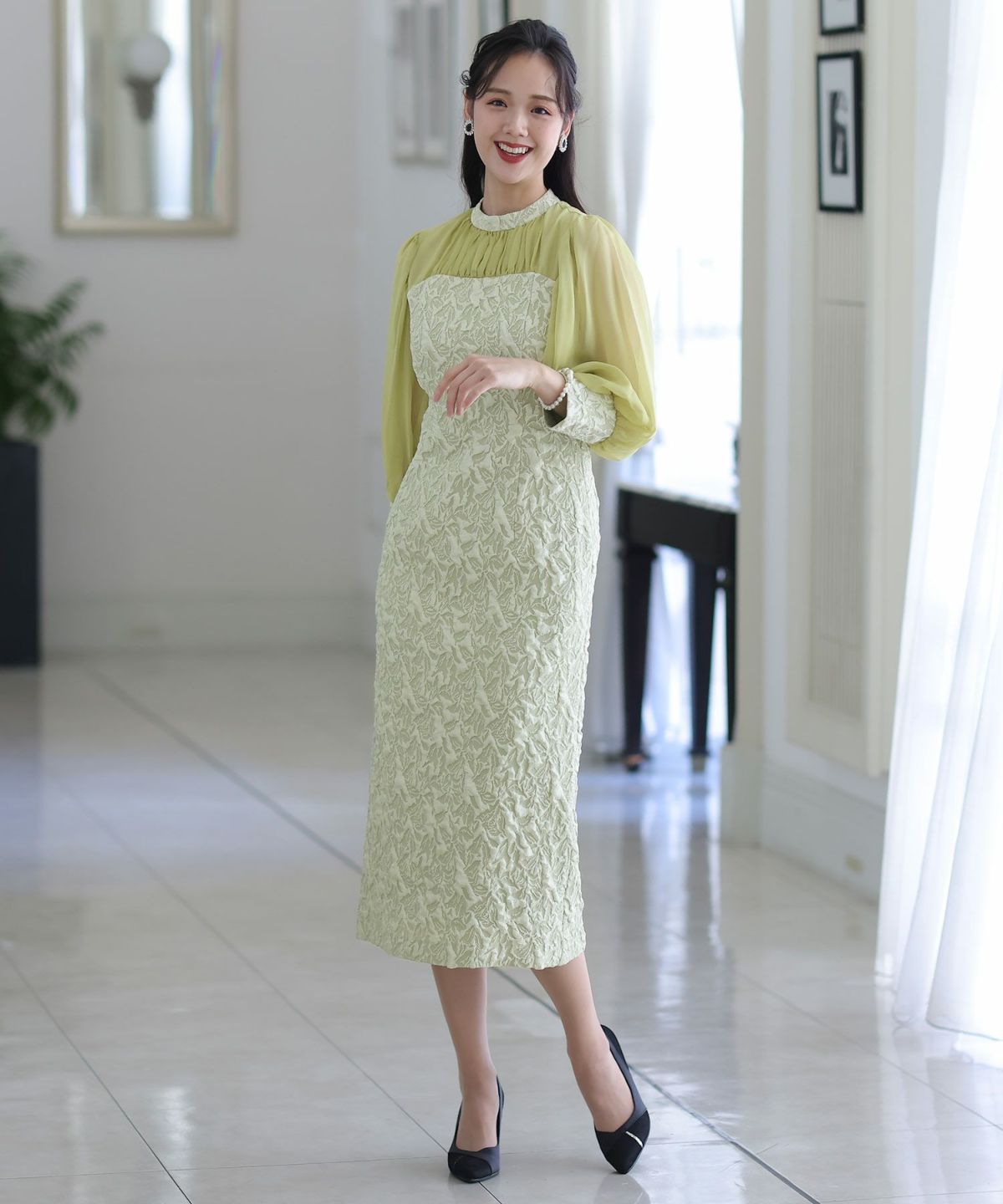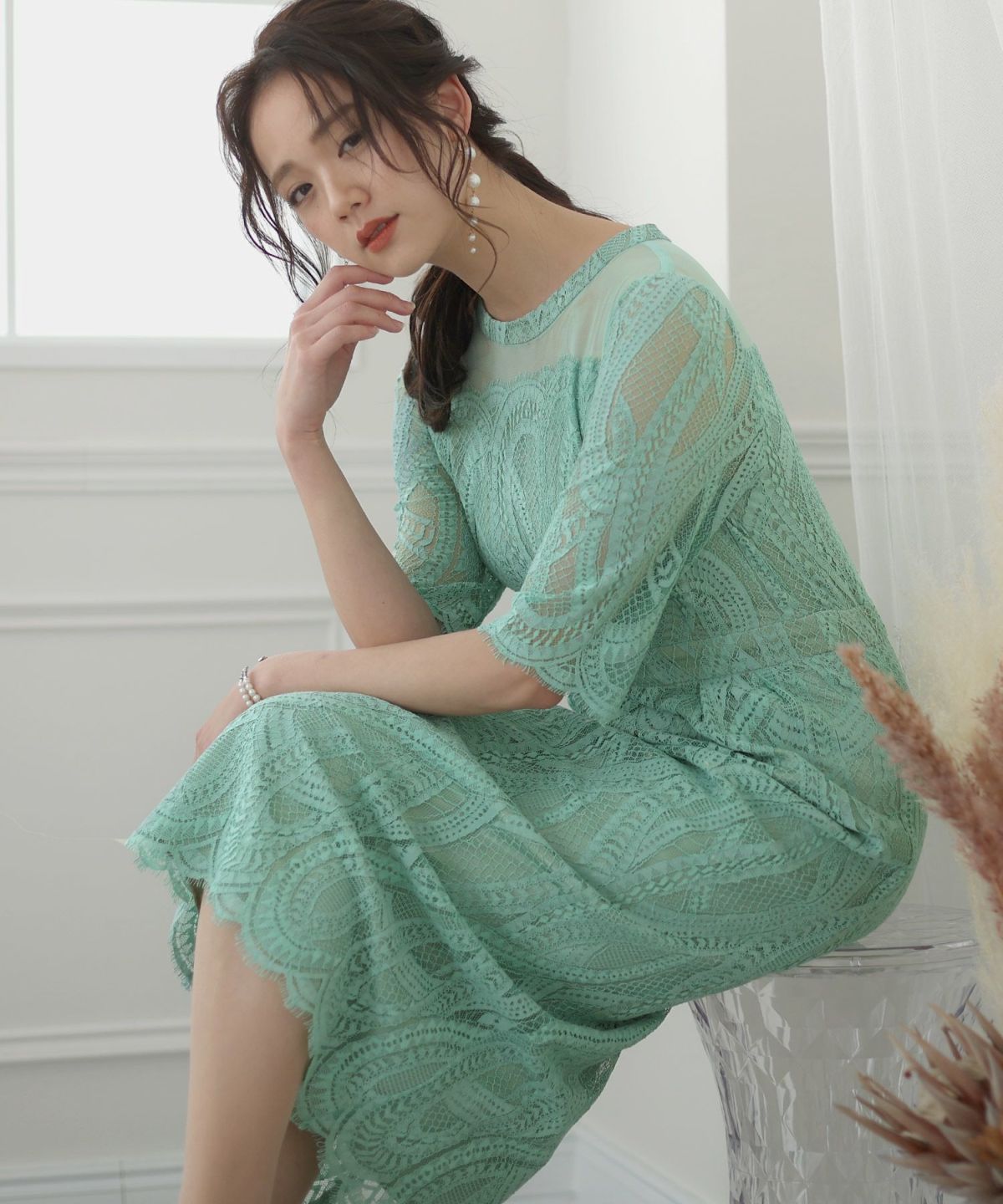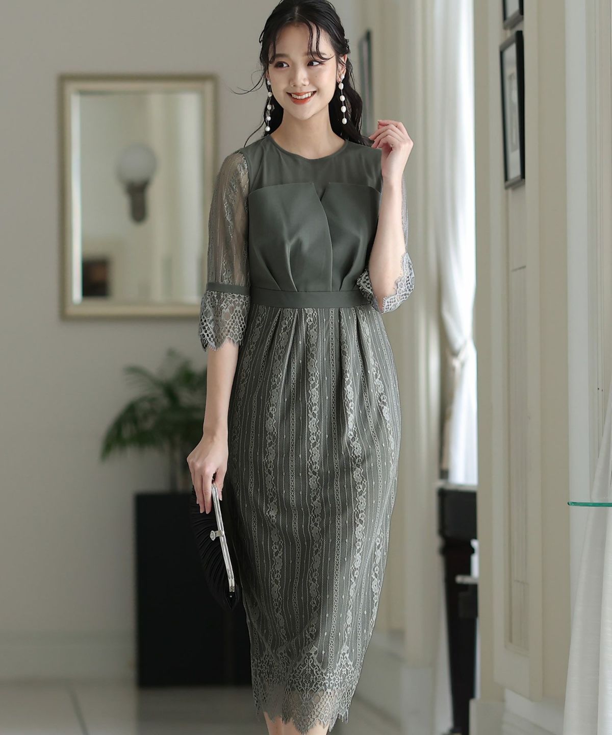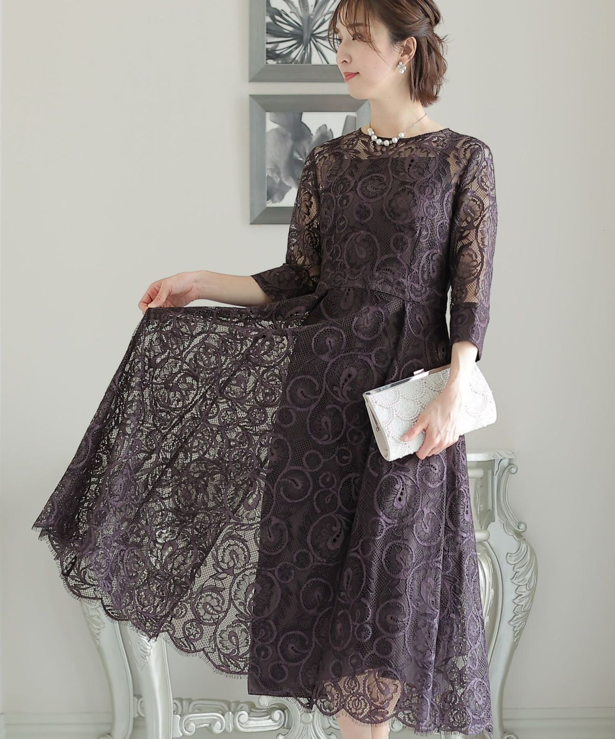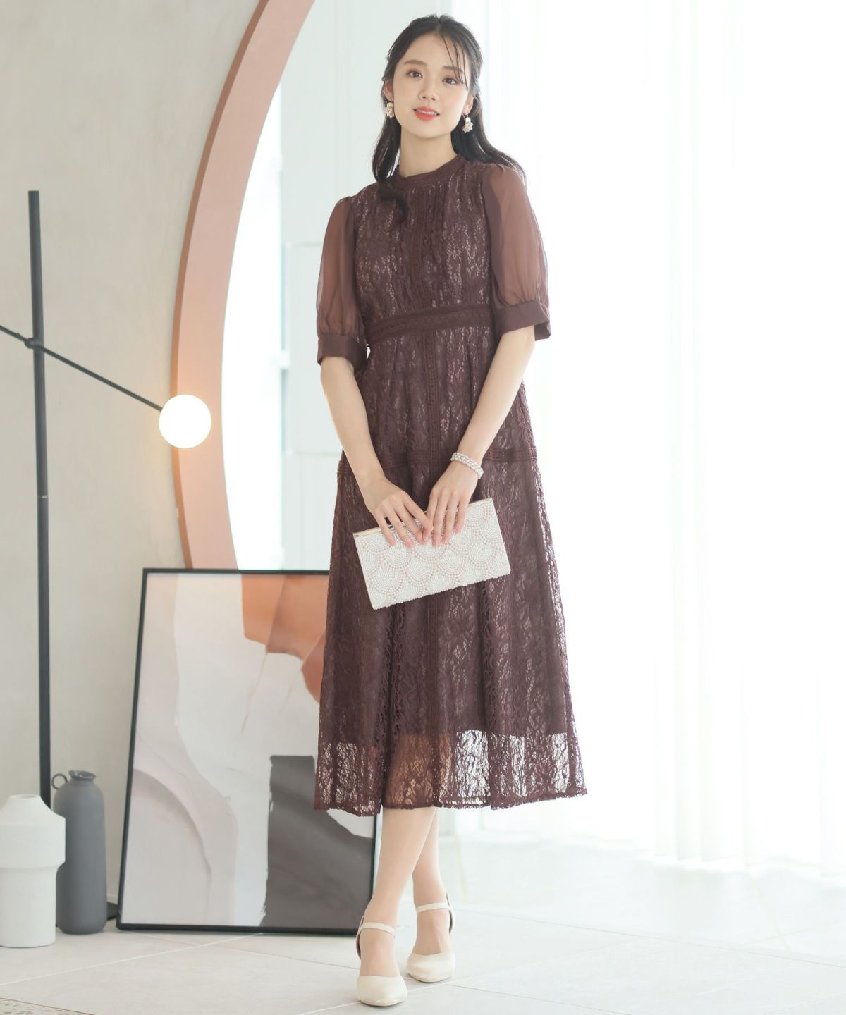 他の画像を見る デコルテの程よい透け感が大人っぽい雰囲気に ジャガードレース切り替えドレス 即日発送 SALE 定価 ¥ 18,800 販売価格 ¥ 9,350 税込 カートに入れる お気に入りに登録する
