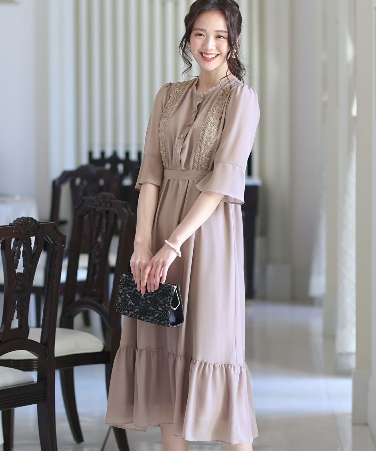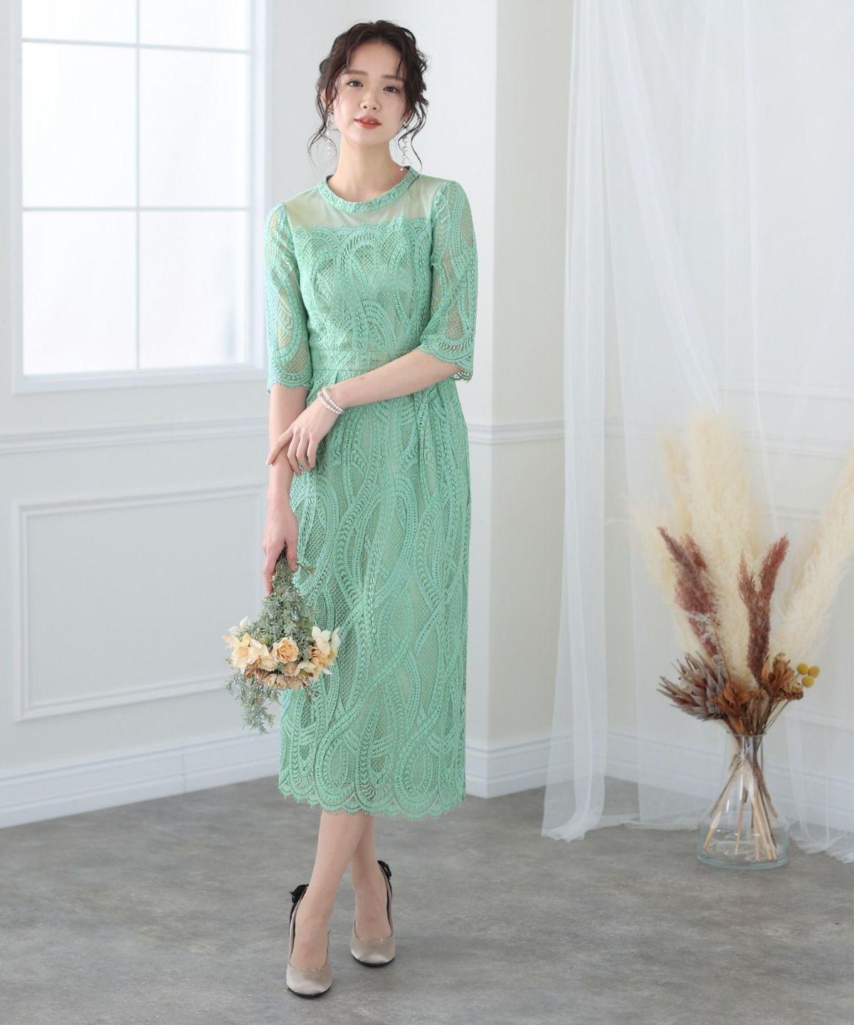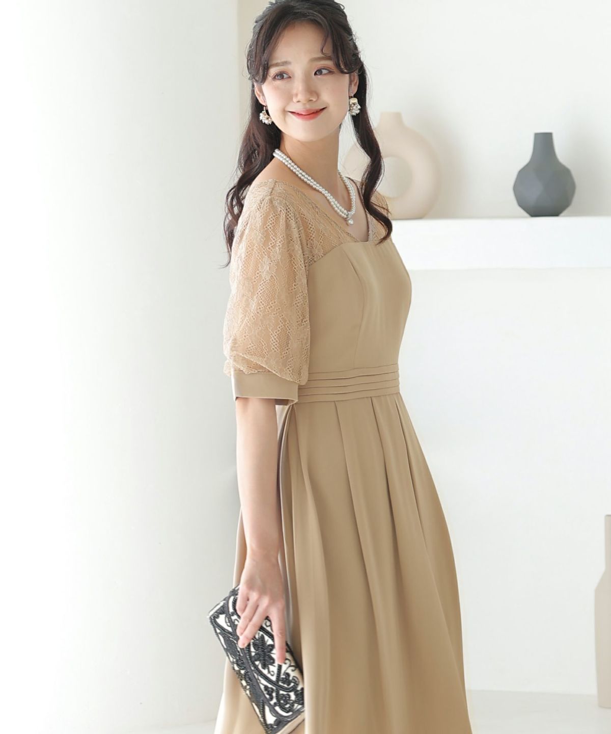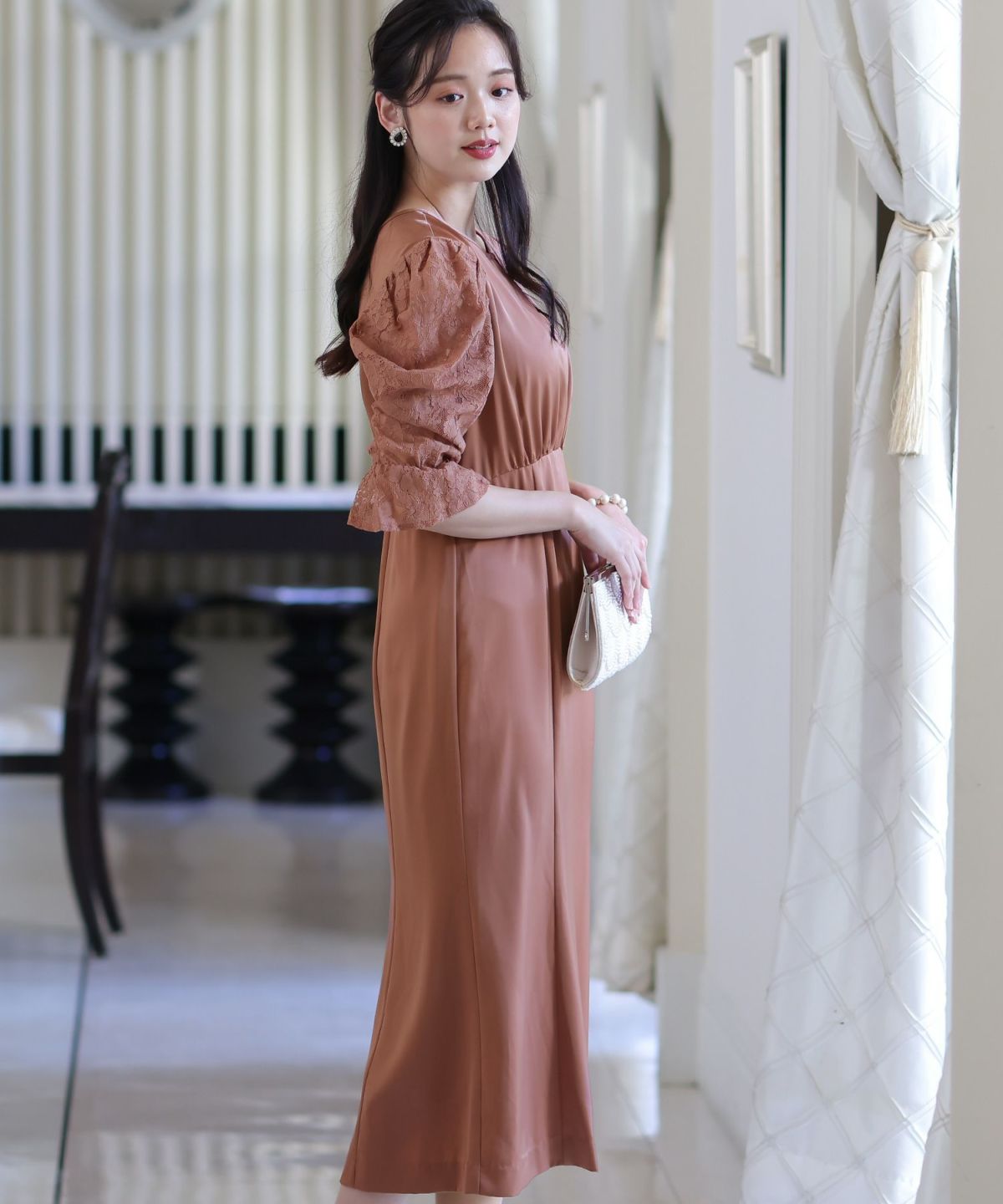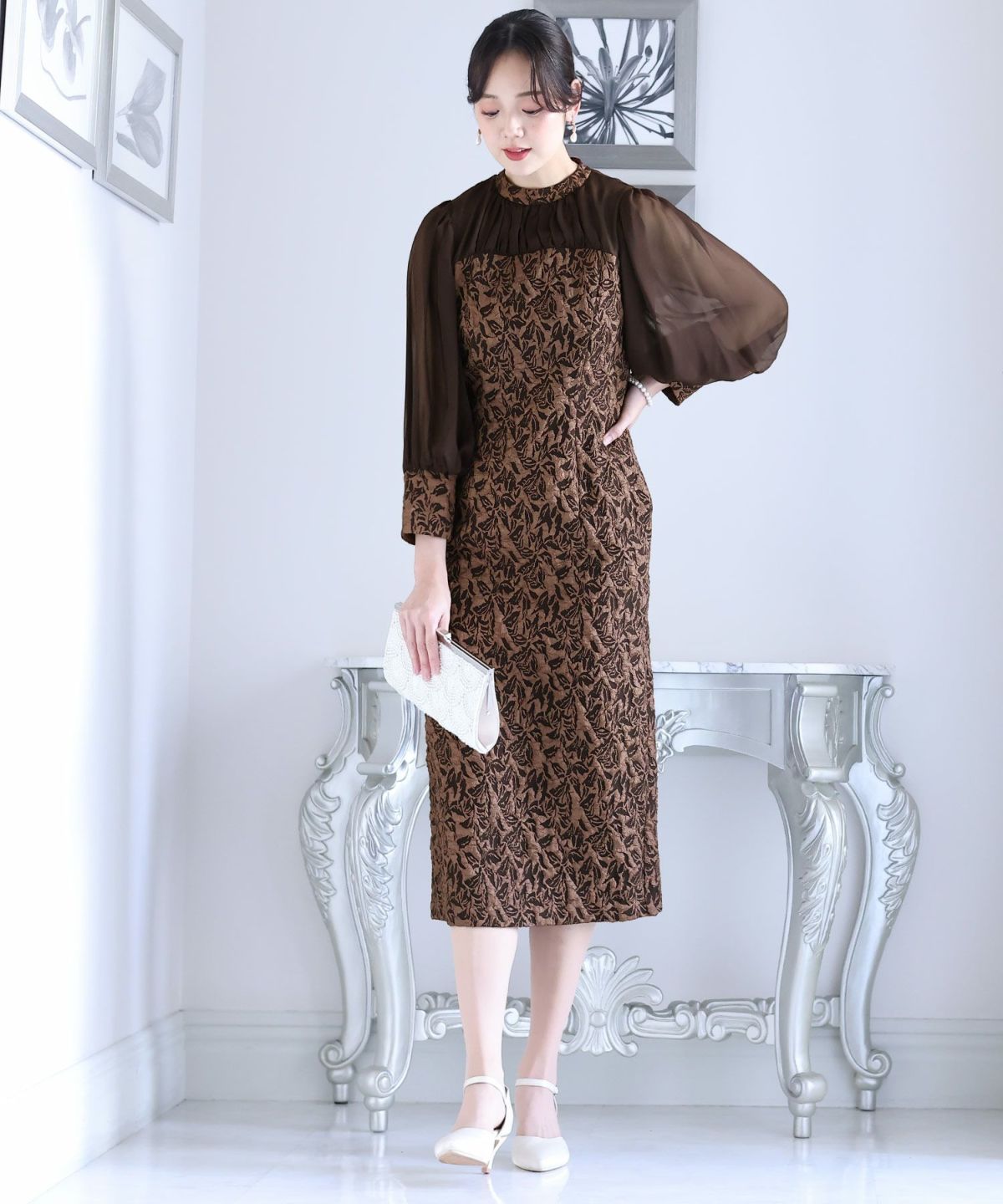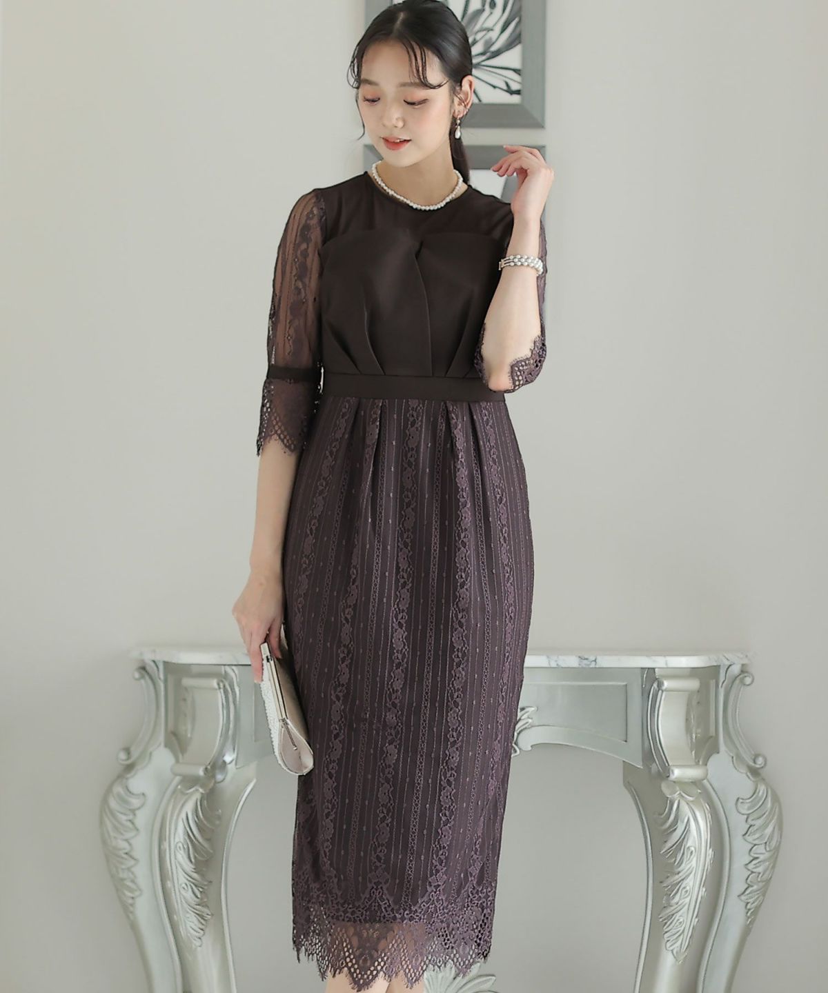 他の画像を見る デコルテの程よい透け感が大人っぽい雰囲気に ジャガードレース切り替えドレス 即日発送 SALE 定価 ¥ 18,800 販売価格 ¥ 9,350 税込 カートに入れる お気に入りに登録する
