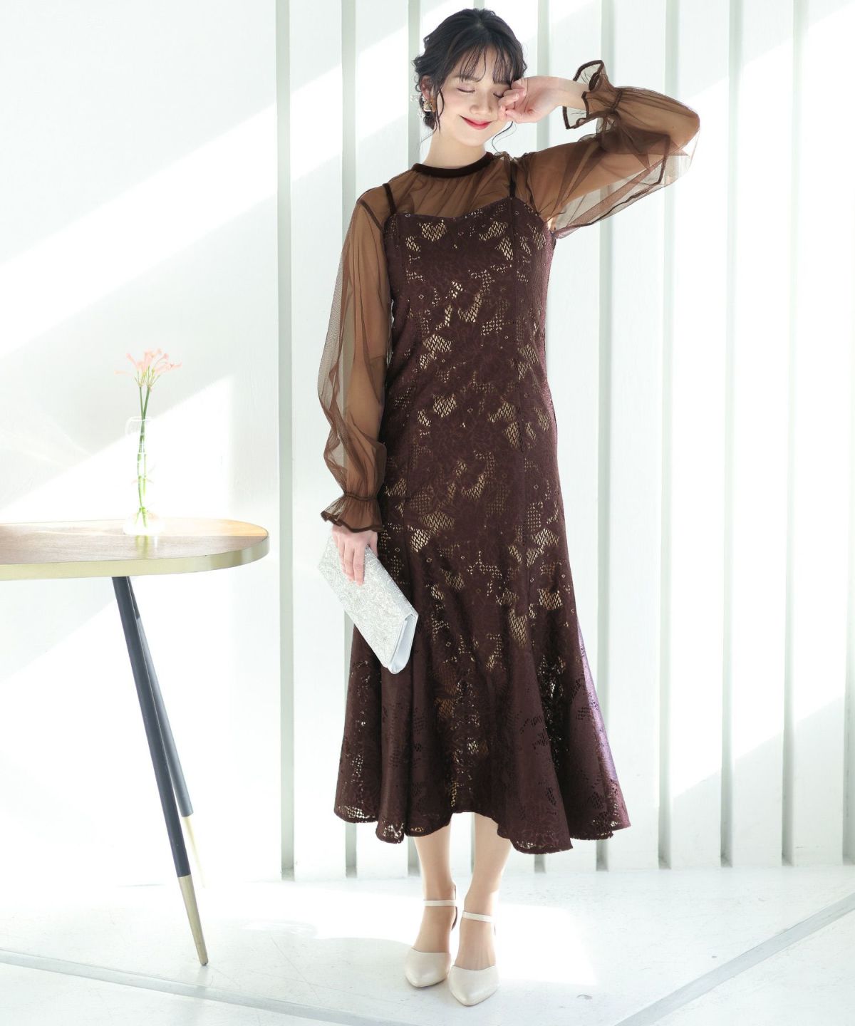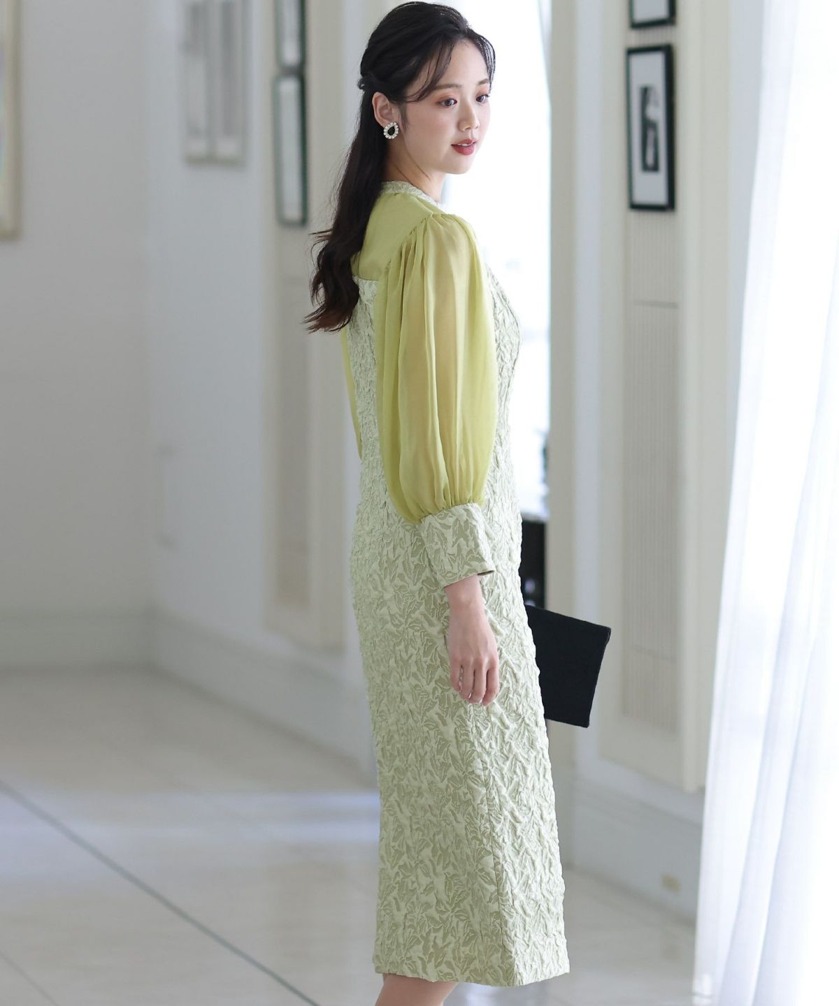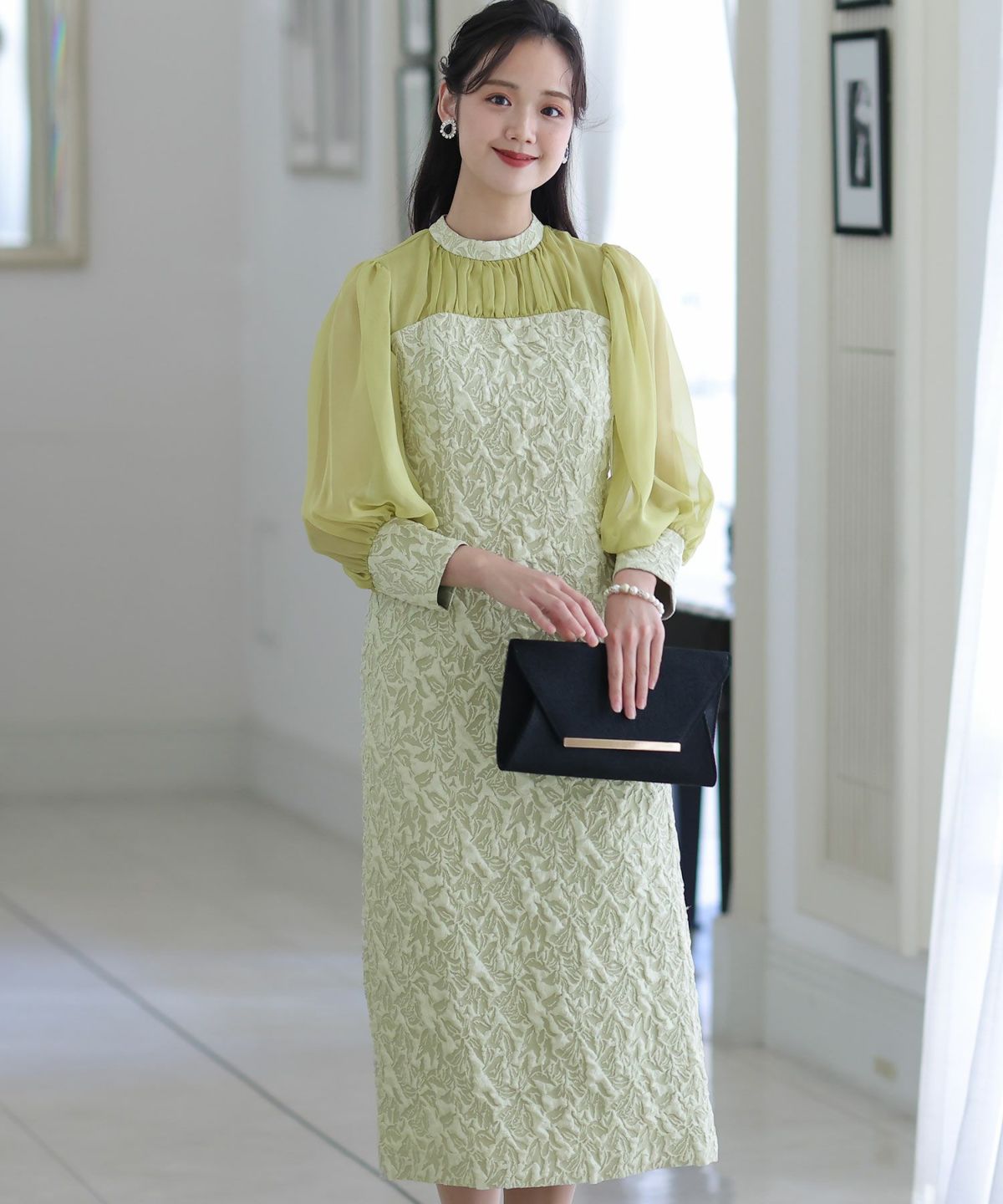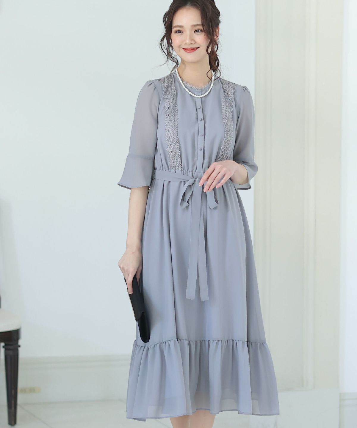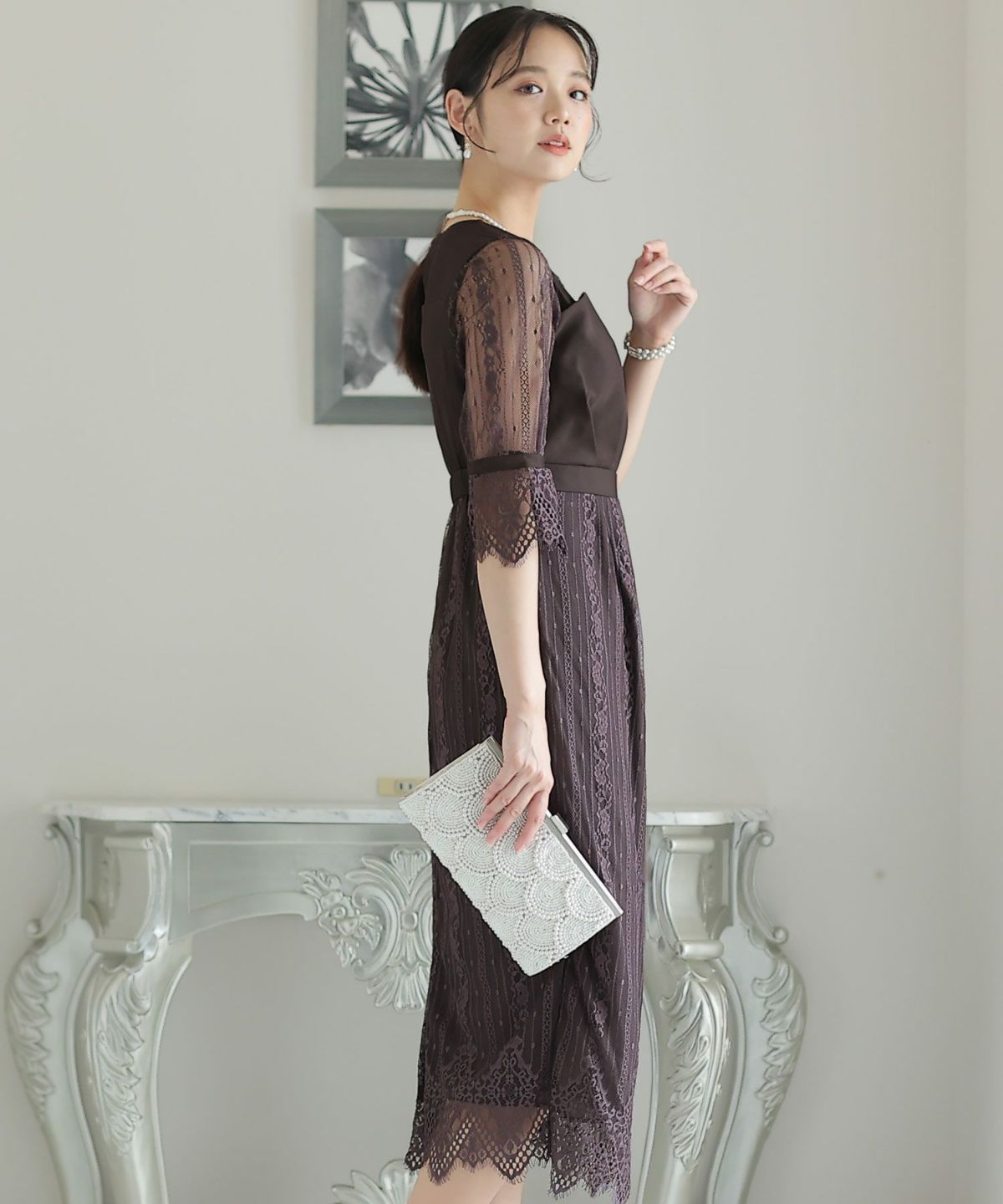 他の画像を見る デコルテの程よい透け感が大人っぽい雰囲気に ジャガードレース切り替えドレス 即日発送 SALE 定価 ¥ 18,800 販売価格 ¥ 9,350 税込 カートに入れる お気に入りに登録する