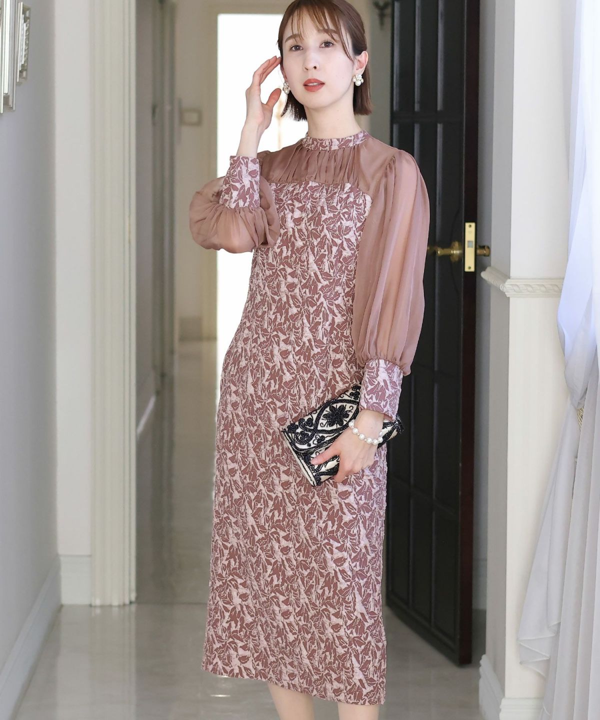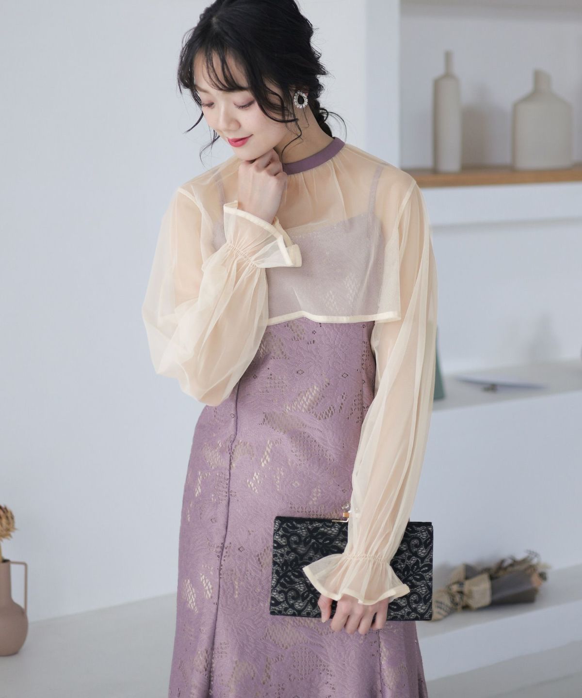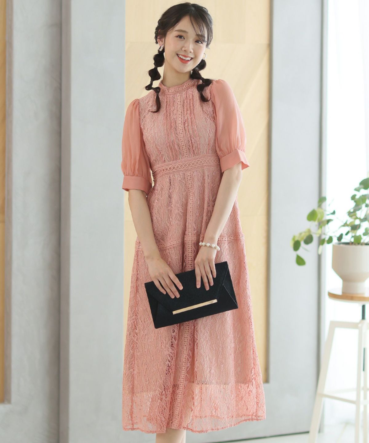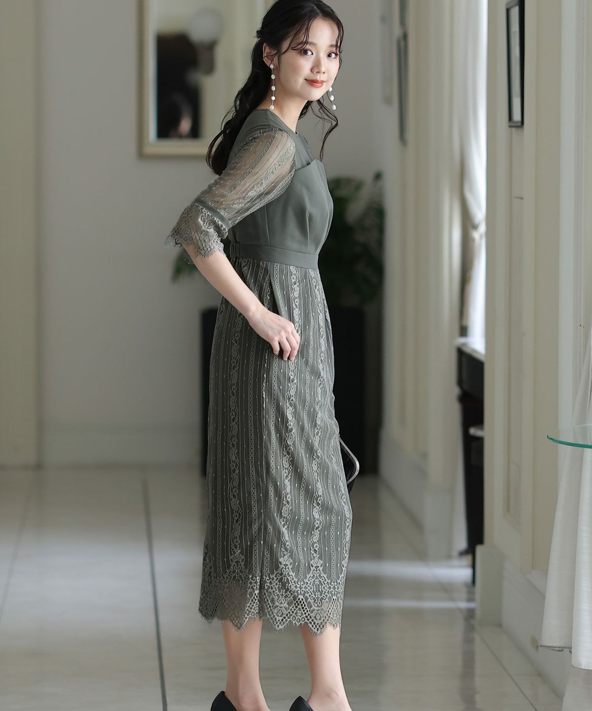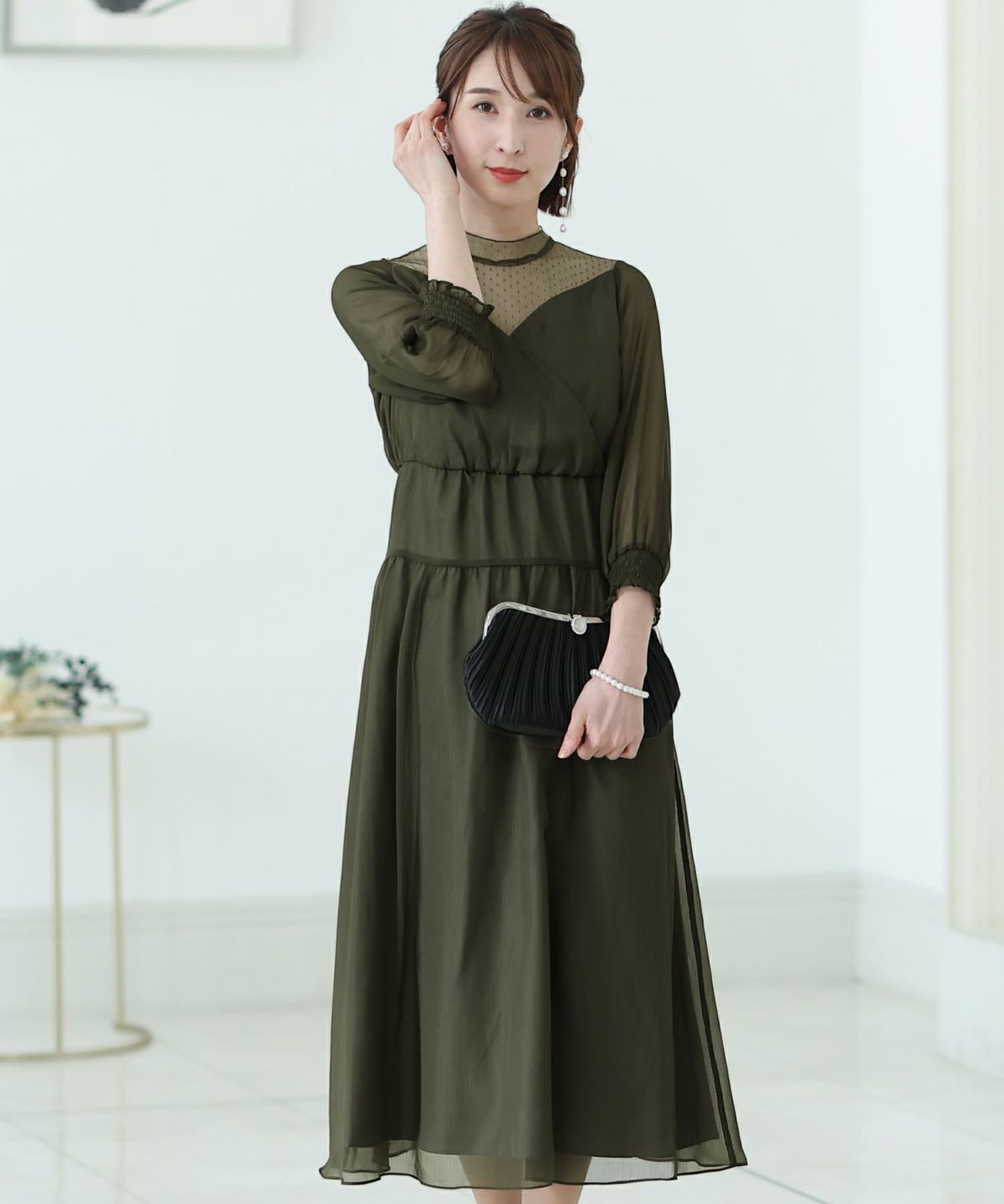 他の画像を見る デコルテの程よい透け感が大人っぽい雰囲気に ジャガードレース切り替えドレス 即日発送 SALE 定価 ¥ 18,800 販売価格 ¥ 9,350 税込 カートに入れる お気に入りに登録する