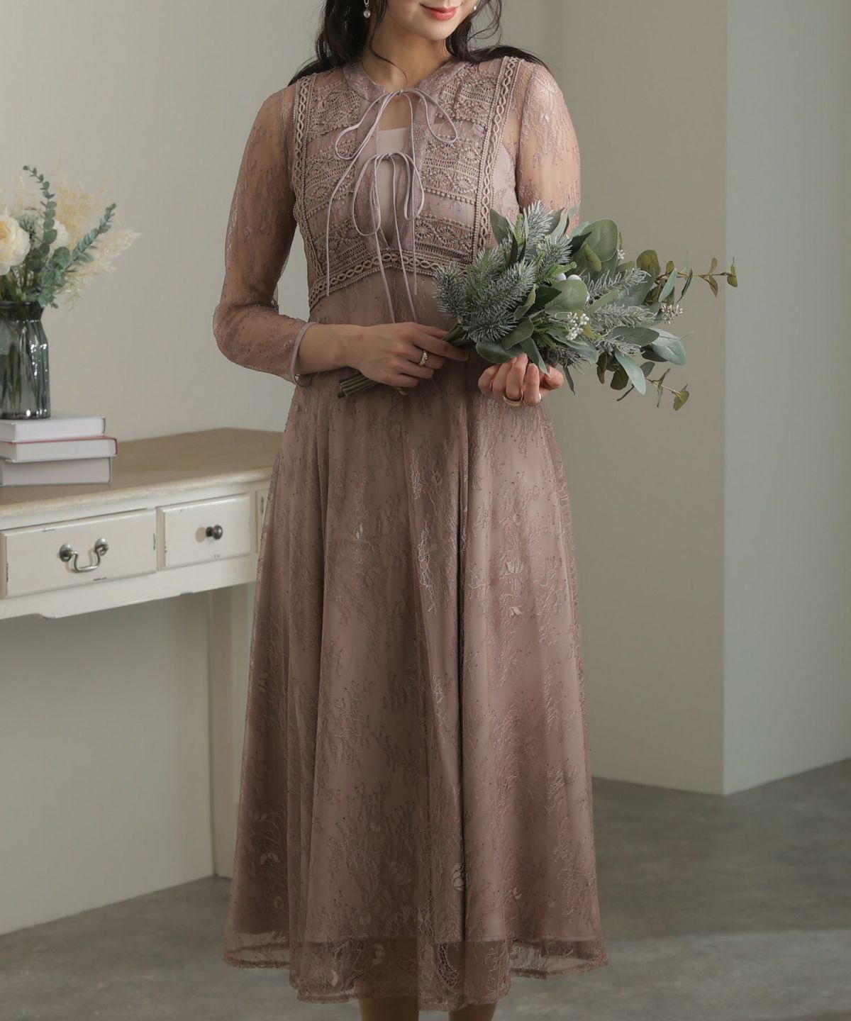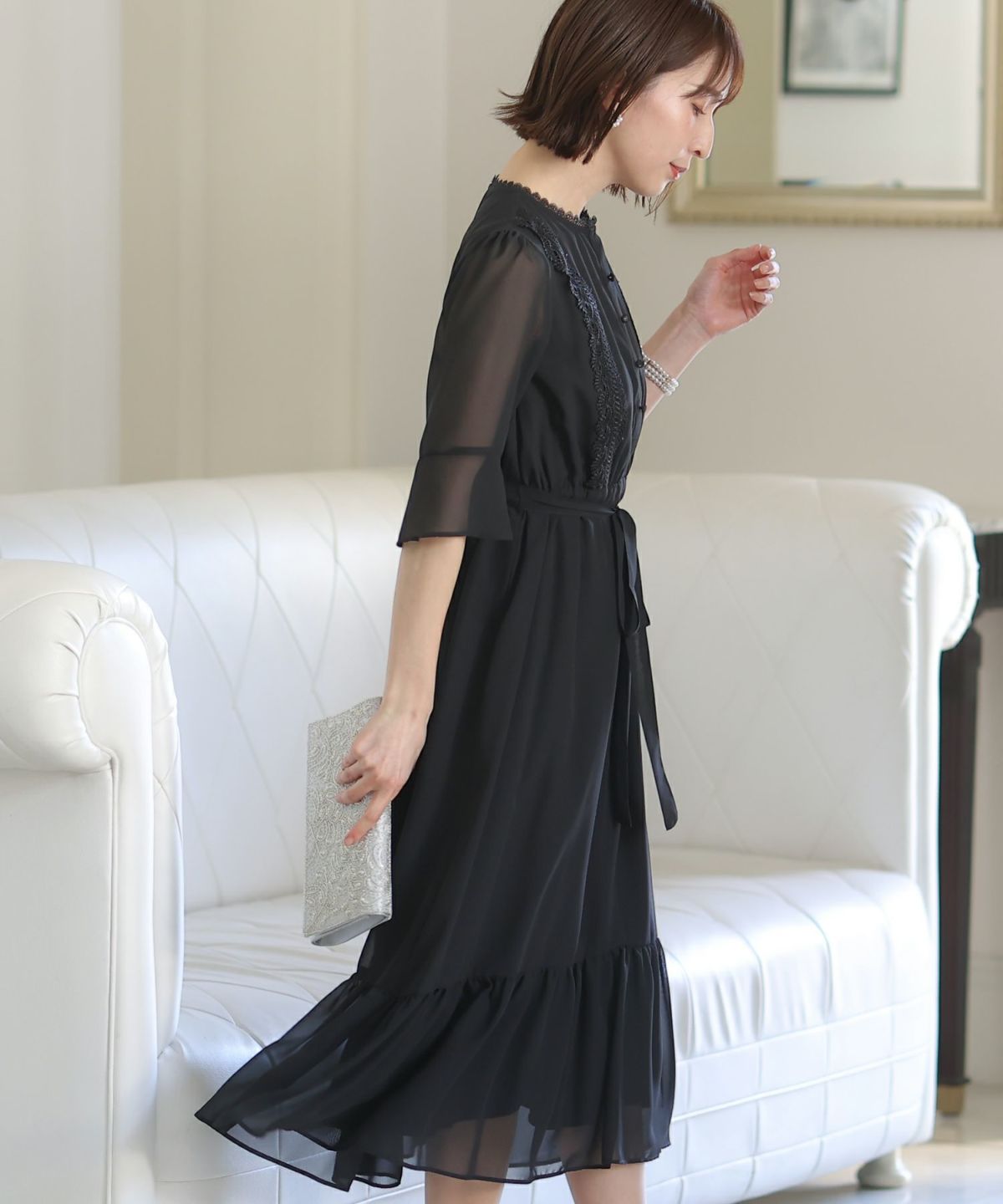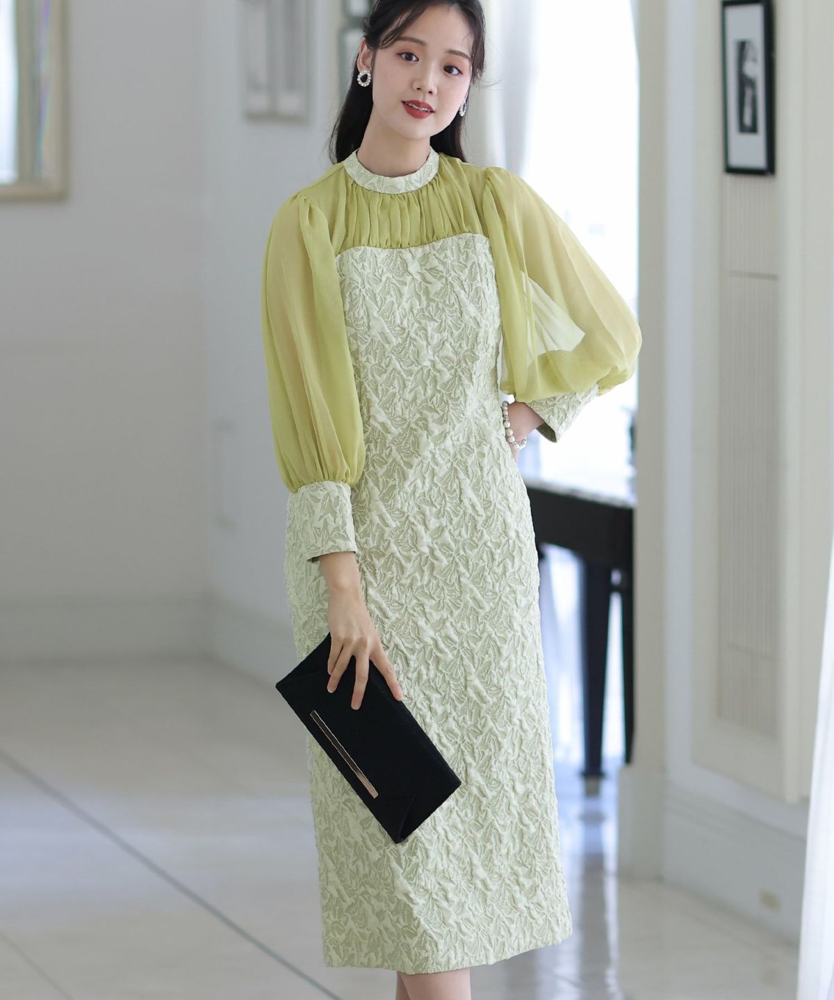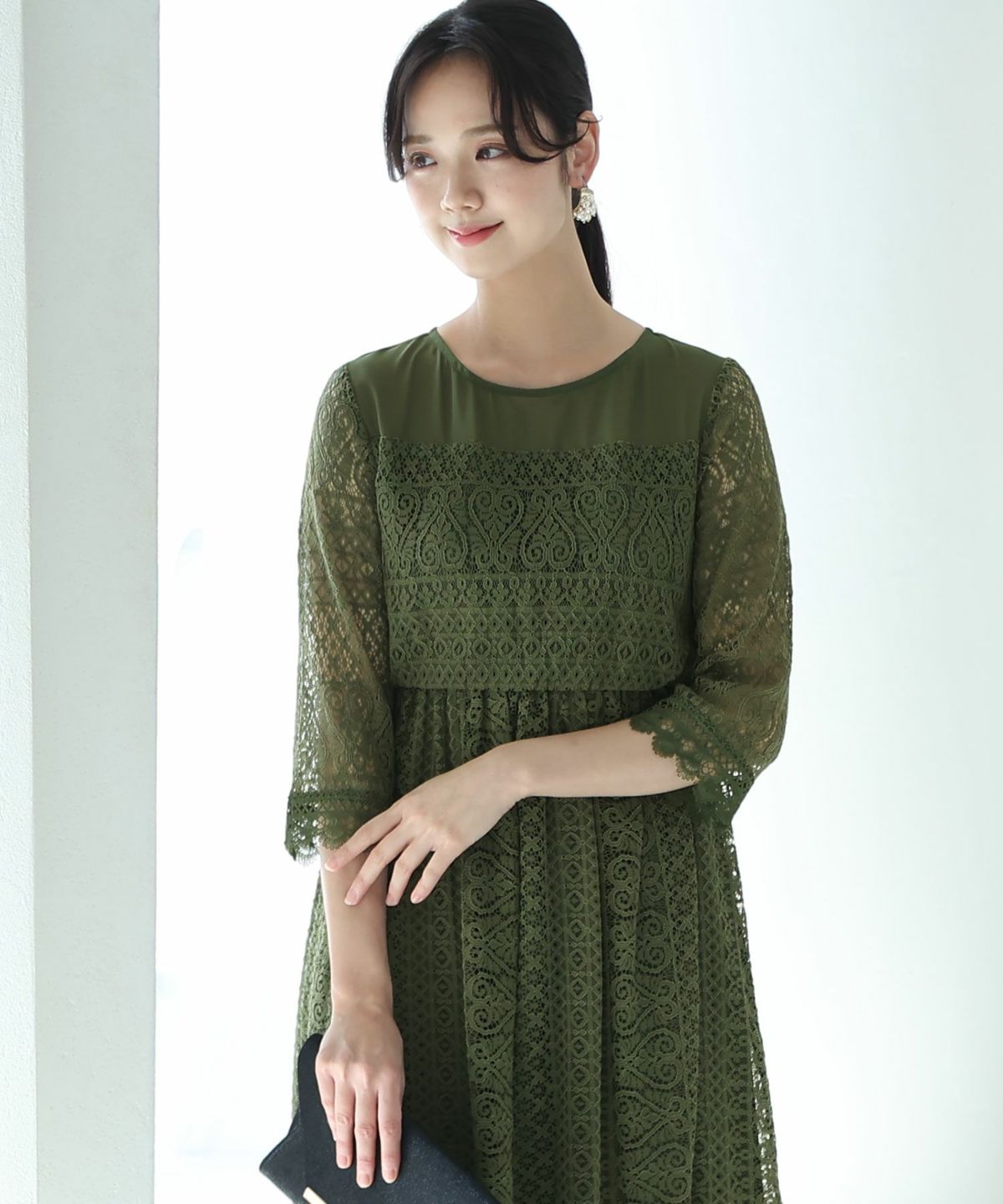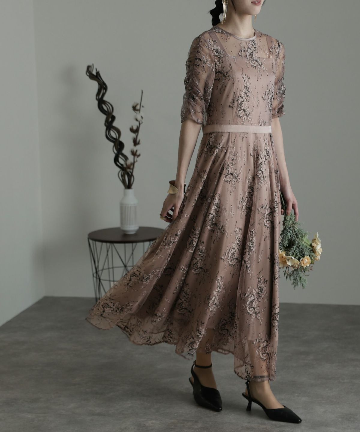 他の画像を見る デコルテの程よい透け感が大人っぽい雰囲気に ジャガードレース切り替えドレス 即日発送 SALE 定価 ¥ 18,800 販売価格 ¥ 9,350 税込 カートに入れる お気に入りに登録する