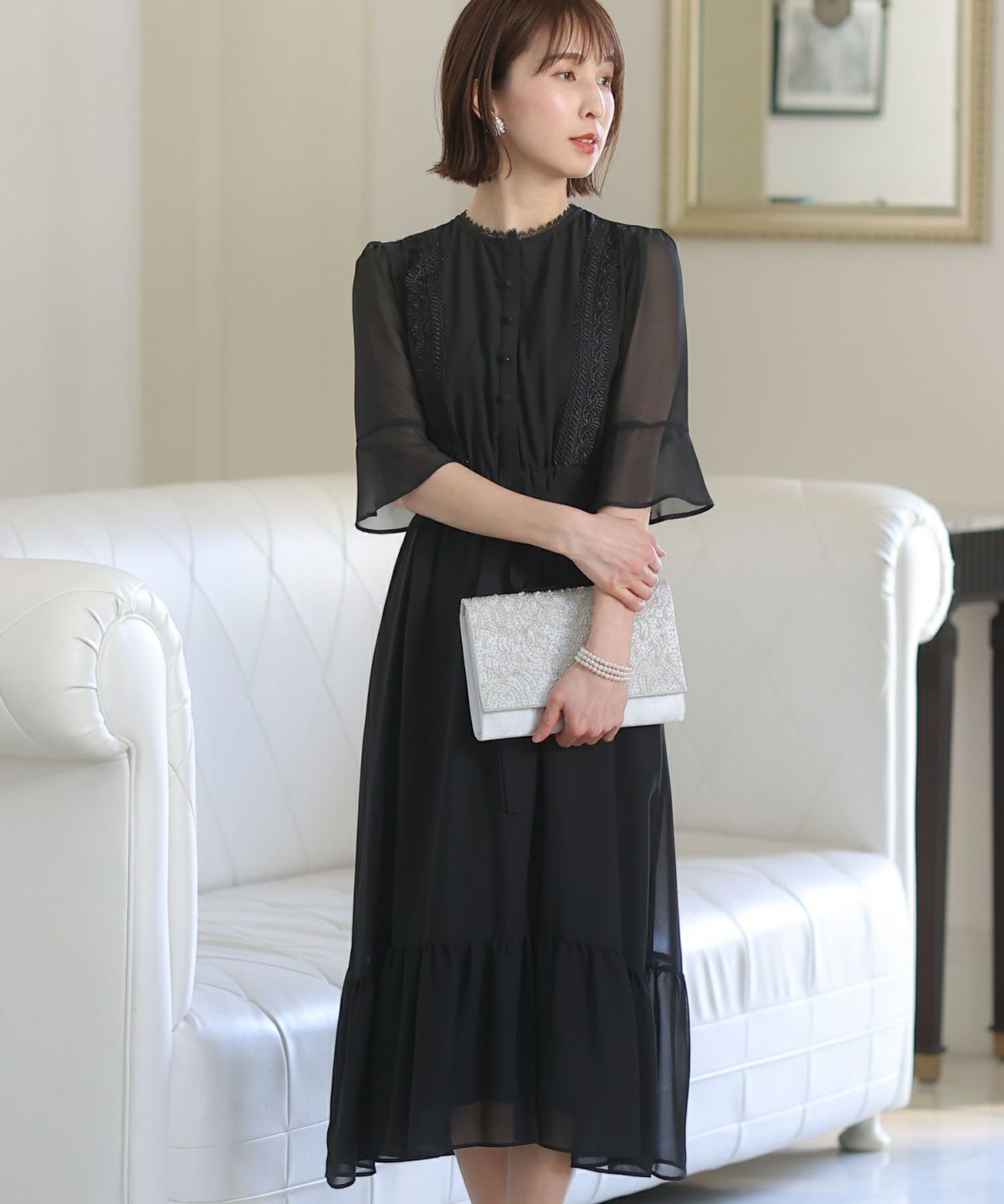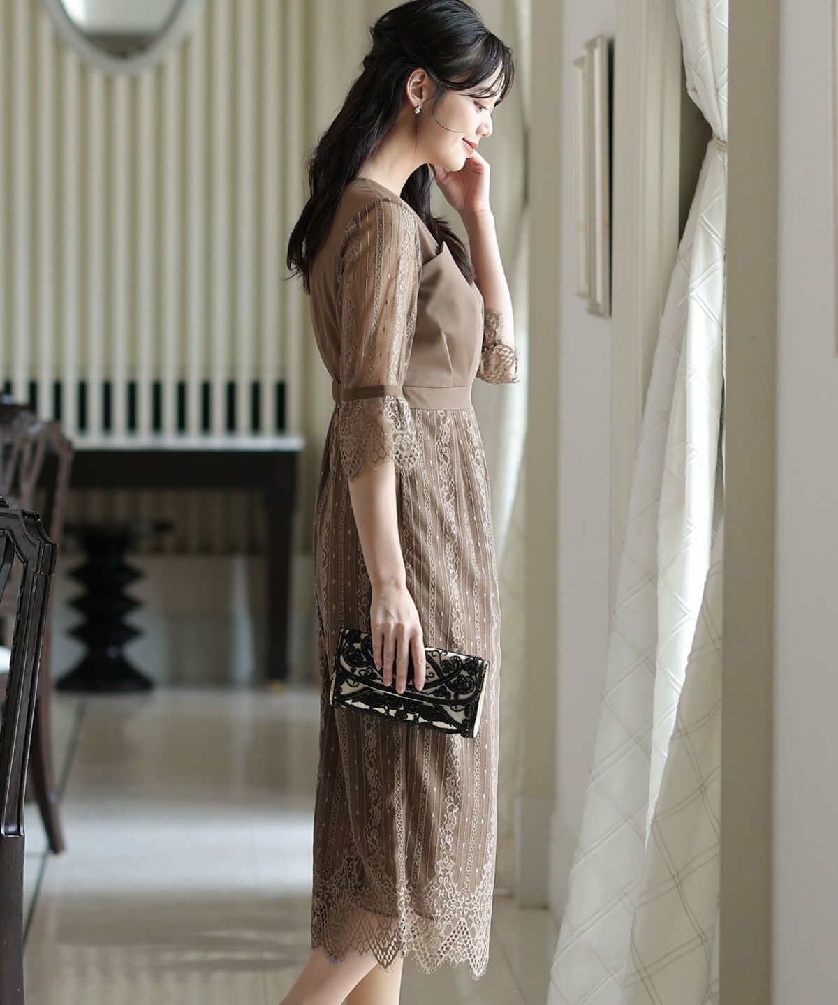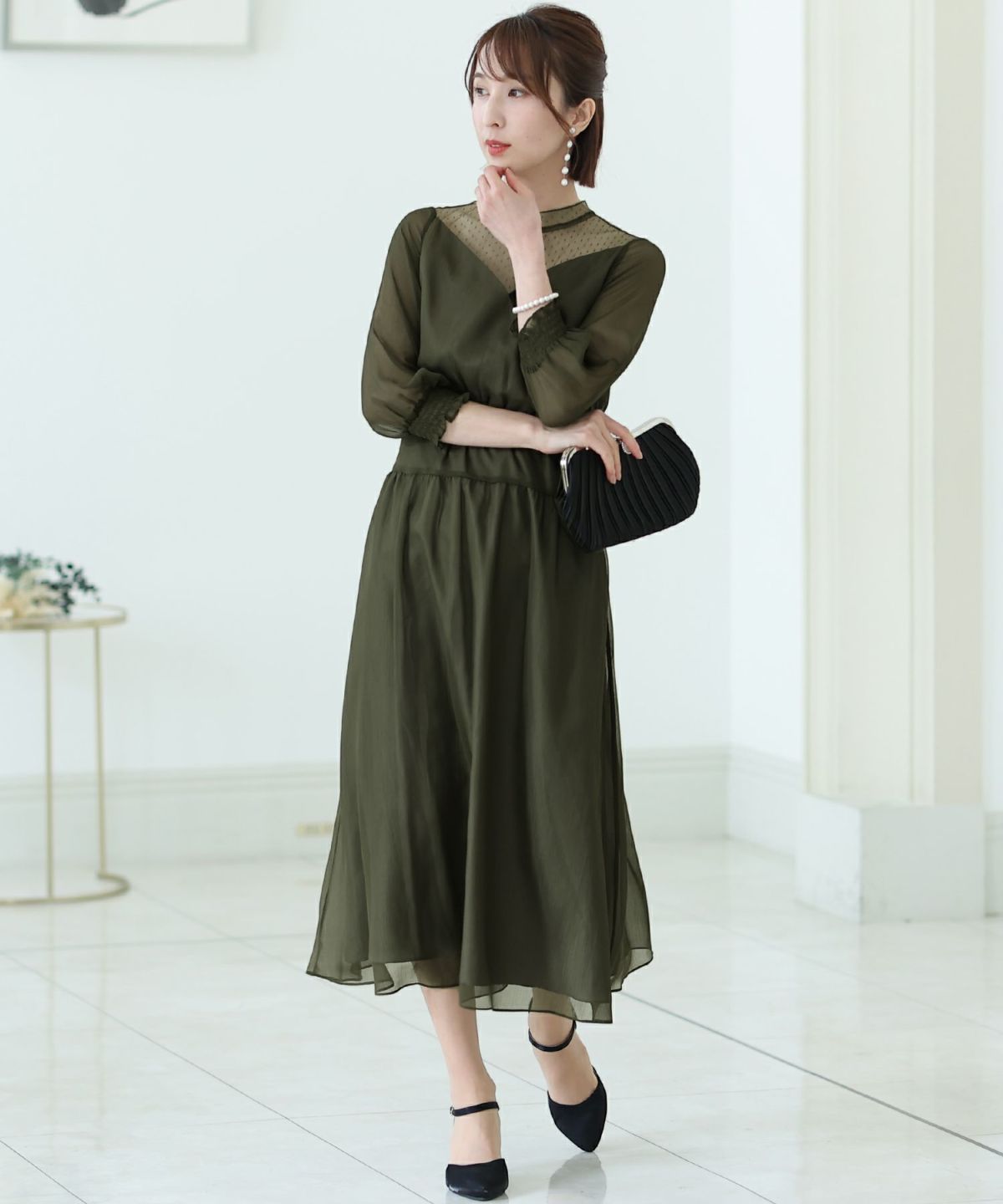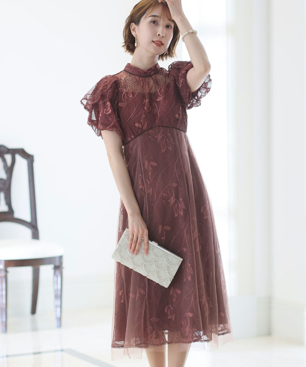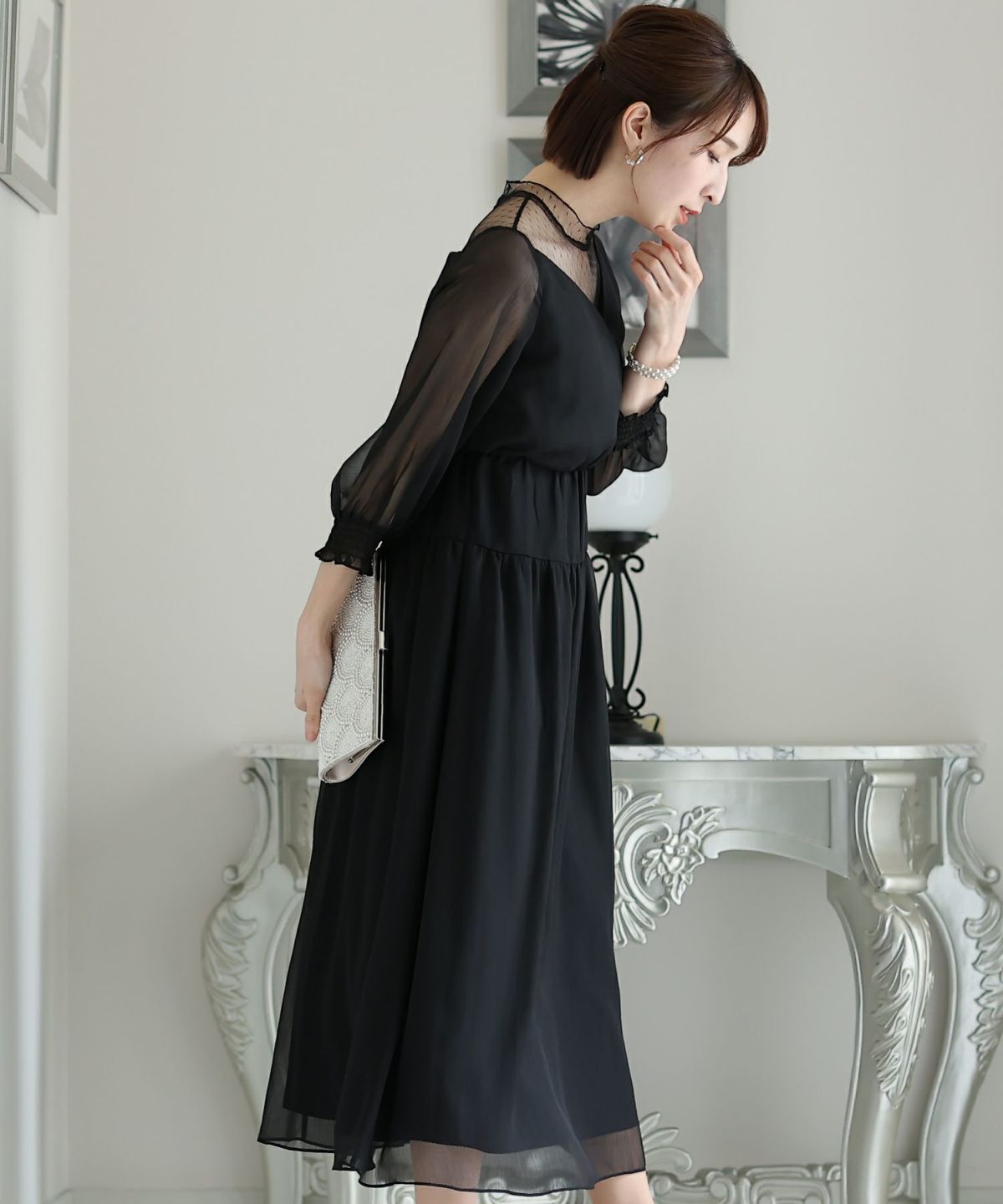 他の画像を見る デコルテの程よい透け感が大人っぽい雰囲気に ジャガードレース切り替えドレス 即日発送 SALE 定価 ¥ 18,800 販売価格 ¥ 9,350 税込 カートに入れる お気に入りに登録する