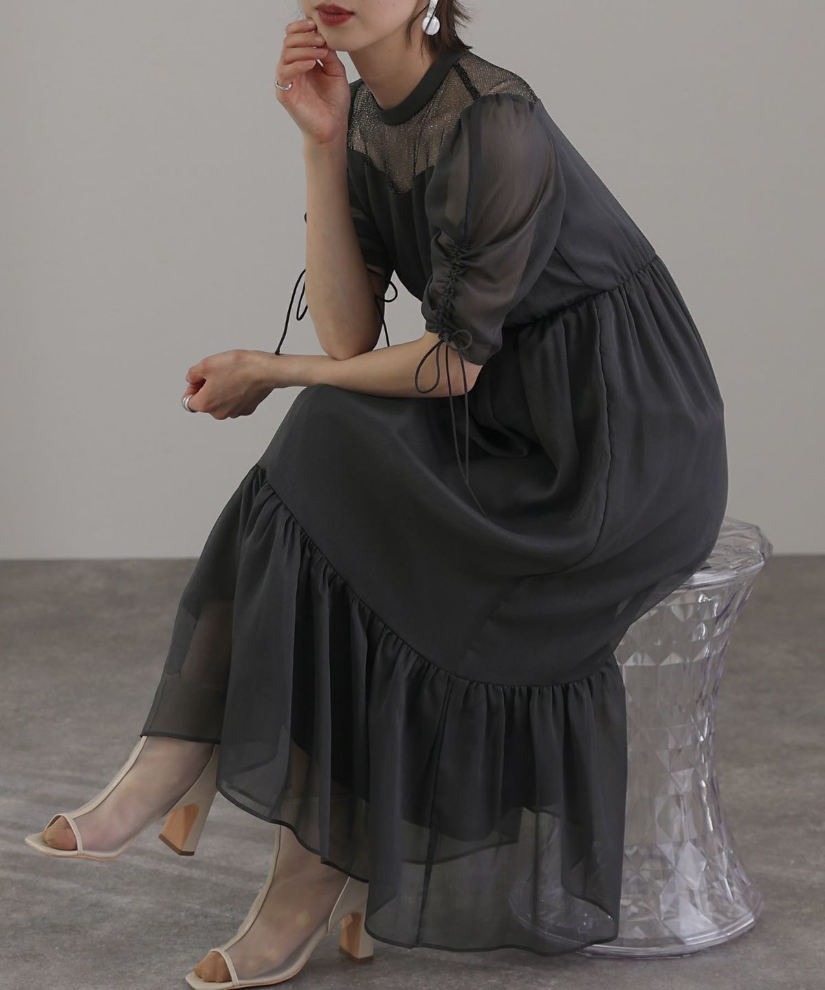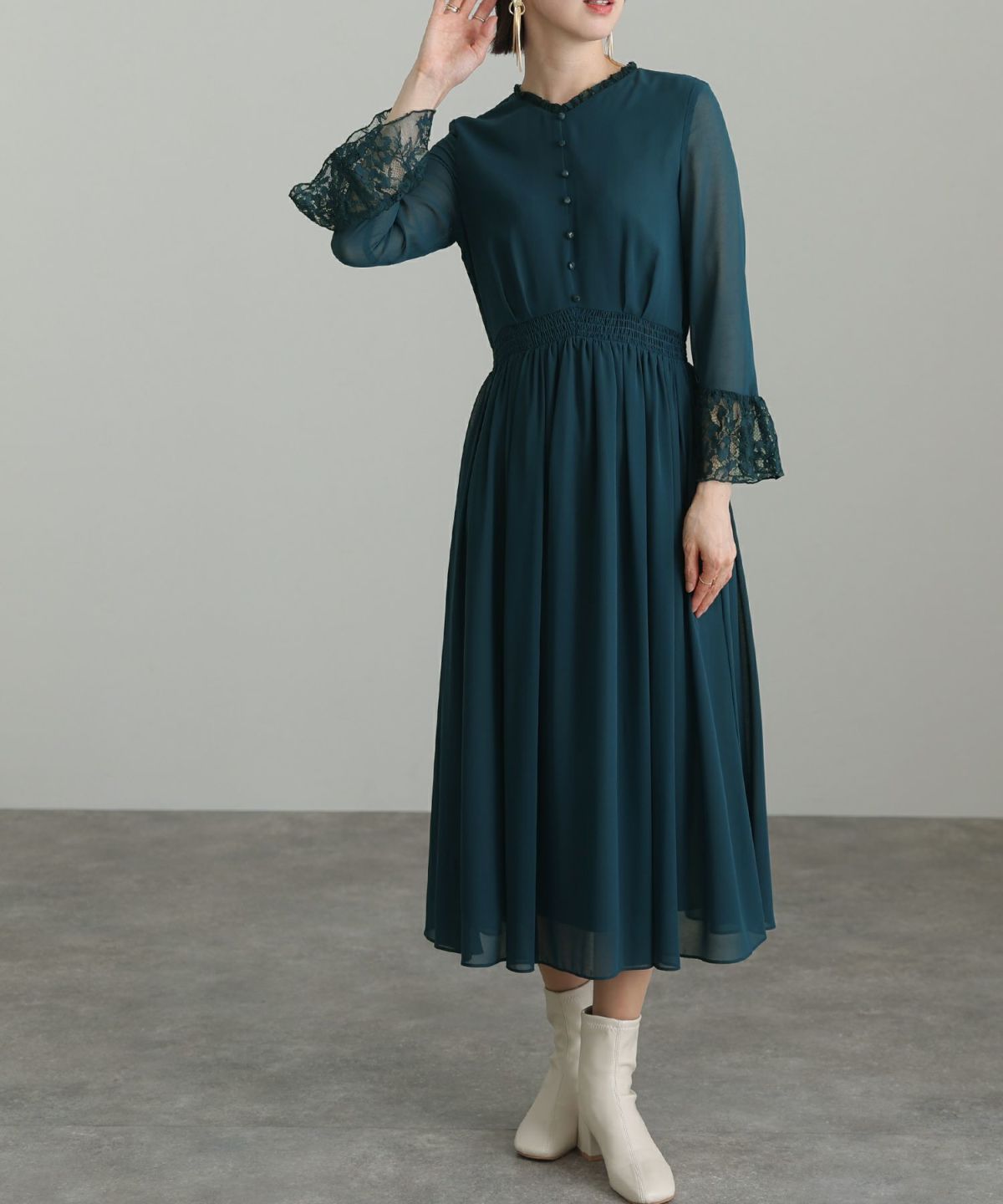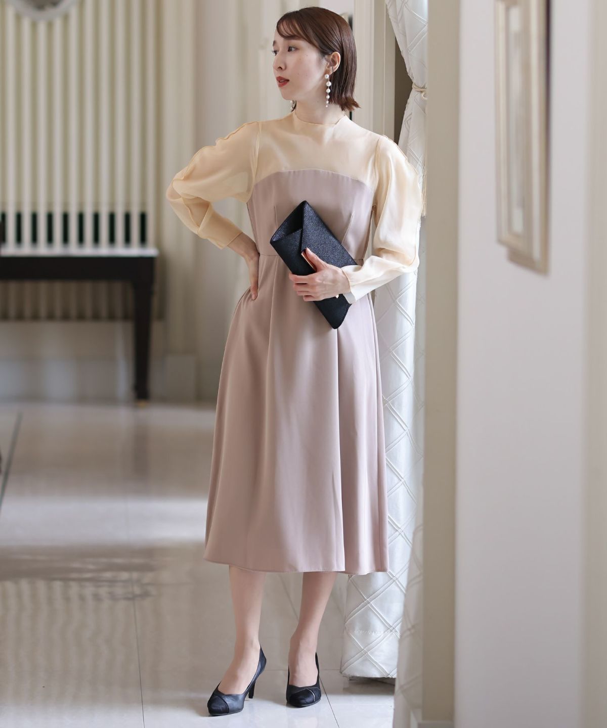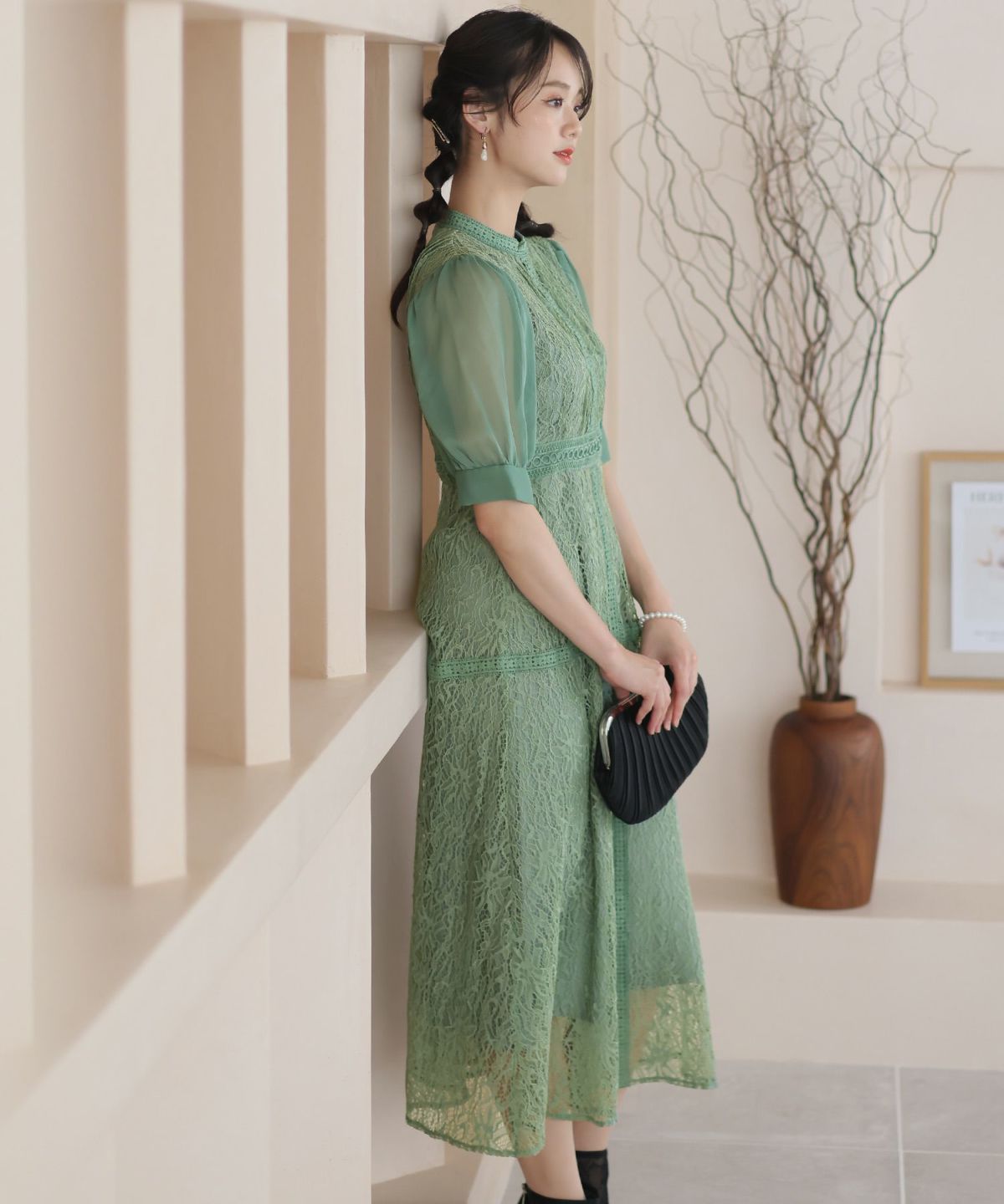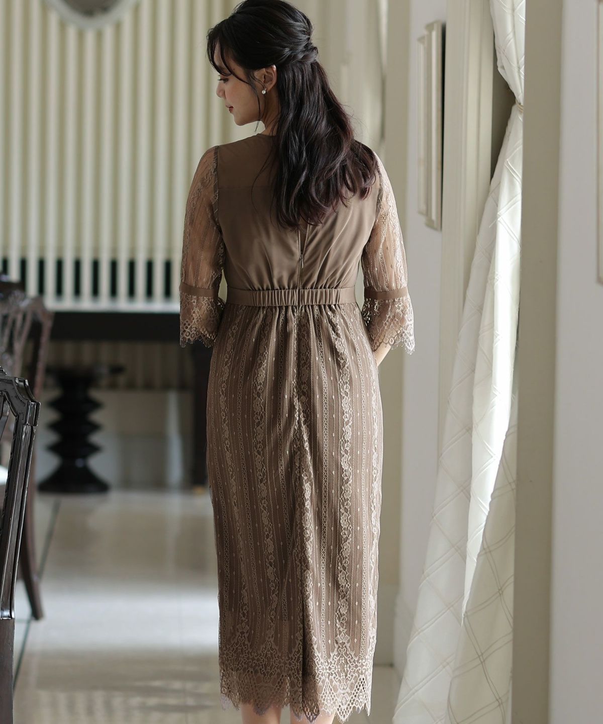 他の画像を見る デコルテの程よい透け感が大人っぽい雰囲気に ジャガードレース切り替えドレス 即日発送 SALE 定価 ¥ 18,800 販売価格 ¥ 9,350 税込 カートに入れる お気に入りに登録する
