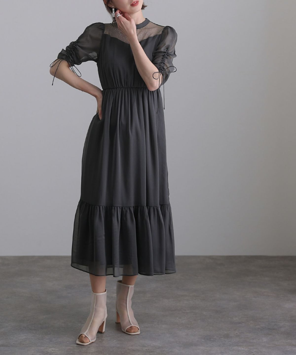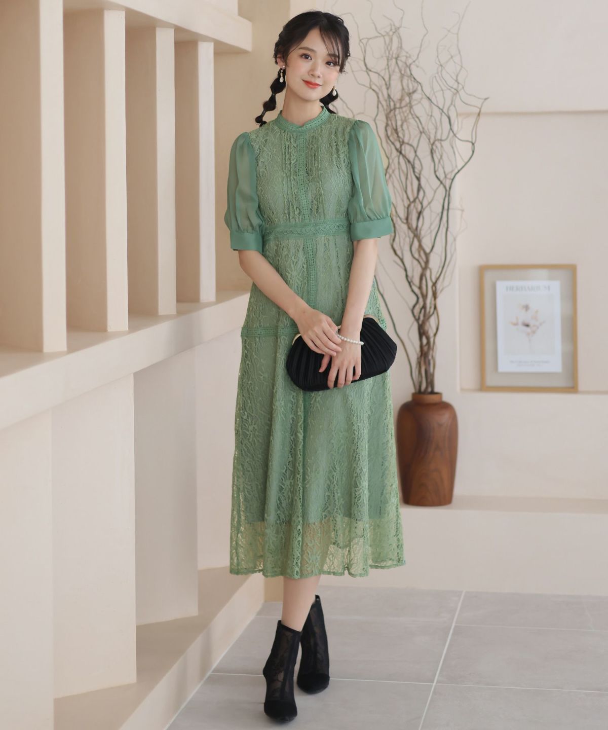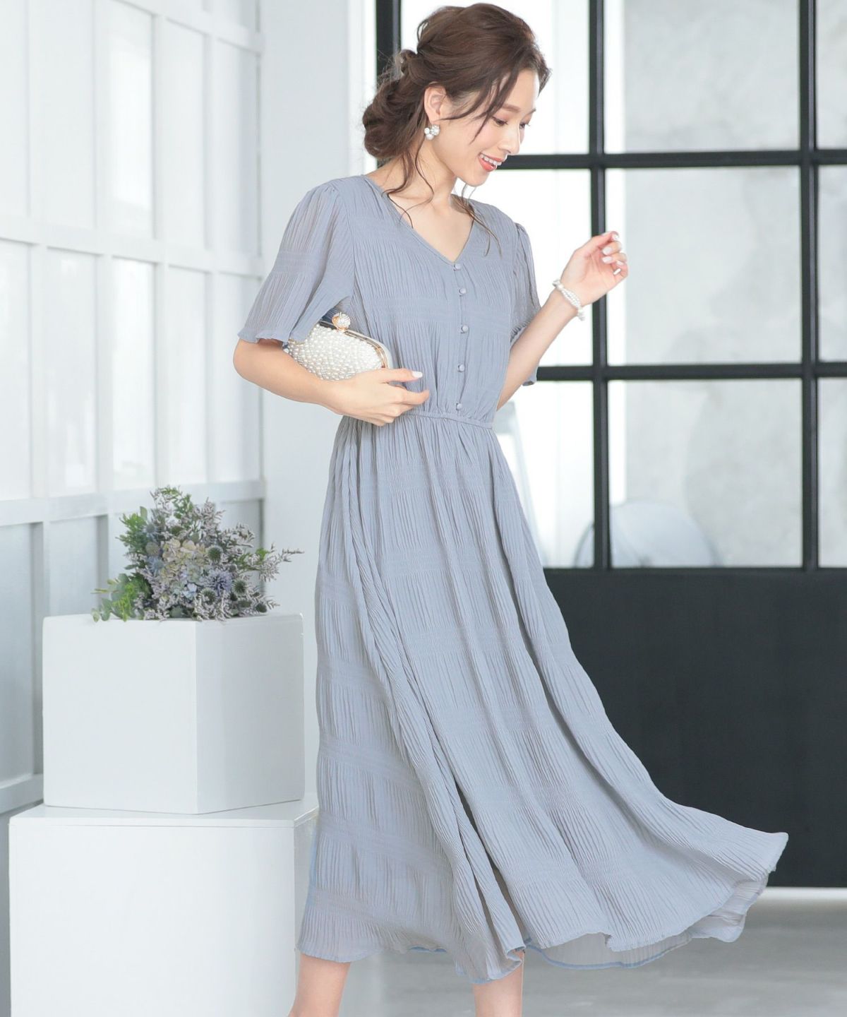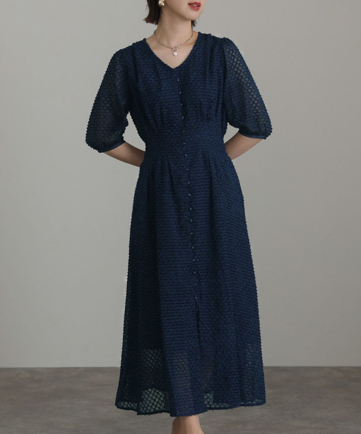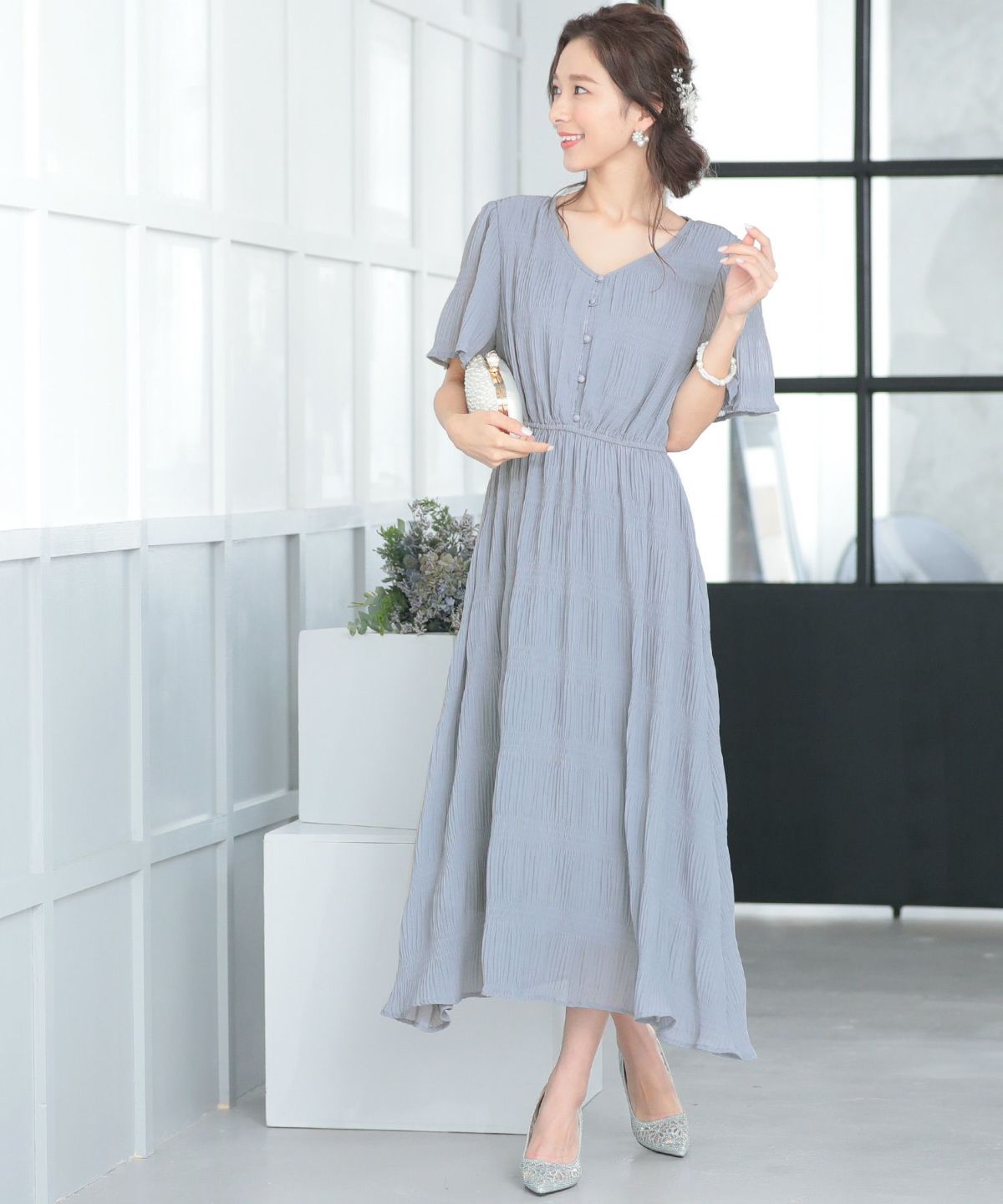 他の画像を見る デコルテの程よい透け感が大人っぽい雰囲気に ジャガードレース切り替えドレス 即日発送 SALE 定価 ¥ 18,800 販売価格 ¥ 9,350 税込 カートに入れる お気に入りに登録する