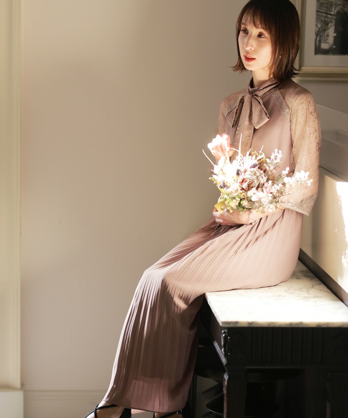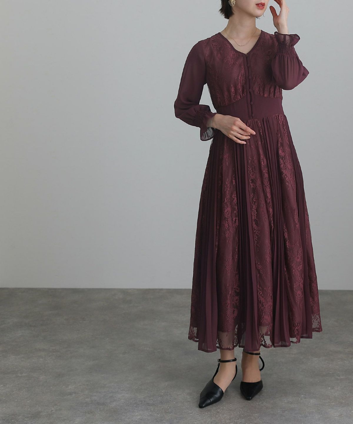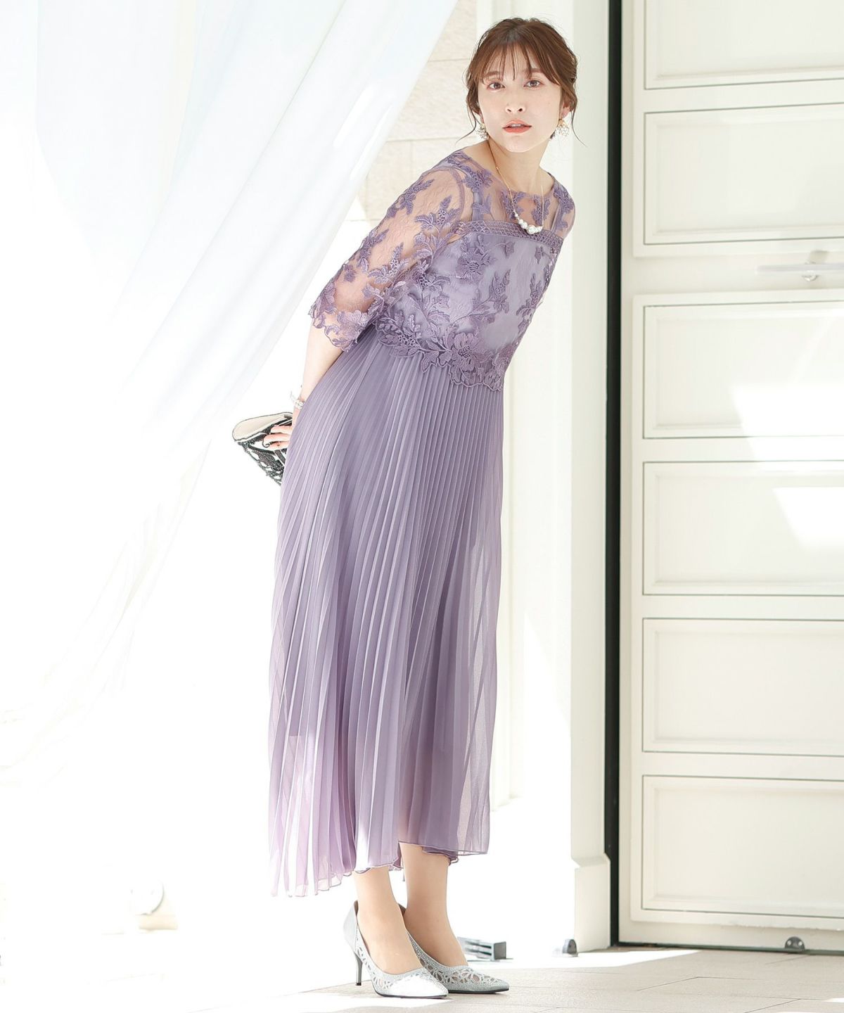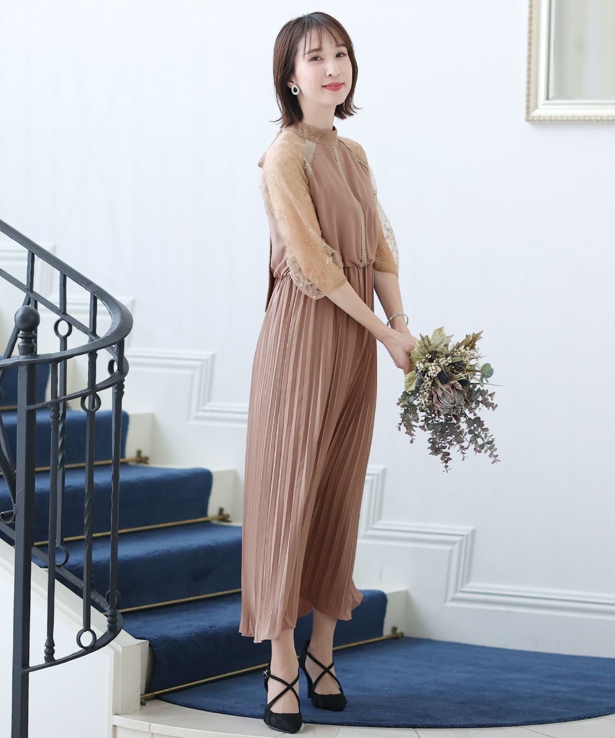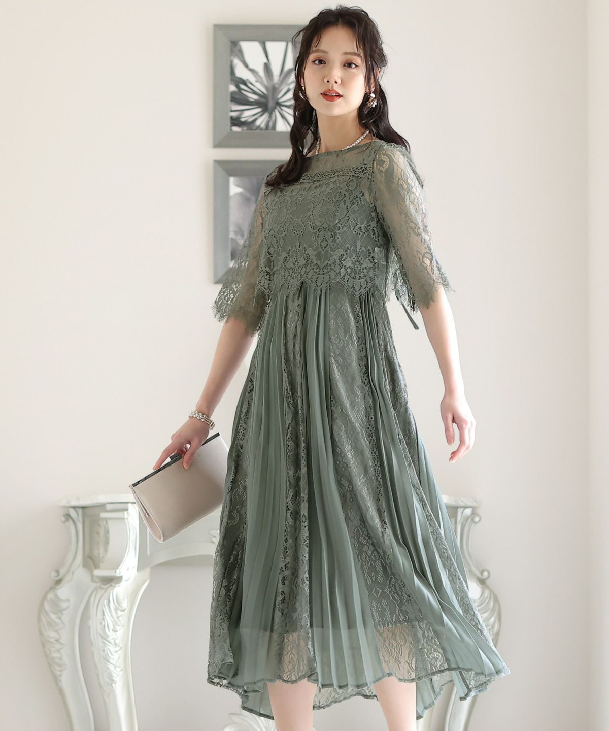 他の画像を見る プリーツ&レースの切り替えデザインで華やかに シアーレースフレアドレス SALE 2~4営業日以内発送 定価 ¥ 20,900 販売価格 ¥ 10,000 税込 カートに入れる お気に入りに登録する