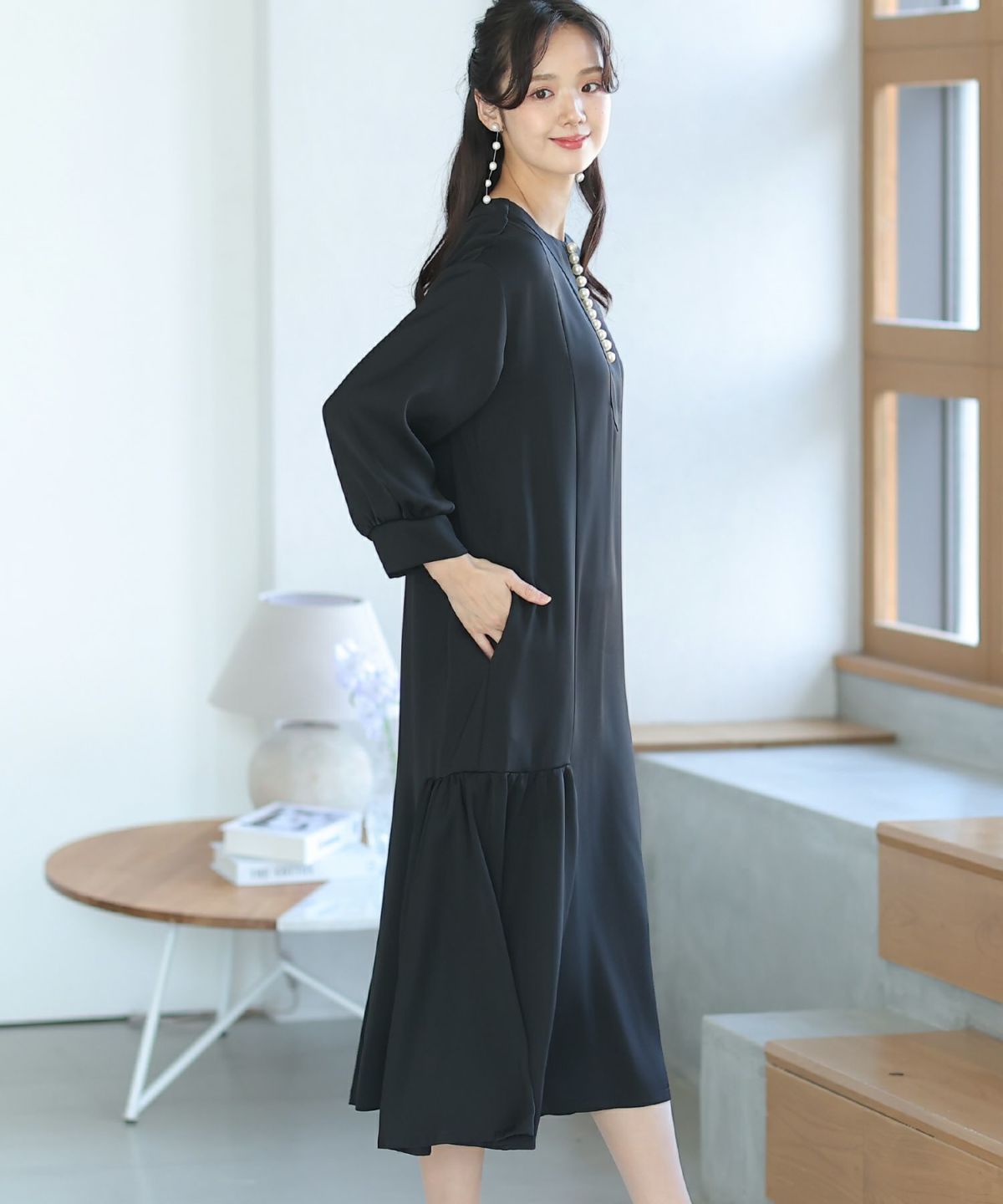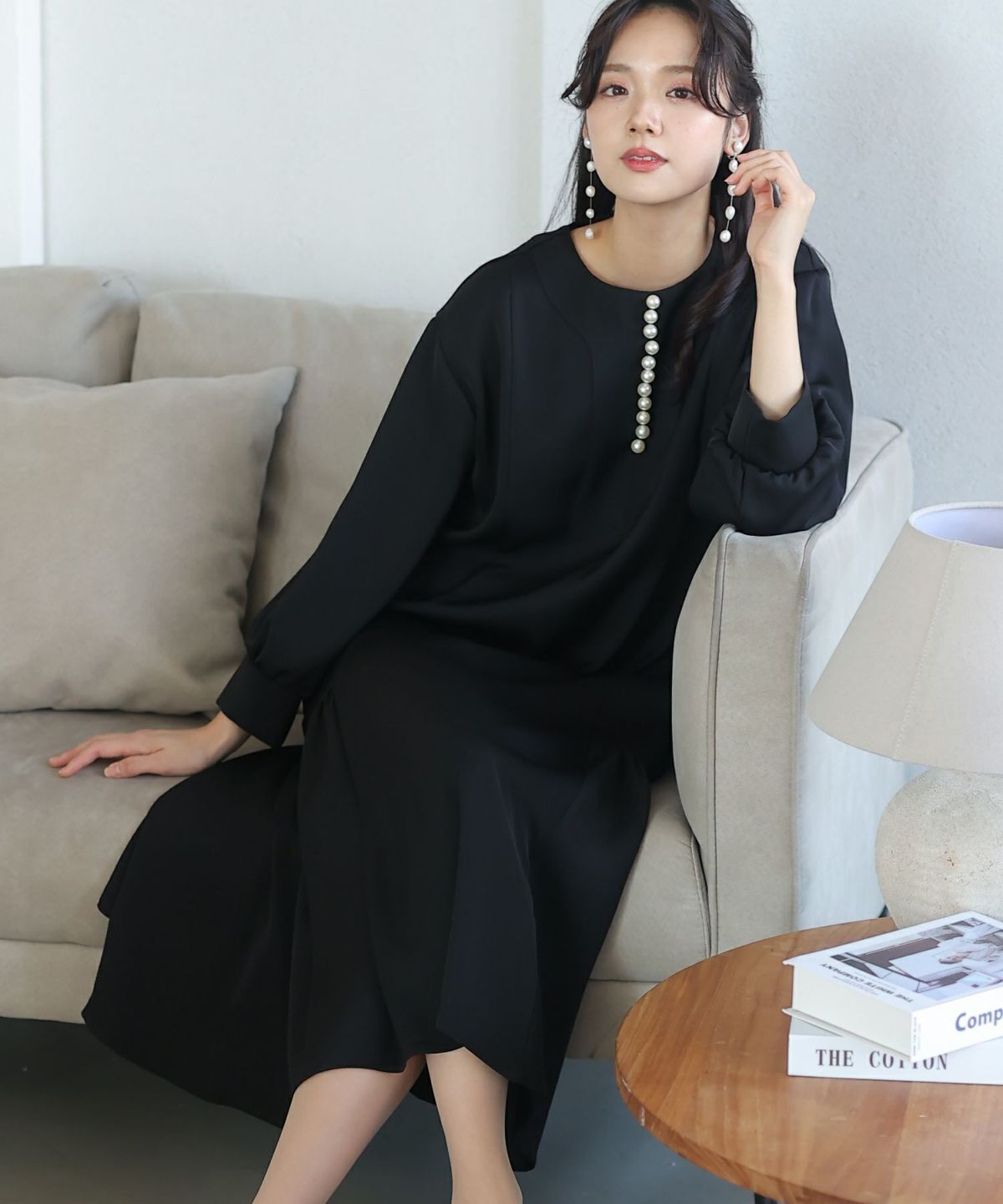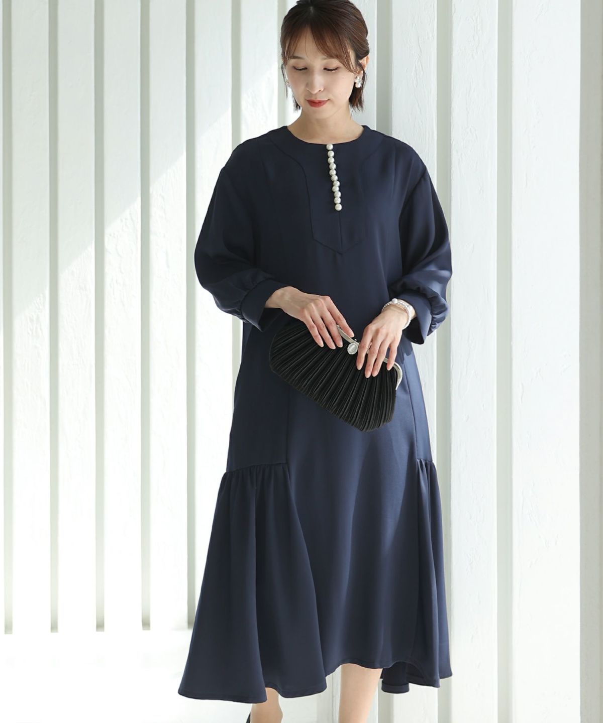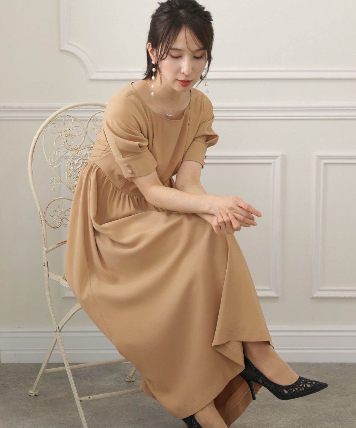 他の画像を見る スカート裾のギャザー切り替えデザインがお洒落 フロントパールサイドギャザーワンピース SALE 1~3営業日以内発送 定価 ¥ 19,800 販売価格 ¥ 7,980 税込 カートに入れる お気に入りに登録する