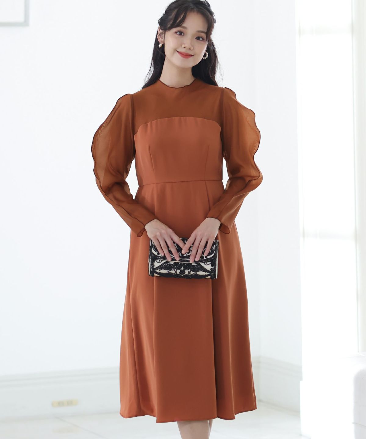 他の画像を見る フィッシュテールのスカートが上品なフェミニンドレス シフォン切替スリーブAラインワンピース 即日発送 SALE 定価 ¥ 18,300 販売価格 ¥ 7,980 税込 カートに入れる お気に入りに登録する