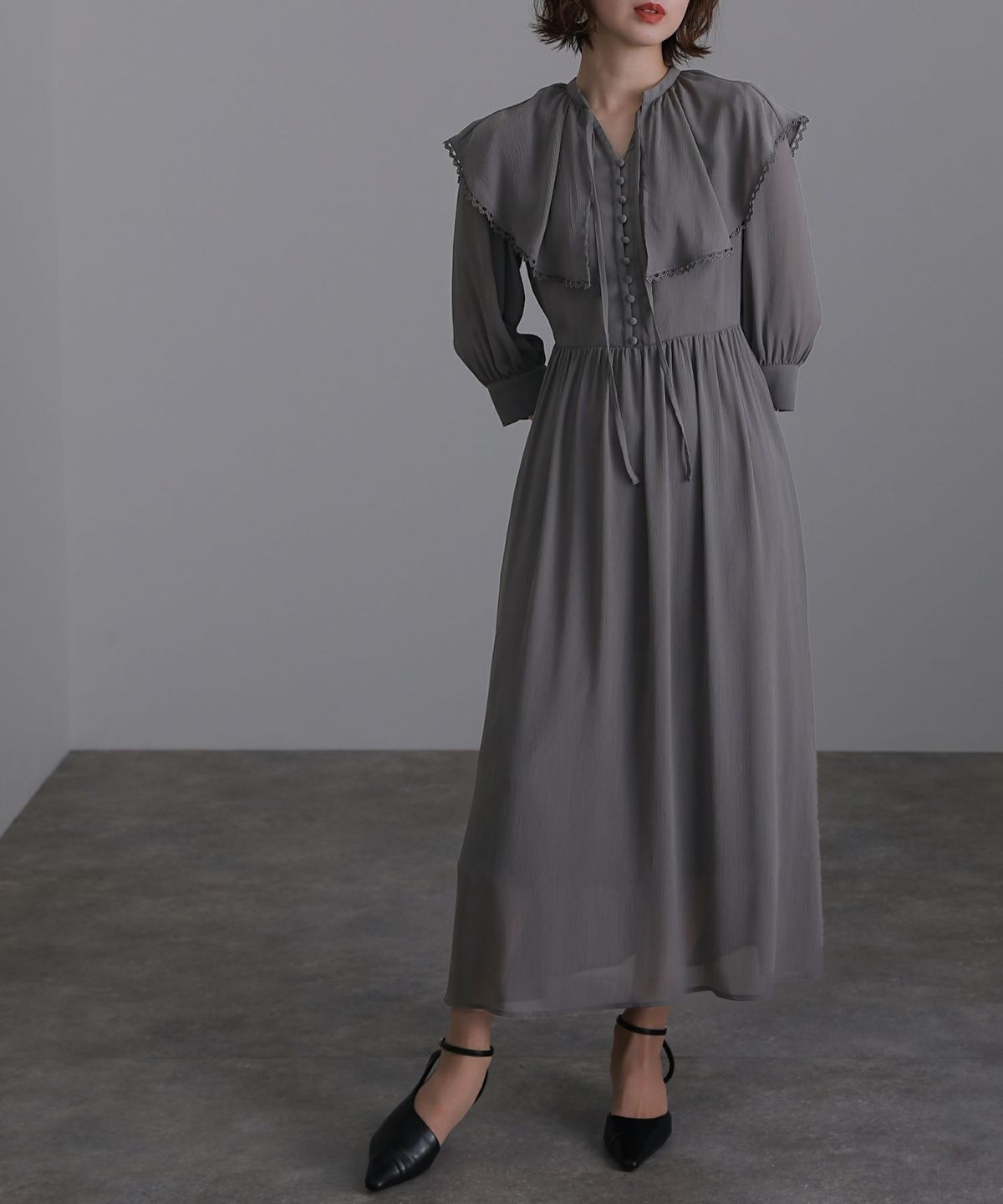 他の画像を見る ネックラインとウエストにあるフリルが大人可愛い フロントピンタックシフォンワンピース 即日発送 SALE 定価 ¥ 19,800 販売価格 ¥ 7,980 税込 カートに入れる お気に入りに登録する