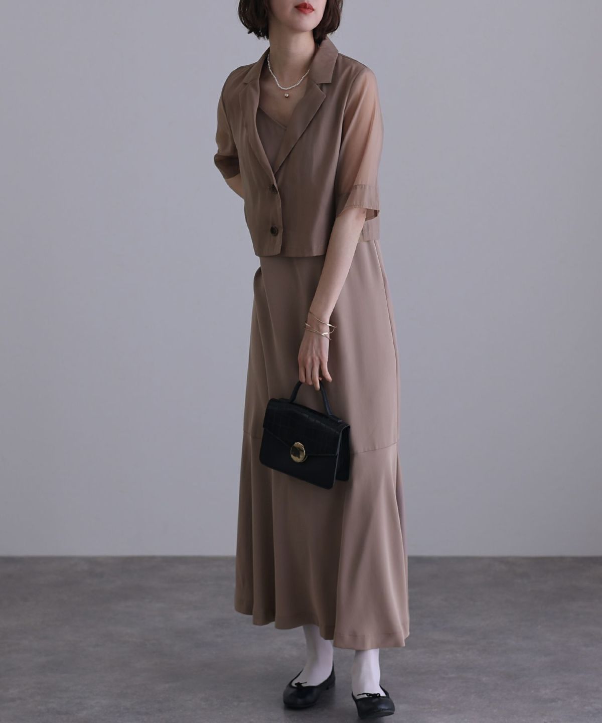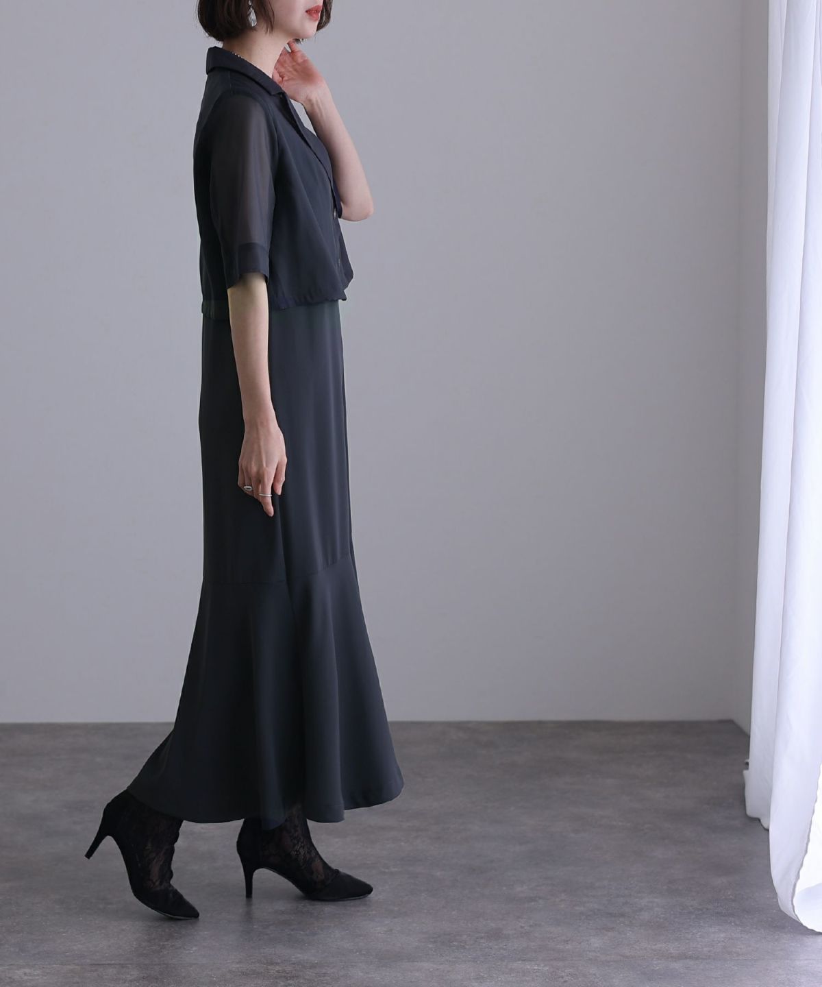 他の画像を見る ソフトマーメイドのワンピースで女性らしい印象に シアージャケットワンピースセットアップ 即日発送 SALE 定価 ¥ 18,899 販売価格 ¥ 7,980 税込 カートに入れる お気に入りに登録する
