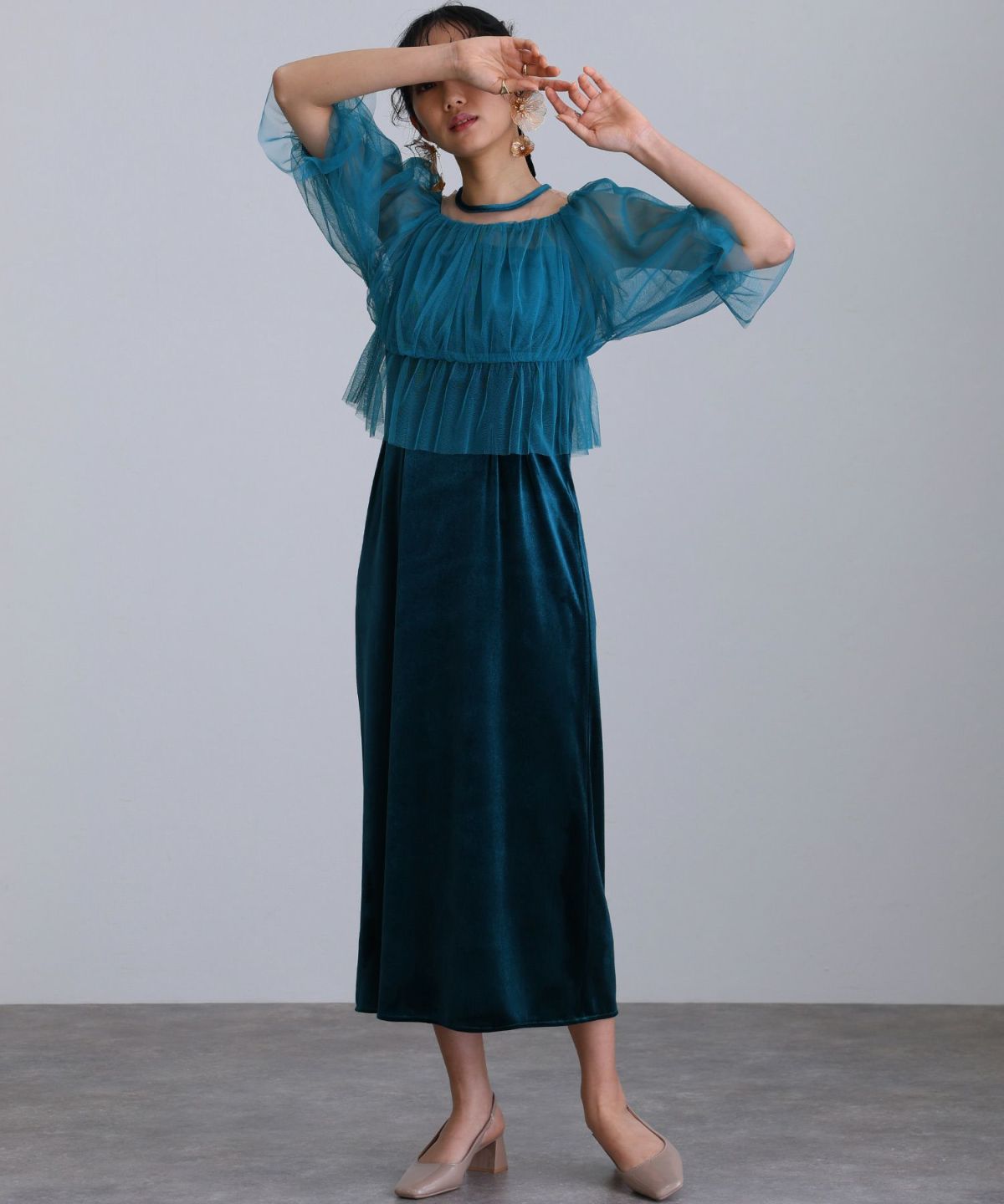 他の画像を見る デコルテから袖にかけての透け感がフェミニンな印象 チュールオフショルダードレス 即日発送 販売価格 ¥ 15,800 税込 会員特別価格 ¥ 13,500 税込 カートに入れる お気に入りに登録する